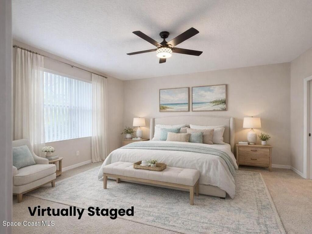 Welcome home to Capron Ridge in Viera. This inviting rental features a first-floor primary suite with ensuite bath and a convenient powder room downstairs, while two spacious bedrooms, a full bath, and flex space are located upstairs. Relax on the screened-in lanai overlooking a nature preserve, offering peaceful sounds of nature and added privacy. Residents enjoy access to outstanding community amenities including a heated pool, fitness center, clubhouse, tennis/pickleball court, basketball and volleyball courts, three playgrounds, scenic walking trails, and tranquil ponds. The entrance gate helps limit through traffic, creating a quiet neighborhood feel, all while being conveniently located near shopping, dining, and major roadways.