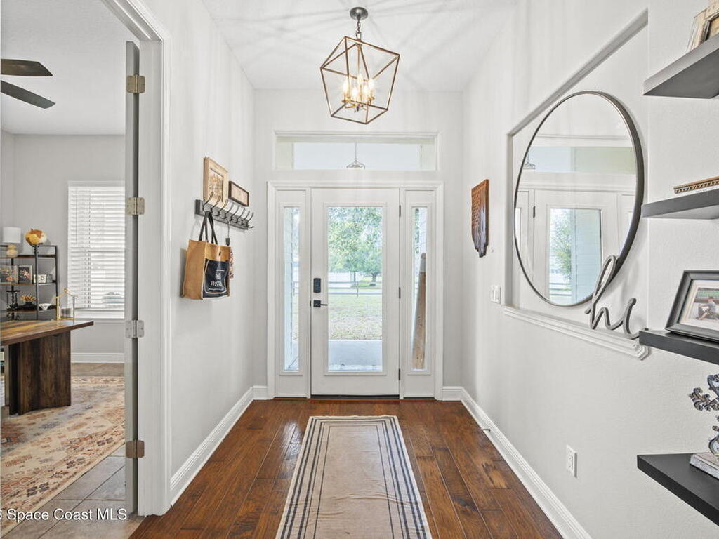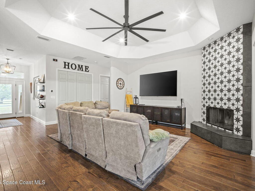 Welcome to 165 E Crisafulli! This spacious 4 bedroom, 2 bath home with a dedicated office, split floor plan, and 2 car garage sits on 1.62 acres just minutes from the Space Center entrance!Inside you'll find quartz countertops throughout, Samsung appliances, and a wood burning fireplace. Major updates include a roof(2022), A/C(2022), and impact windows(2022) for peace of mind!The master is a true retreat with a walk in shower and soaking tub. Outside, enjoy the space and privacy of the large property, complete with a barn in the backyard.You truly have to see this home in person to appreciate its size and beauty!