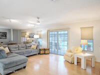 NEW ROOF INSTALLED DECEMBER 2025! Located just a short stroll to beach access, this Floridana Beach home has 3 bedrooms and 3 baths and a great layout with each bedroom having its own bath and privacy. The moment you step inside, a vast great room welcomes you with this open concept layout that blends living, dining and kitchen spaces perfect for gatherings and everyday moments. New A/C in 2021 ensures cool comfort during the warm summer days and nights. Outside the pool was resurfaced and is it is screened in to offer easy upkeep. A generous covered lanai is ideal for lounging and outdoor BBQ. The property is fenced in. Nearby is the community center that has clubhouse with restrooms and basketball court, playground and stairs to the sandy beach where you can walk for miles along the shore.