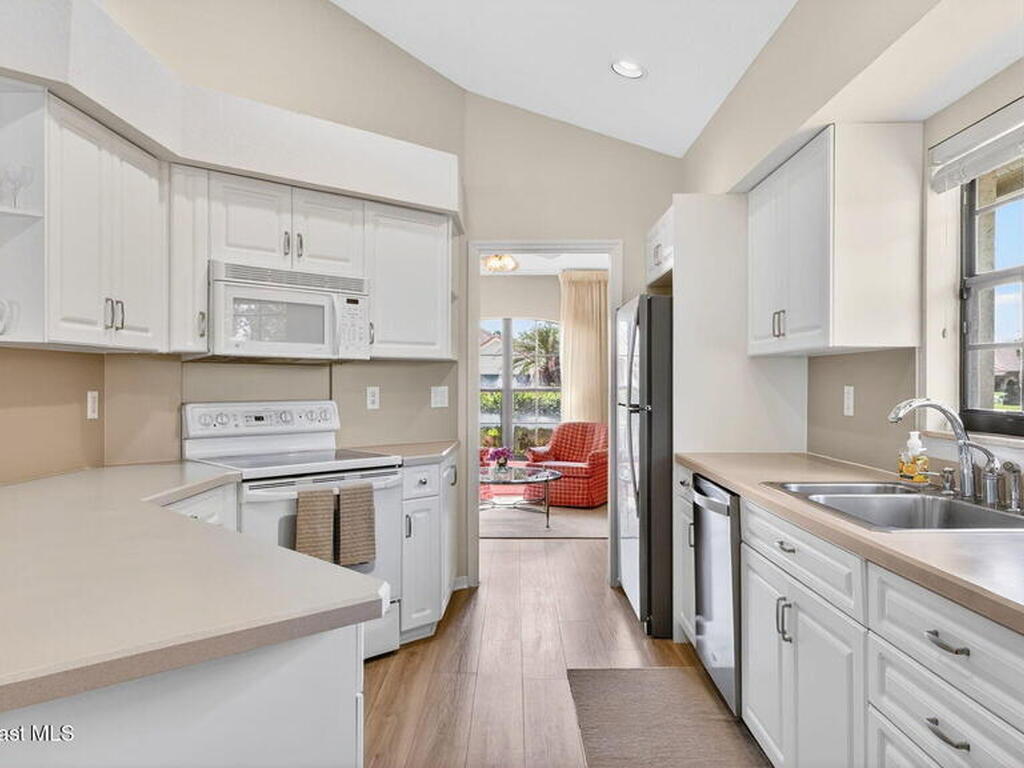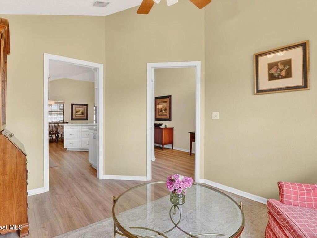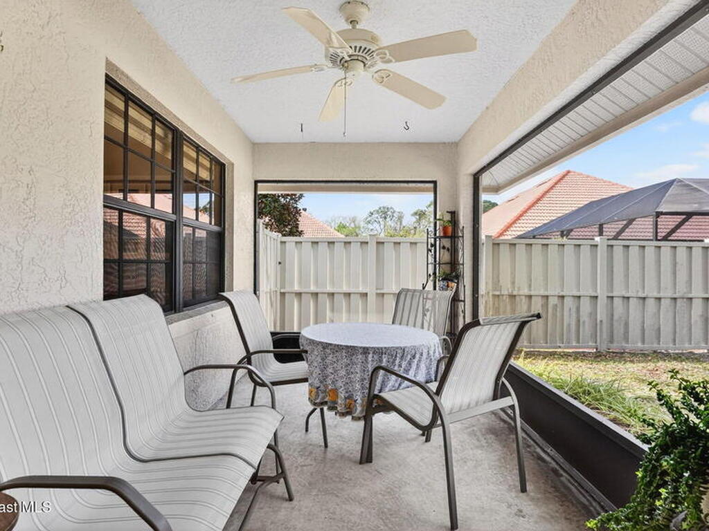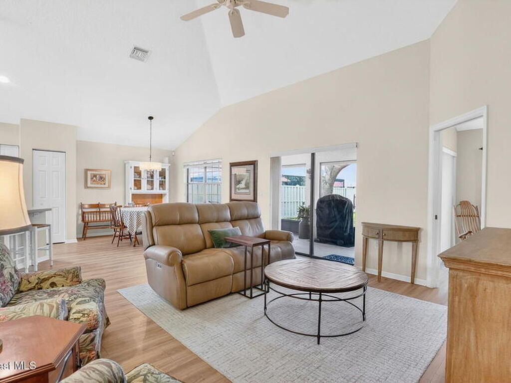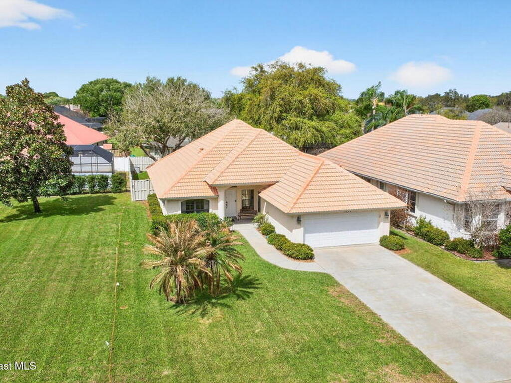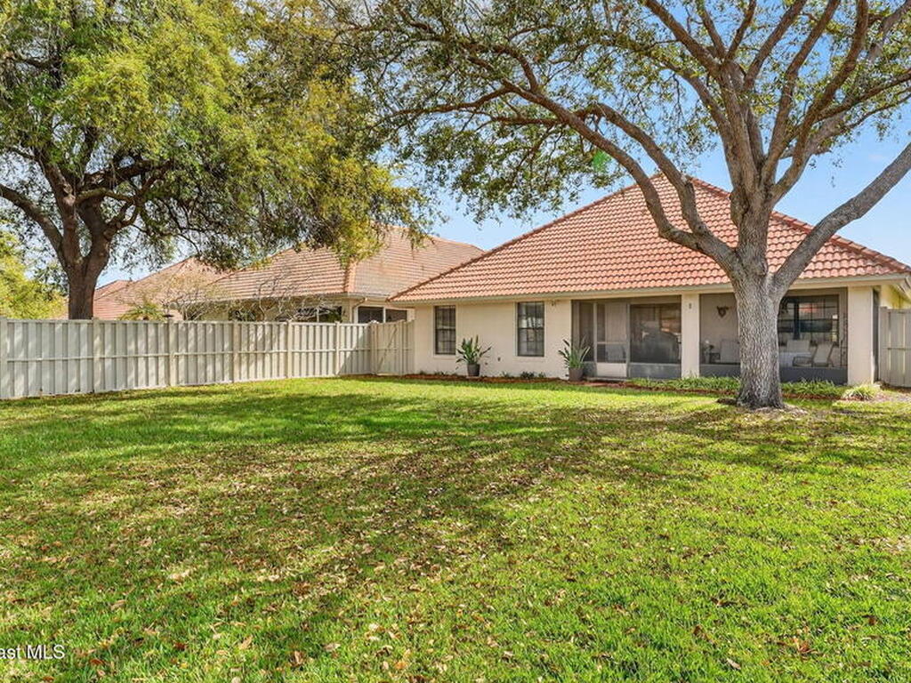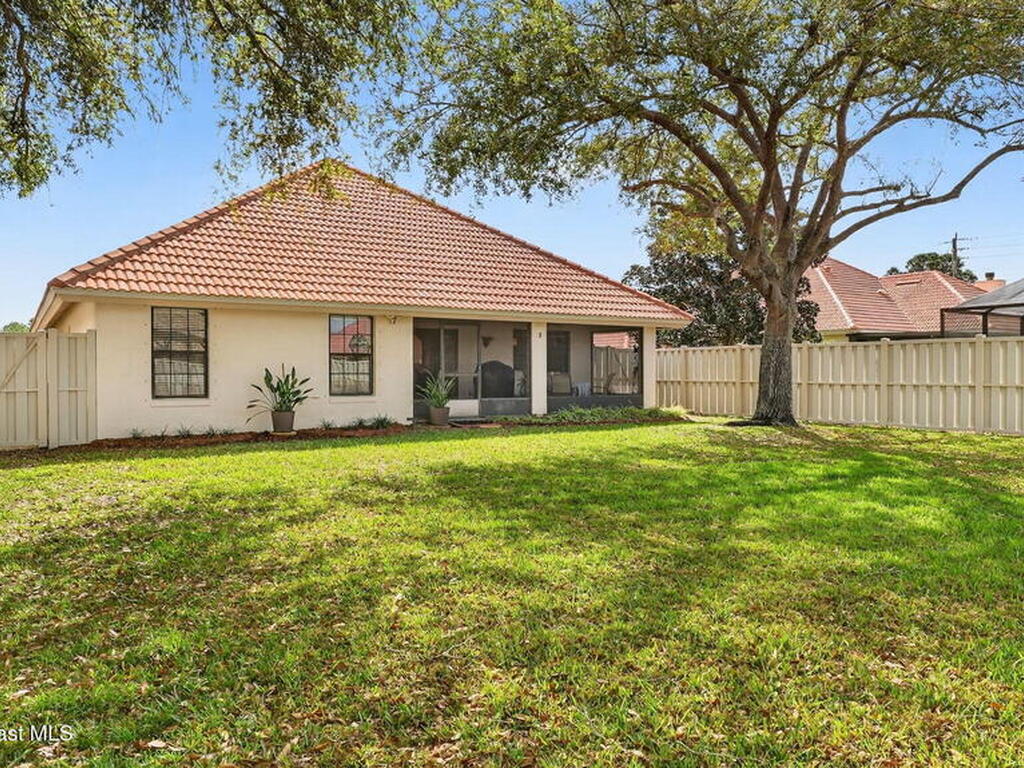 Beautiful 3-Bedroom, 2-Bath + Den Home, Located in a Highly Sought After Community! Excellent Curb Appeal - You Are Welcomed by Lush Landscaping, Immaculate Exterior Care & Maintenance! The Open Layout of the Dining, Kitchen & Living Areas Are Showcased by the Vaulted Ceilings & Natural Light. The Kitchen Features an Insta-Hot Water Tank, New Stainless Steel Refrigerator & Is Plumbed for a Gas Range! The Master Suite Features Garden Tub, Tiled Shower, Walk-In Closet & Sliders to the Back Porch. The Split Plan Has Two More Spacious Bedrooms & Bath. Enjoy Florida's Weather from the Screened Porch While Appreciating the Privacy of the Fully Fenced Backyard. New Gas Water Heater, Neutral Laminate Flooring & Irrigation! This Community is Close to Shopping & Just Minutes from KSC, Beaches & Orlando!