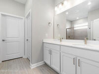 No HOA, No CDD. Included as standard upgrades; Energy Star SS Appliances, top of line AC 15-16-Seer, Luxury tile plank flooring, Quartz countertops, LED lighting, 42'' soft-close cabinets, open floor plan with 9'4 ceilings with tray ceiling in the master, Electric Water Heater, Covered Lanai, Irrigation System, water softener owned, Rain Gutters over septic area, Hurricane Shutters, Low-E double pane energy-efficient windows. Photos are from a previously built model.