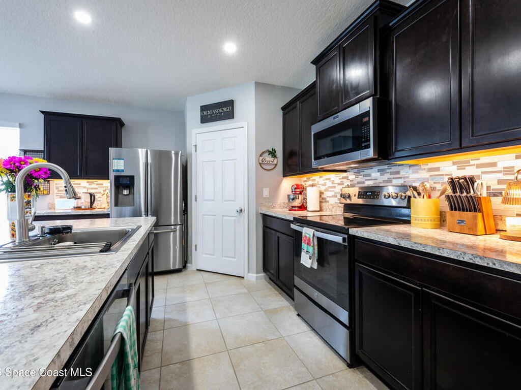 BEAUTIFUL 4 bedroom 2 bathroom home with an open floor plan and many upgrades including laminate flooring, kitchen backsplash, and recessed lighting throughout. The living room features a custom shiplap accent wall with an electric fireplace and built in cabinets. Step outside the back door to enjoy a large fenced backyard with a relaxing fire pit area. The home backs up to a conservation area, so nothing will ever be built behind it. Located on a quiet cul-de-sac street with low traffic volume. ALL of this while being less than 2 minutes from I95 access for all of your traveling needs. Schedule your showing today!