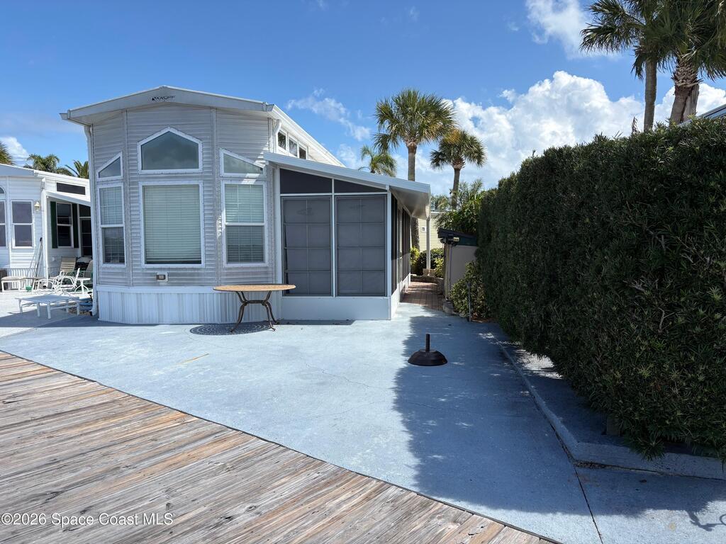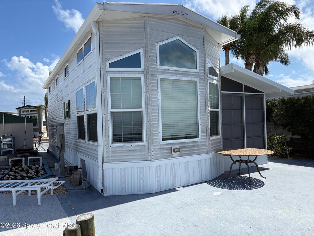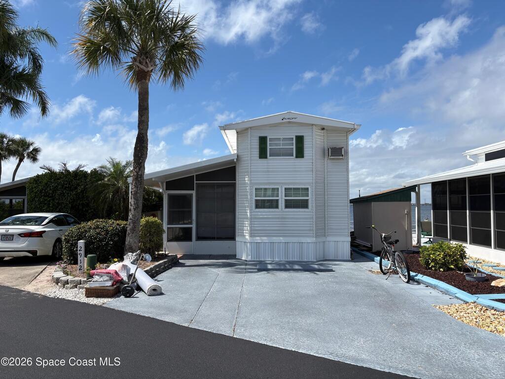 DIRECT RIVERFRONT PROPERTY FOR SALE in the sought after Outdoor Resorts! Stunning 2014 custom built Kropf Park model with attached screen room overlooking the Indian River! Magnificent views from the living room, kitchen and screen room windows. Kropf is synonymous with quality built housing and includes double lofts for a 2nd or 3rd bedroom/office. Meticulously kept, gently lived in, light and open with high windows offering panoramic River views from the second floor! Gorgeous laminate wood flooring, full size appliances, spacious master bedroom & bathroom with TUB, stacked washer/dryer in closet, comes completely furnished! Huge deck on River creates an oasis for fishing, kayaking, sunbathing & entertaining! Watch the birds, manatees and Dolfins right from your backyard. This location is just Steps to the River pool, tennis & shuffle board courts! Outdoor Resorts is an Ocean to Riverfront community unlike any other. The quaint streets are lined with thousands of Palm trees and are