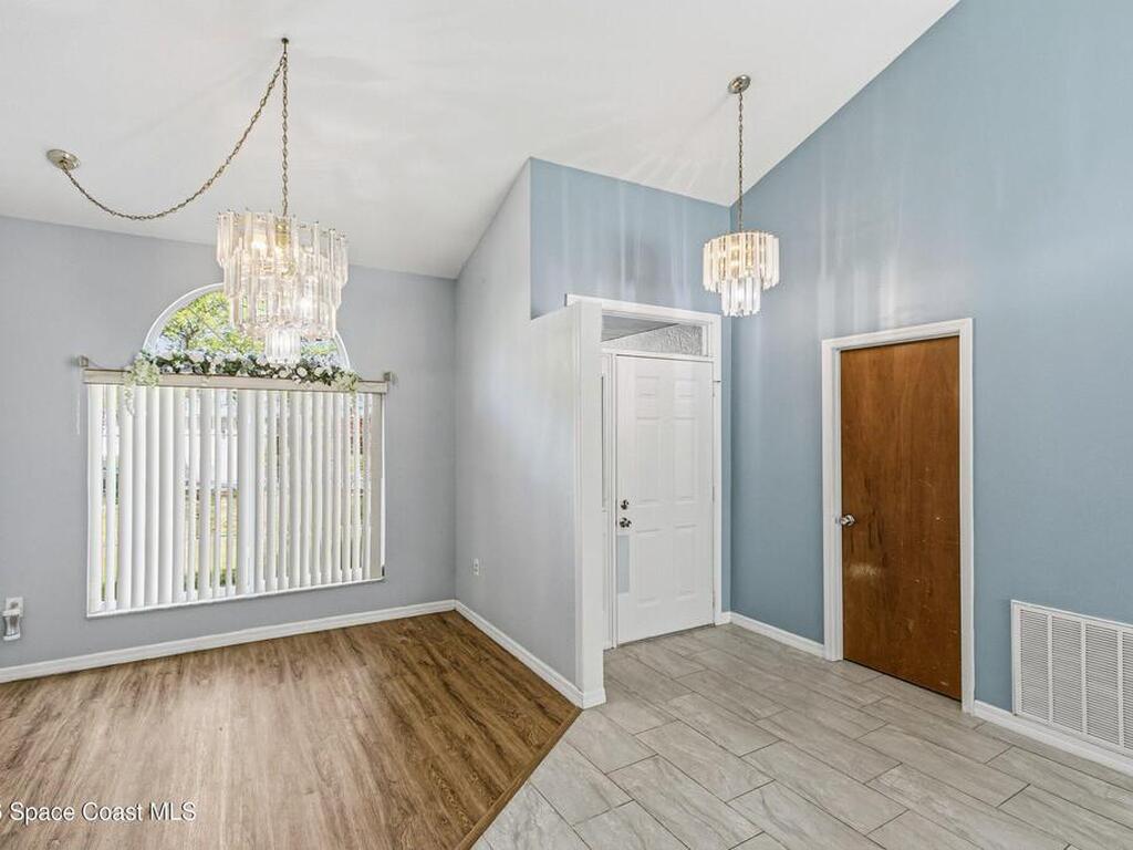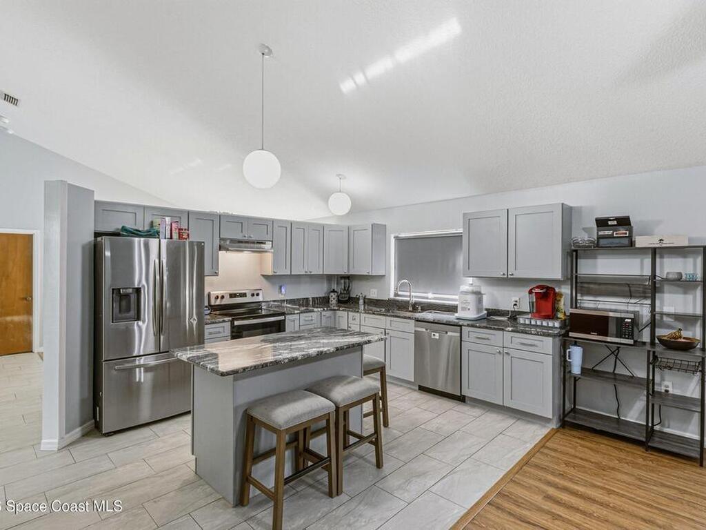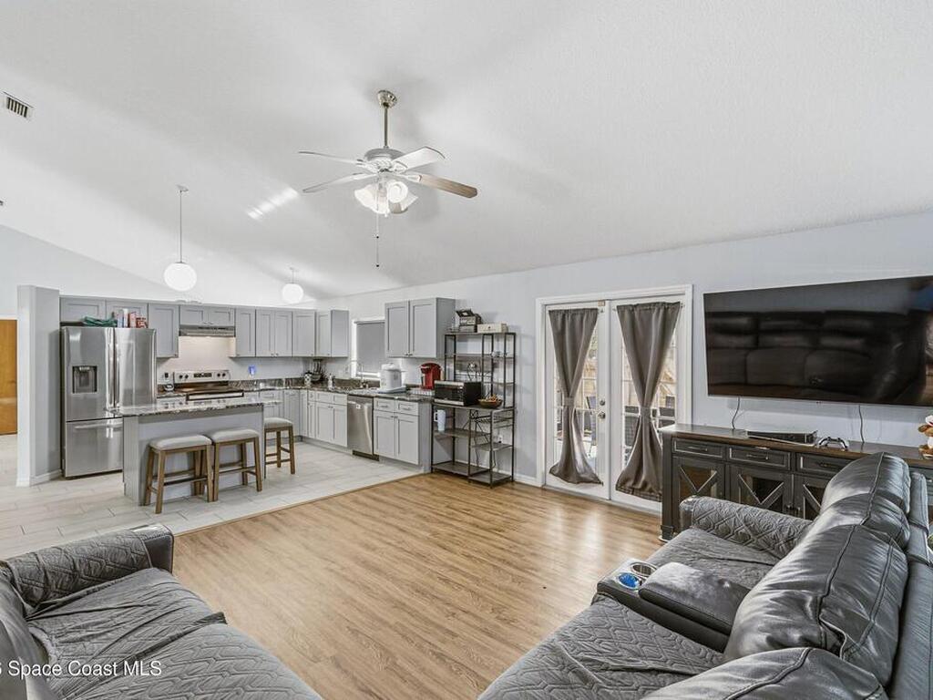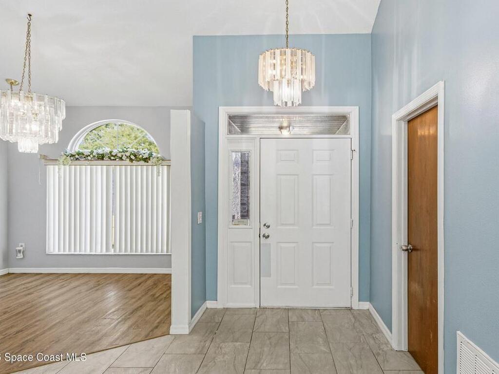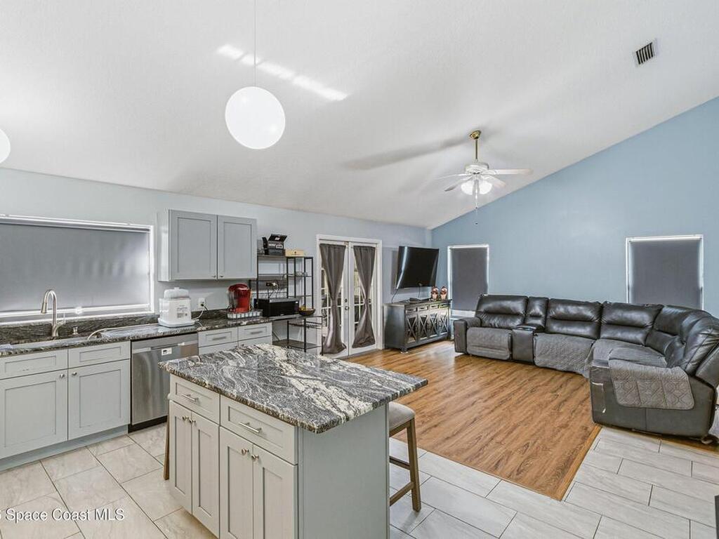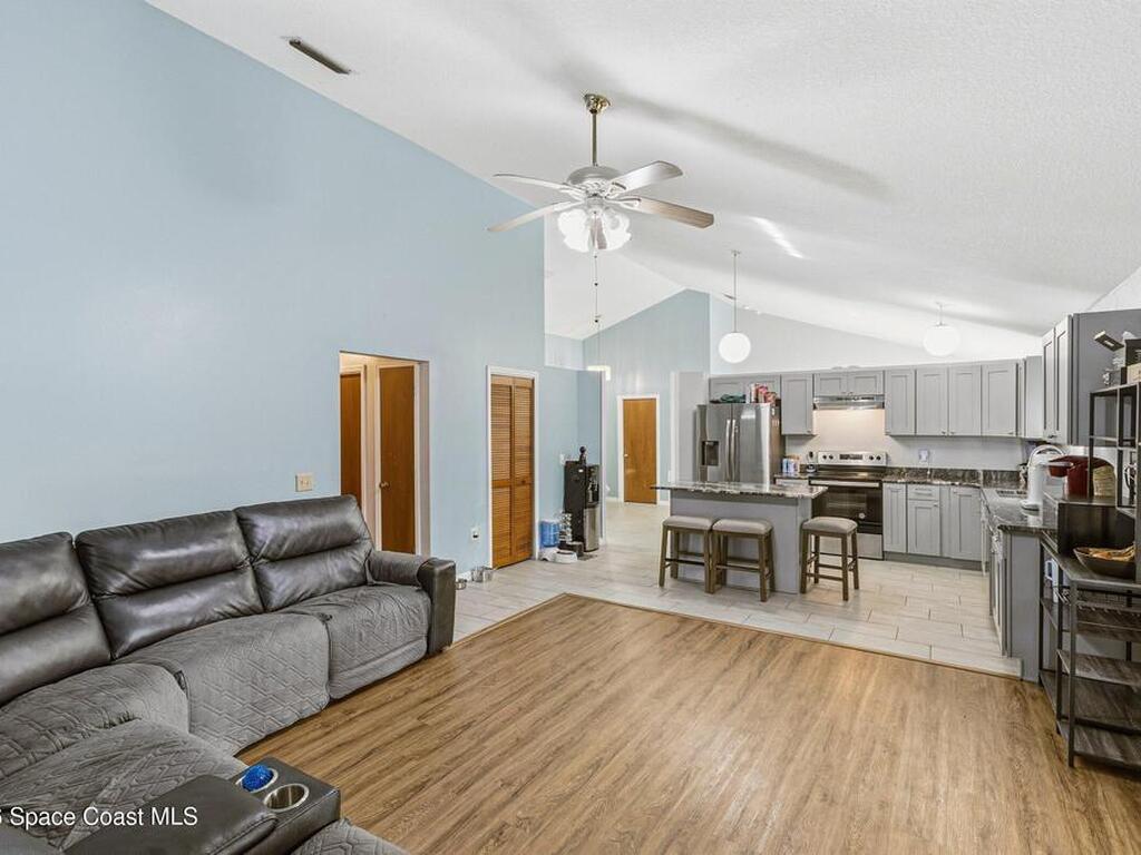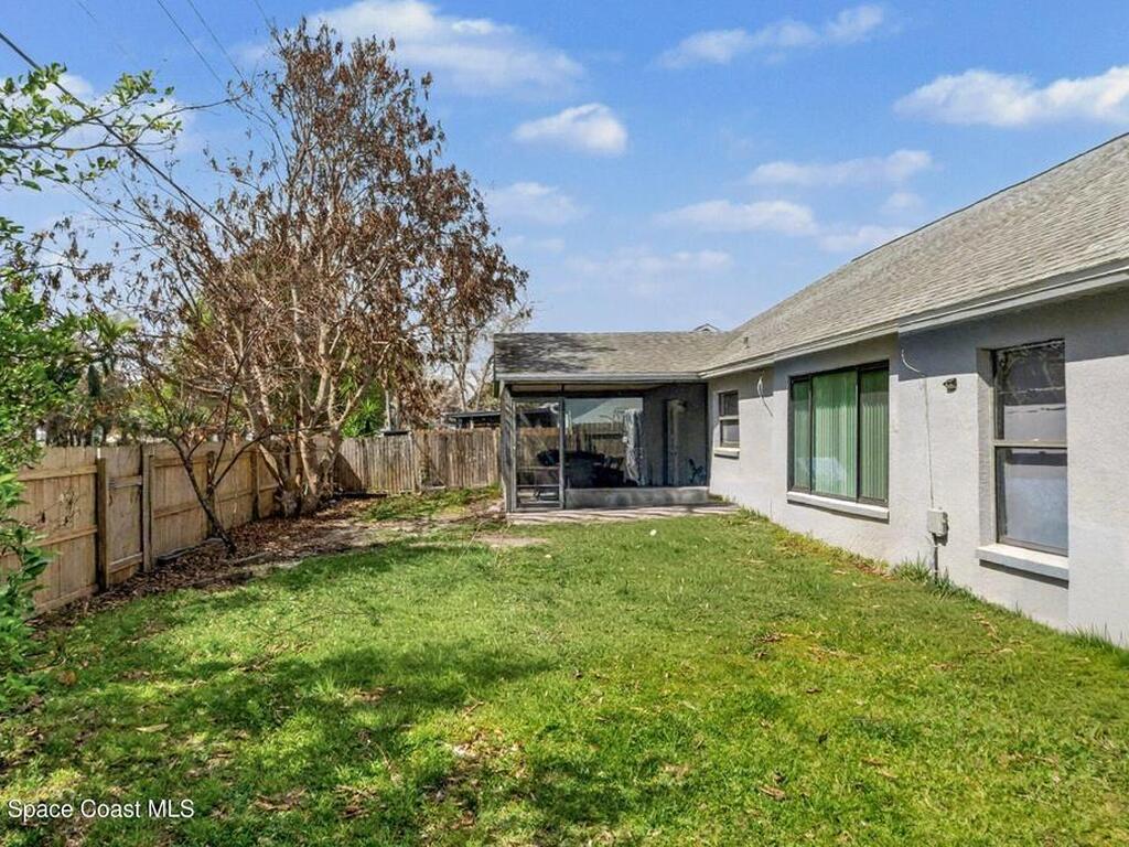 Welcome to this beautifully updated 1, 700 sq. ft. home with an open floor plan and generous living spaces. Conveniently located just 15 minutes from historic Cocoa Village, 20 minutes from the beaches, and 45 minutes from Orlando's International Drive. This home has been thoughtfully improved with a 2019 roof, 2023 A/C, and 2024 water heater. The kitchen was fully updated in 2024 with new cabinets, appliances, and a stylish center island. New flooring enhances the foyer, kitchen, bathroom, and living room, while newer window treatments add a polished touch to the kitchen and living area. The guest bath was upgraded in 2024 with new cabinetry and countertops. The primary bath includes updated plumbing, an updated shower, a new bidet, double sinks, and a relaxing garden tub. Additional features include a new water softener system, new back porch screening, and a doorbell camera. Step outside to a backyard filled with fruit trees and plants, including loquat, mango, mandarin, lemon,