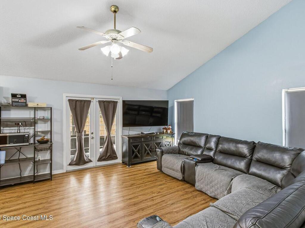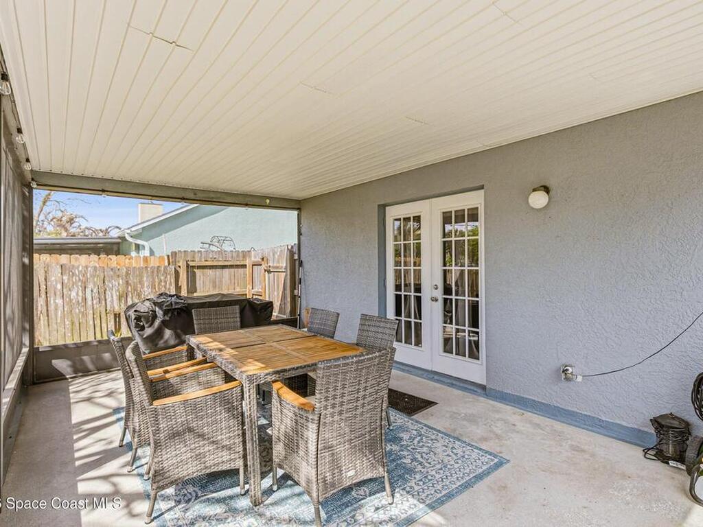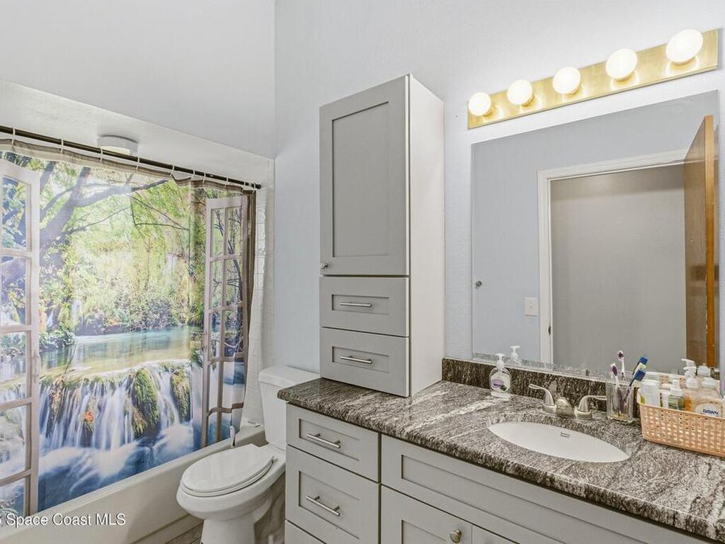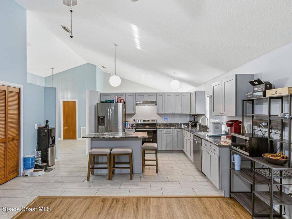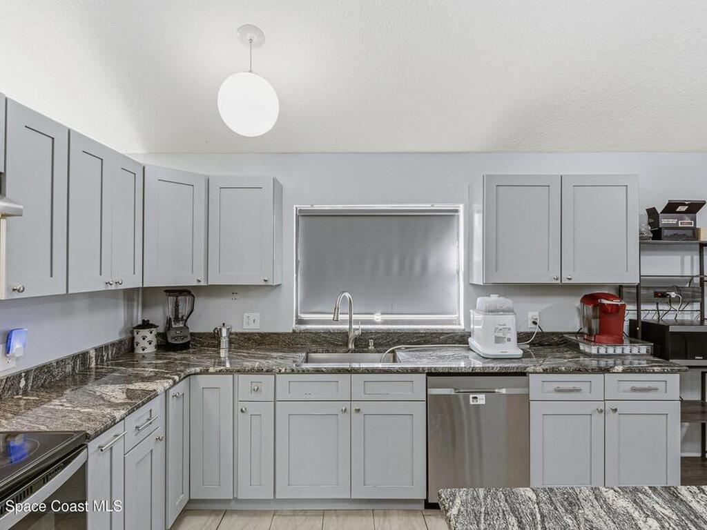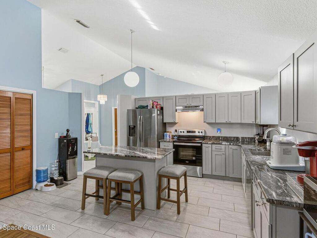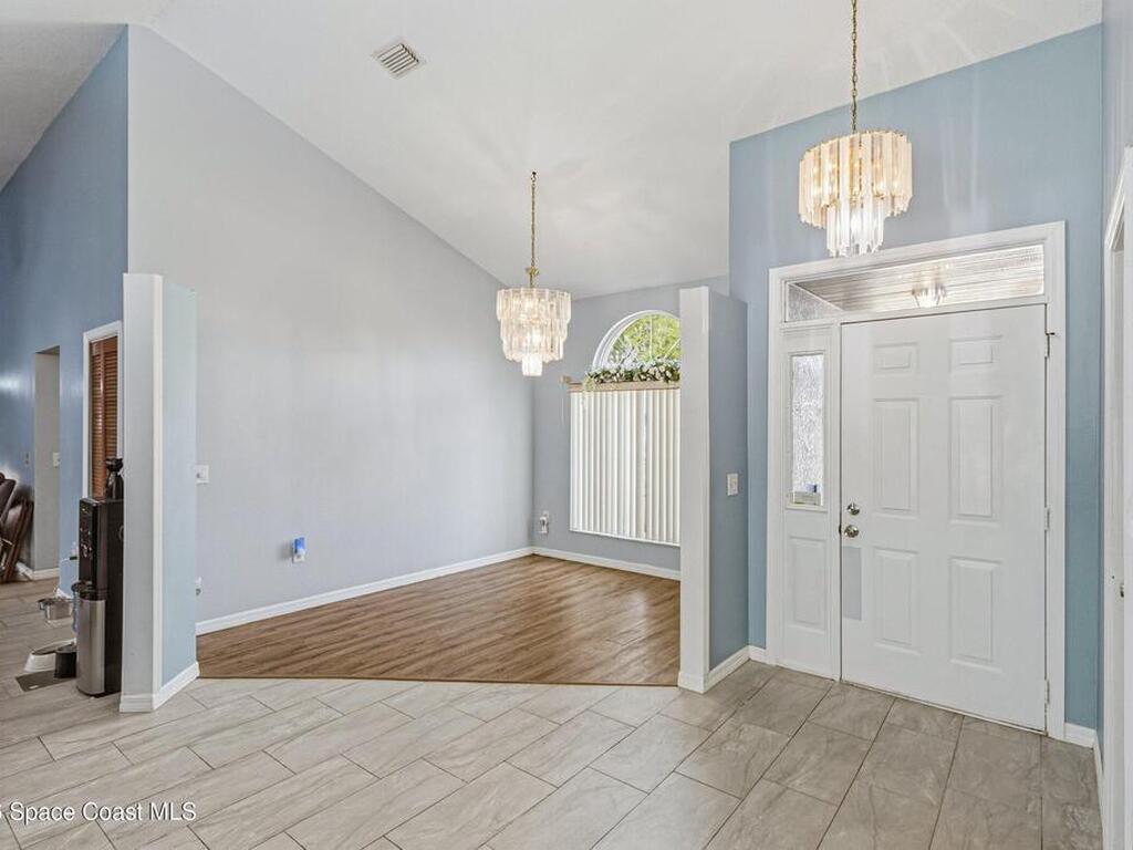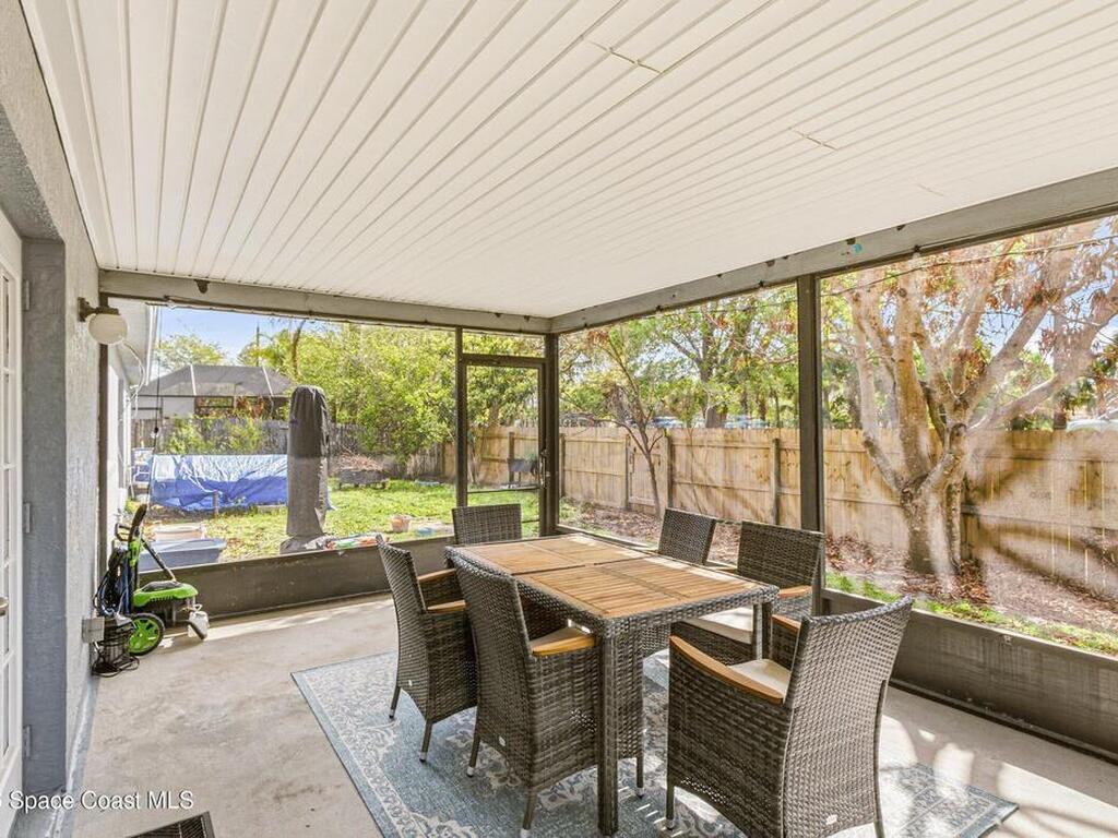Welcome to this beautifully updated 1, 700 sq. ft. home with an open floor plan and generous living spaces. Conveniently located just 15 minutes from historic Cocoa Village, 20 minutes from the beaches, and 45 minutes from Orlando's International Drive. This home has been thoughtfully improved with a 2019 roof, 2023 A/C, and 2024 water heater. The kitchen was fully updated in 2024 with new cabinets, appliances, and a stylish center island. New flooring enhances the foyer, kitchen, bathroom, and living room, while newer window treatments add a polished touch to the kitchen and living area. The guest bath was upgraded in 2024 with new cabinetry and countertops. The primary bath includes updated plumbing, an updated shower, a new bidet, double sinks, and a relaxing garden tub. Additional features include a new water softener system, new back porch screening, and a doorbell camera. Step outside to a backyard filled with fruit trees and plants, including loquat, mango, mandarin, lemon,