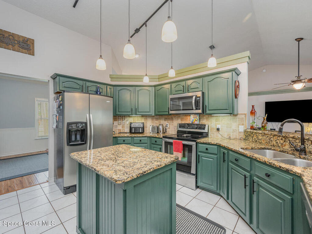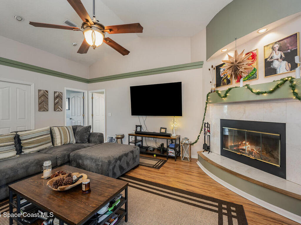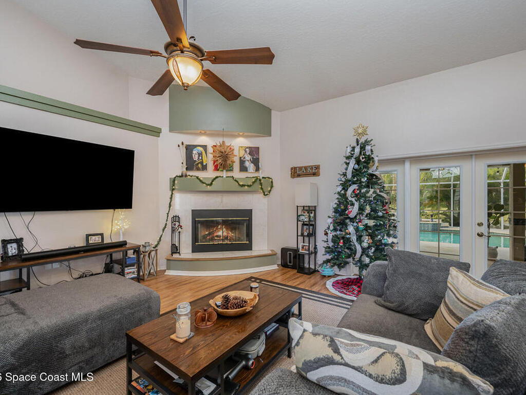 Welcome to easy Florida living in a beautiful golf course community! This Spacious 4/bedroom, 2.5/bath home with a dedicated office offers plenty of room for both the relaxing and working from home. The open layout provides comfortable living spaces, while the additional office is perfect for remote work, studying, or a quiet retreat. Step outside and enjoy your private screened-in pool overlooking the golf course, creating the perfect setting for your morning coffee, weekend BBQ, or unwinding after a long day. The backyard offers peaceful views and plenty of space to enjoy the Florida lifestyle year-round. Conveniently located near the Space Coast's growing aerospace industry, you'll be just minutes from NASA, SPACEX and Blue Origin. The beach is about 15 minutes away and Orlando airport about a 45-minute drive. This home offers the perfect combination of space, location, and the relaxed Florida lifestyle.