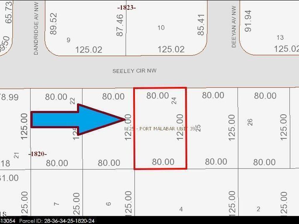 The 0.23 acre buildable single family residential lot [Rs2 Zoning] is available in Port Malabar Unit #39 of Palm Bay. Located in the highly desirable northwest section, this lot is just 2.0 miles - 5 minutes to Heritage High School, 4.8 miles -11 minutes- to the Walmart Center and the i-95 ramp, 14.6 miles - 25 minutes to Melbourne International Airport, and 17. miles - 34 minutes to the beaches of Indialantic. From exit #176 of I-95 go west on Palm Bay Road NE for .7 miles, left on Minton Road for 2.5 miles, right on Malabar Road for 2.7 miles, right on Krassner Drive for .5 miles, and right on Seeley Circle. The lot will be on your left.