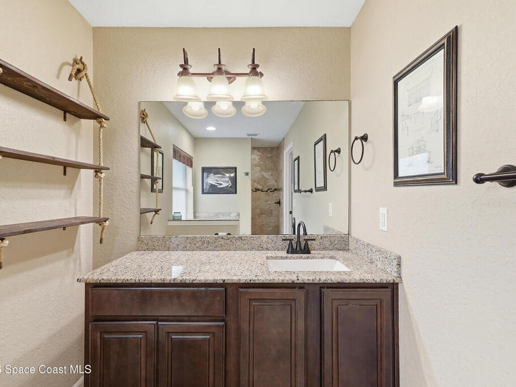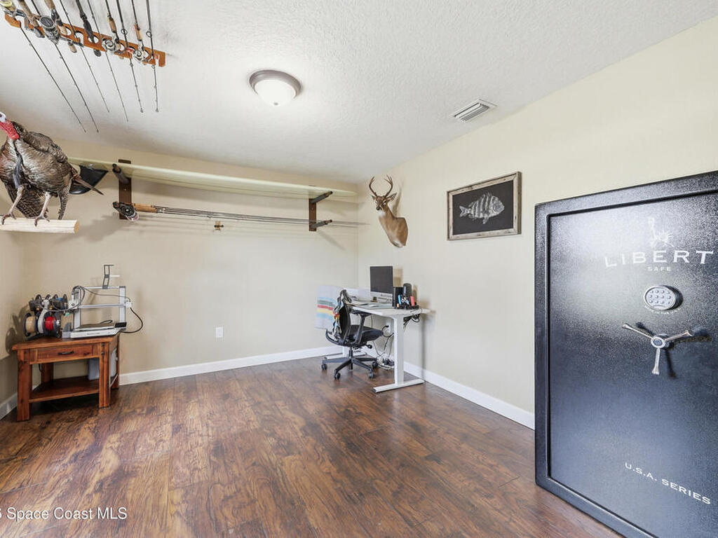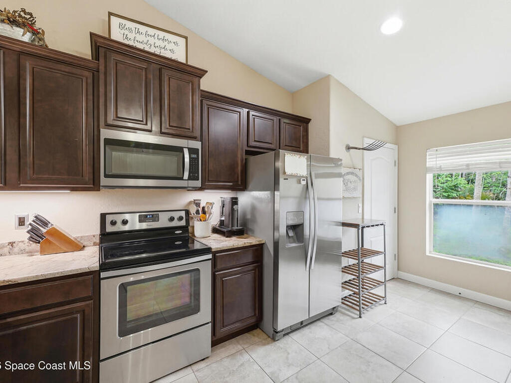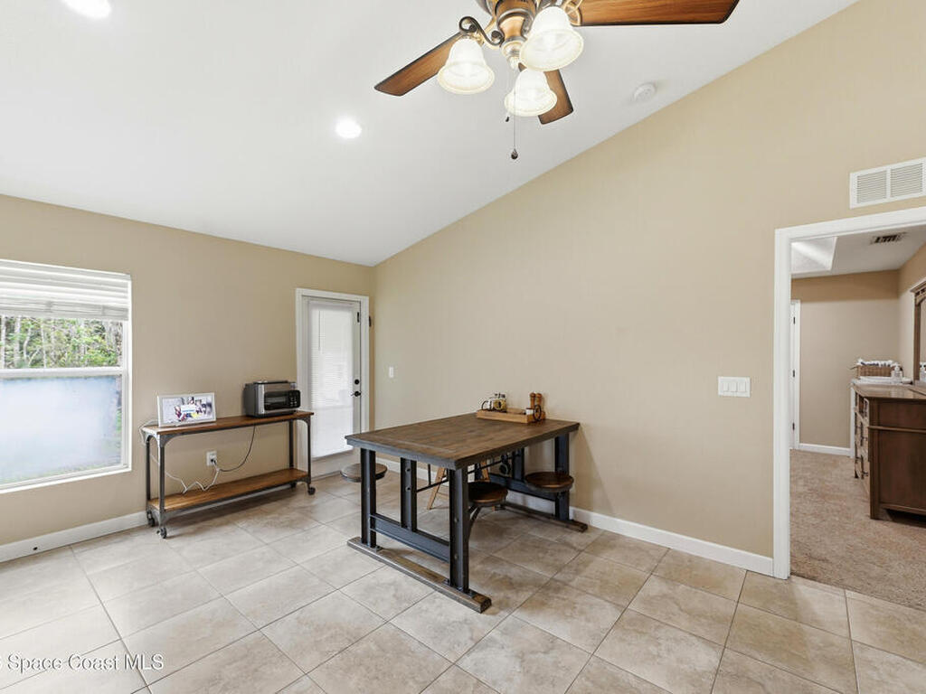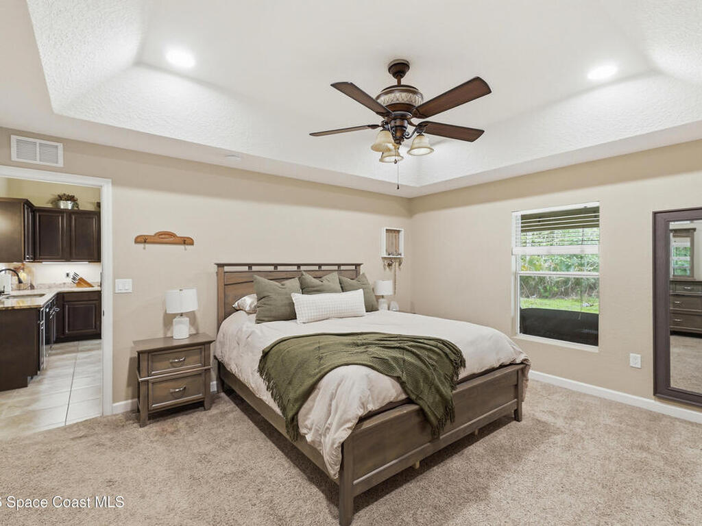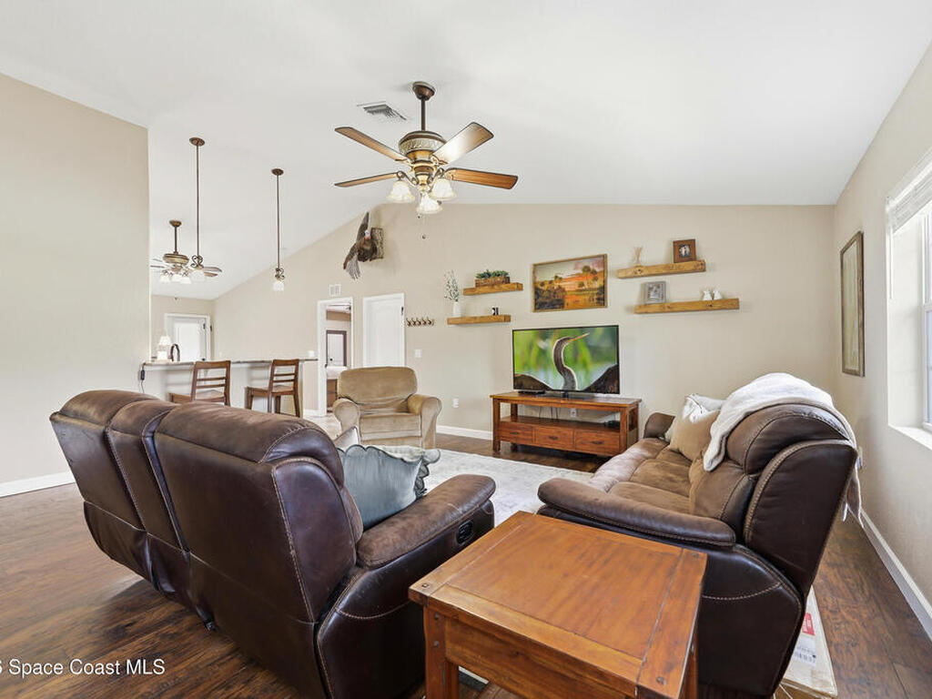 Private, peaceful, and packed with extras! This custom concrete block home offers an open and airy split floor plan with high ceilings, granite countertops, stainless steel appliances, rich wood cabinetry, and a spacious breakfast bar that opens to the main living area. The oversized primary suite is a true retreat with tray ceilings, a walk-in closet, a soaking tub, and a separate tiled shower. A flexible bonus room adds space for a home office, hobby room, or additional guest use. Step outside to enjoy the large screened porch, detached shed, covered outdoor entertaining/work area, and a massive metal carport with room for your boat, RV, or toys. Nestled among mature trees with plenty of privacy, this property delivers the space and lifestyle buyers are looking for. Easy access to Space X, Blue Origin, NASA, ULA, Waterways, Beaches, Shopping, Coast2Coast Bike Trail and less than 1 hour from the Orlando theme parks.