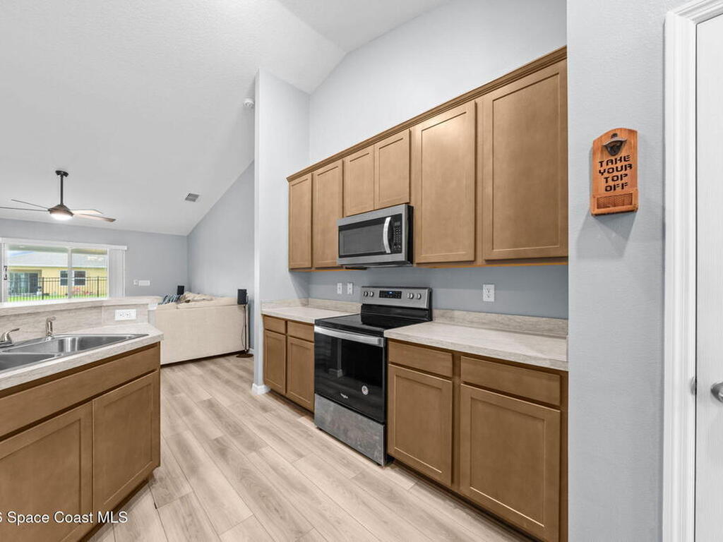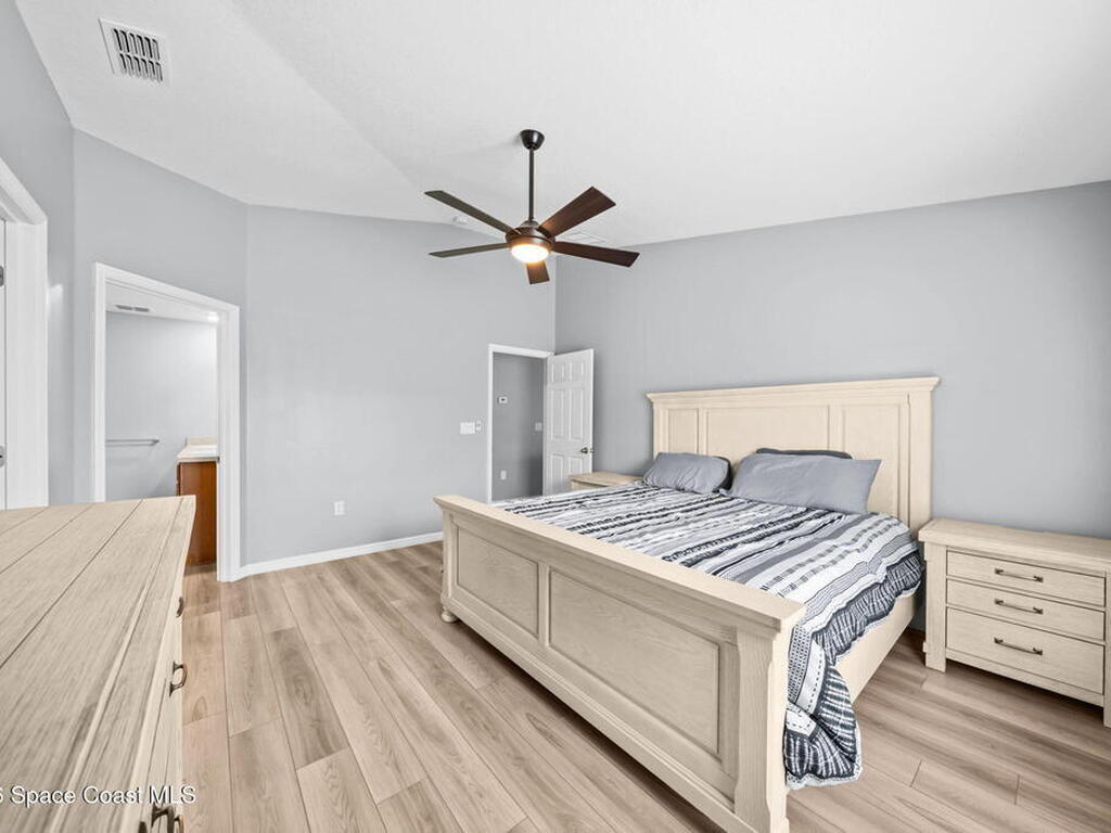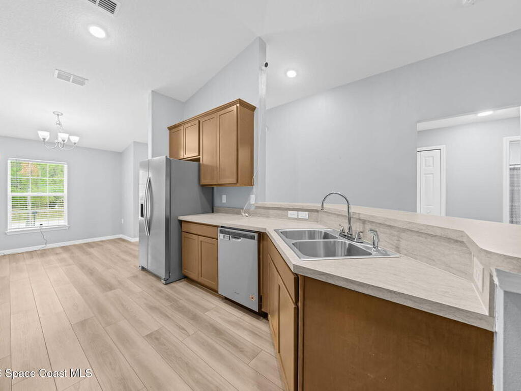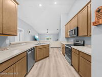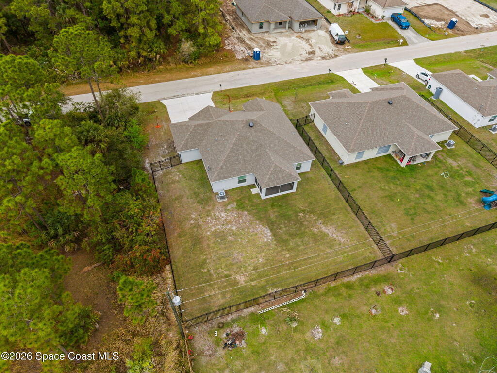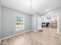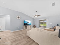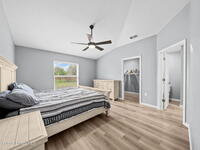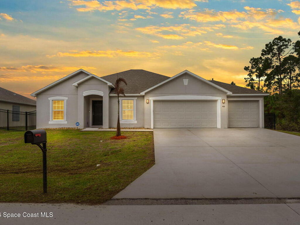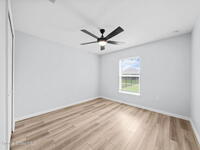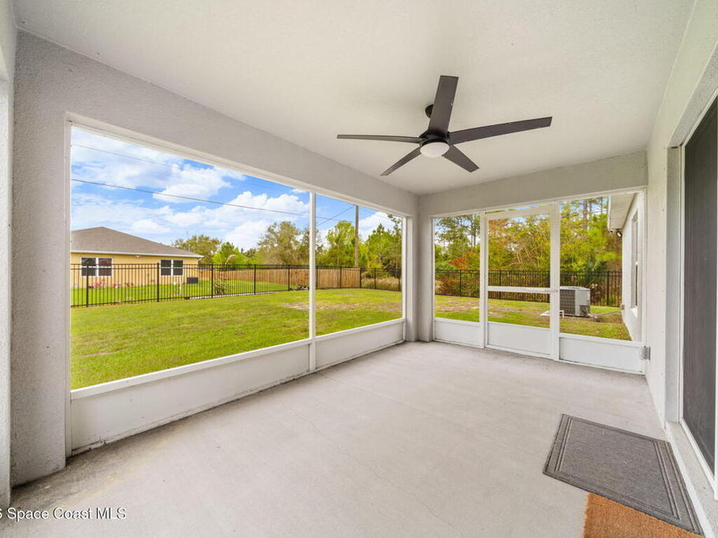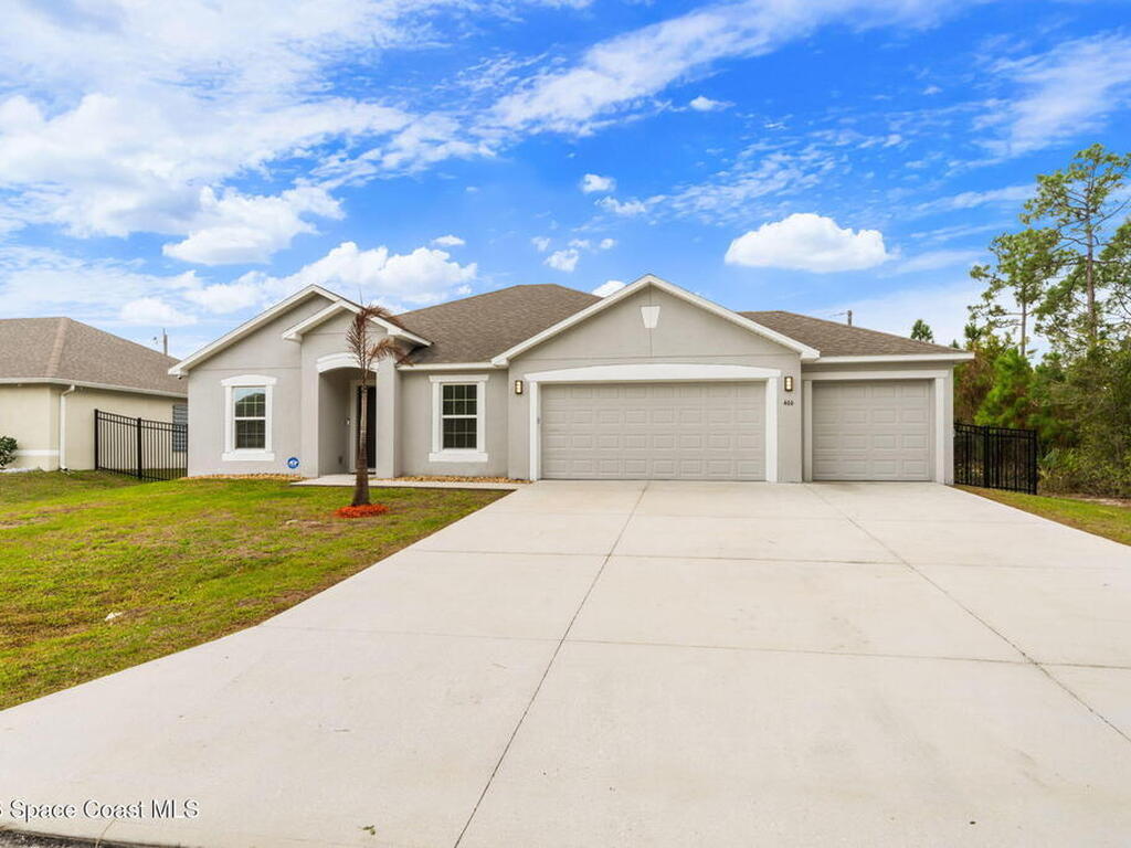 DON'T WAIT FOR NEW CONSTRUCTION! 2021 built, 3/2 WITH FLEX ROOM AND 3 CAR GARAGE features a desirable open-concept, split-bedroom floor plan designed for comfort and privacy. Walking in to the left, you have a office space/extra bedroom. Two spacious guest rooms that can comfortably fit queen size beds with full bed sets. The Family Room offers plenty of room for guests and flows seamlessly into the kitchen, which includes a breakfast bar, ample counter space, 42-inch cabinets, and Whirlpool appliances. The Owner's Suite features a large walk-in closet, tiled shower, dual sinks with generous counter space. Enjoy your spacious lanai in the back which is fully screened. The backyard is enclosed with a sleek black fence, providing added privacy and space for pets or outdoor enjoyment. Again not to mention 3 CAR GARAGE to fit all your toys, storage and equipment. Don't miss out on this opportunity today.