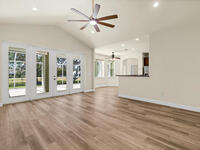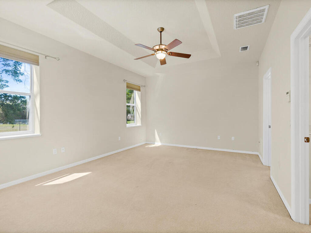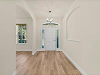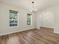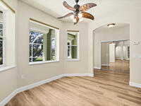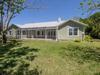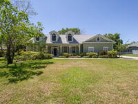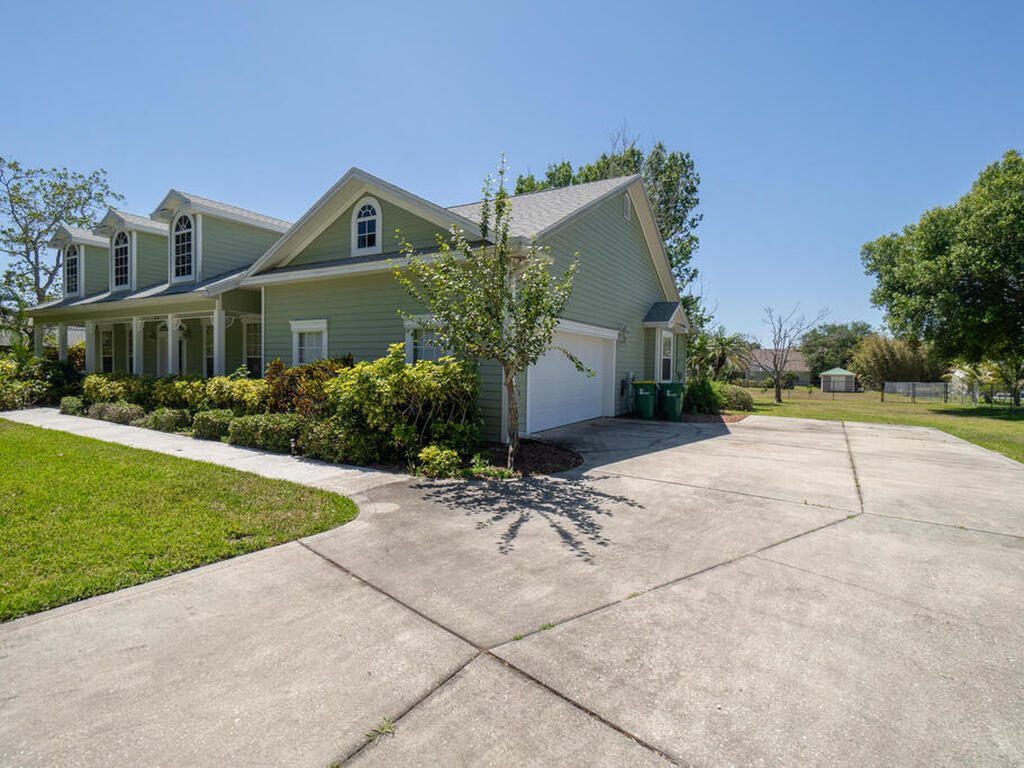 Executive home has been painted, new luxury vinyl plank in living area, updated lightning, large 1/2 acre lot, no HOA, inviting front porch, screen porch on back of home, two car side entry garage with extra storage, parking for RV or boat, split floor plan, laundry room has built in cabinets, formal dining room, fireplace, attic storage space, hurricane shutters, hardboard siding, 15 foot easement on north perimeter must remain unobstructed, owner will consider one pet (mas 45 lbs.)