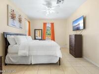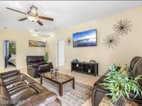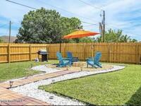Welcome to this private, spacious 4-bedroom, 2-bath home, nestled in a quiet neighborhood yet close to everything you'll need to make this home. The fully fenced backyard features ample outdoor space, including a fire pit with seating and a grill for outdoor dining. Inside, the home is beautifully decorated and designed for relaxation, offering a cozy living room with a 65-inch ROKU TV and a variety of games. There are two dining areas--one with seating for six and another with four seats near the kitchen. The master bedroom includes a king-size bed, two walk-in closets, a private bathroom, and a 55-inch TV, while two other bedrooms offer queen-size beds, walk-in closets, and ROKU TVs. The fourth bedroom has a full-size bed and a walk-in closet. Located just minutes from grocery stores, restaurants, beaches, and shopping. Long Term rentals welcome.