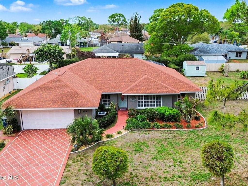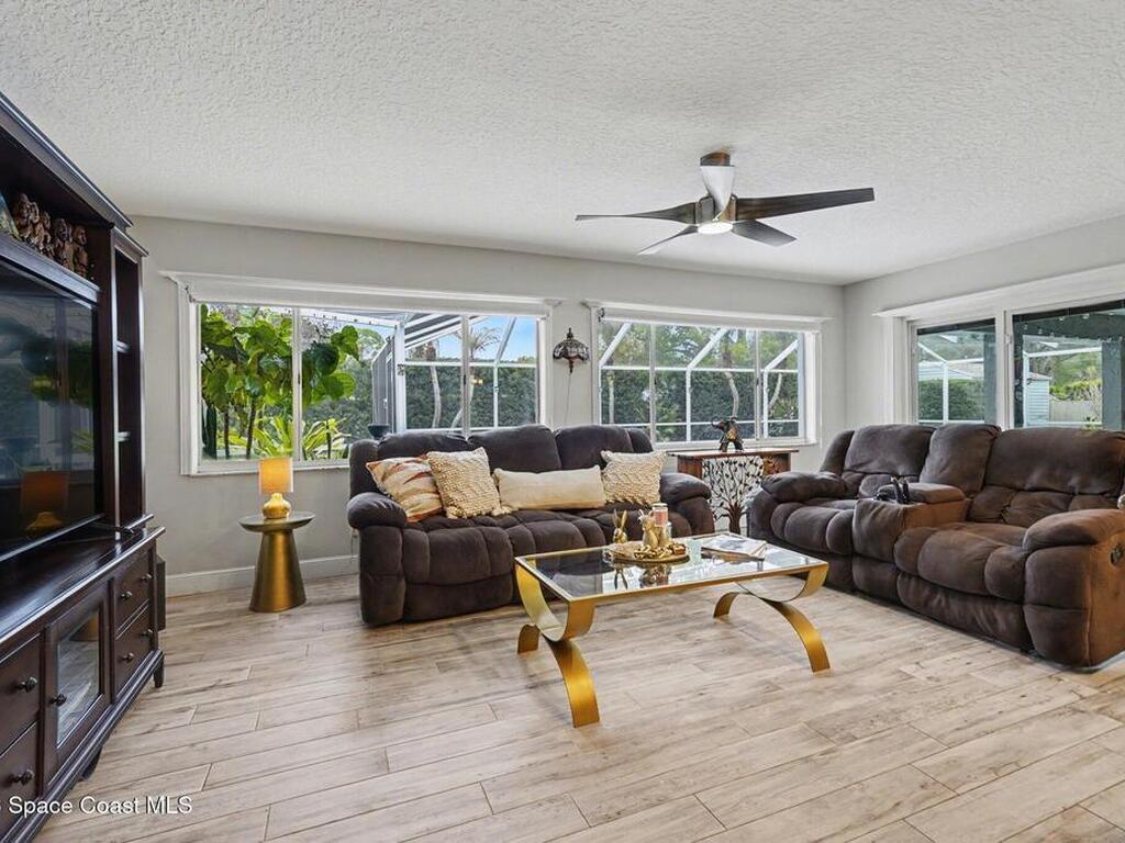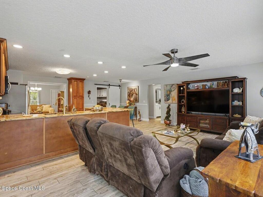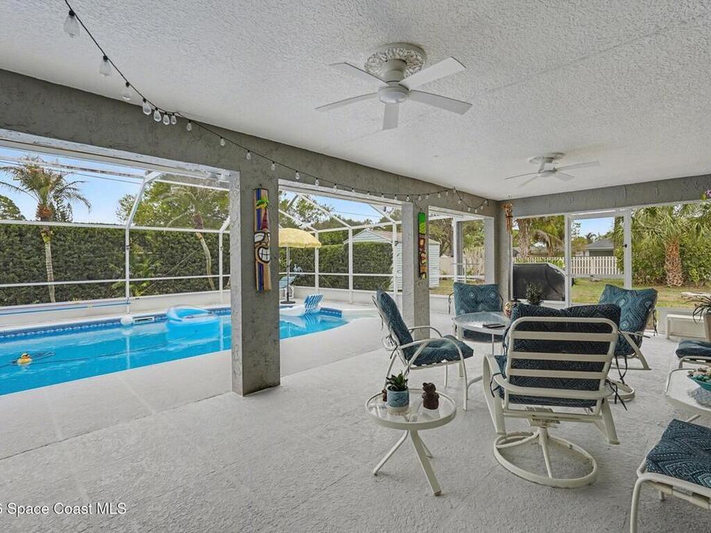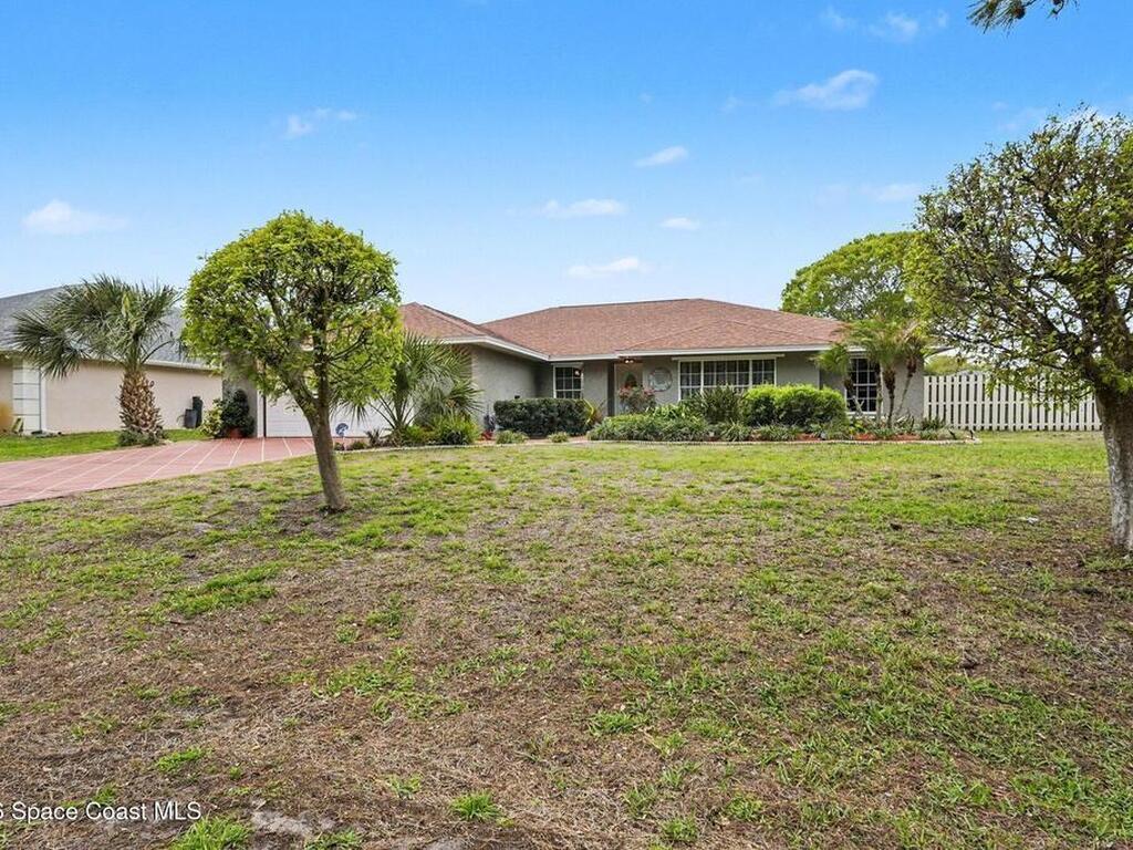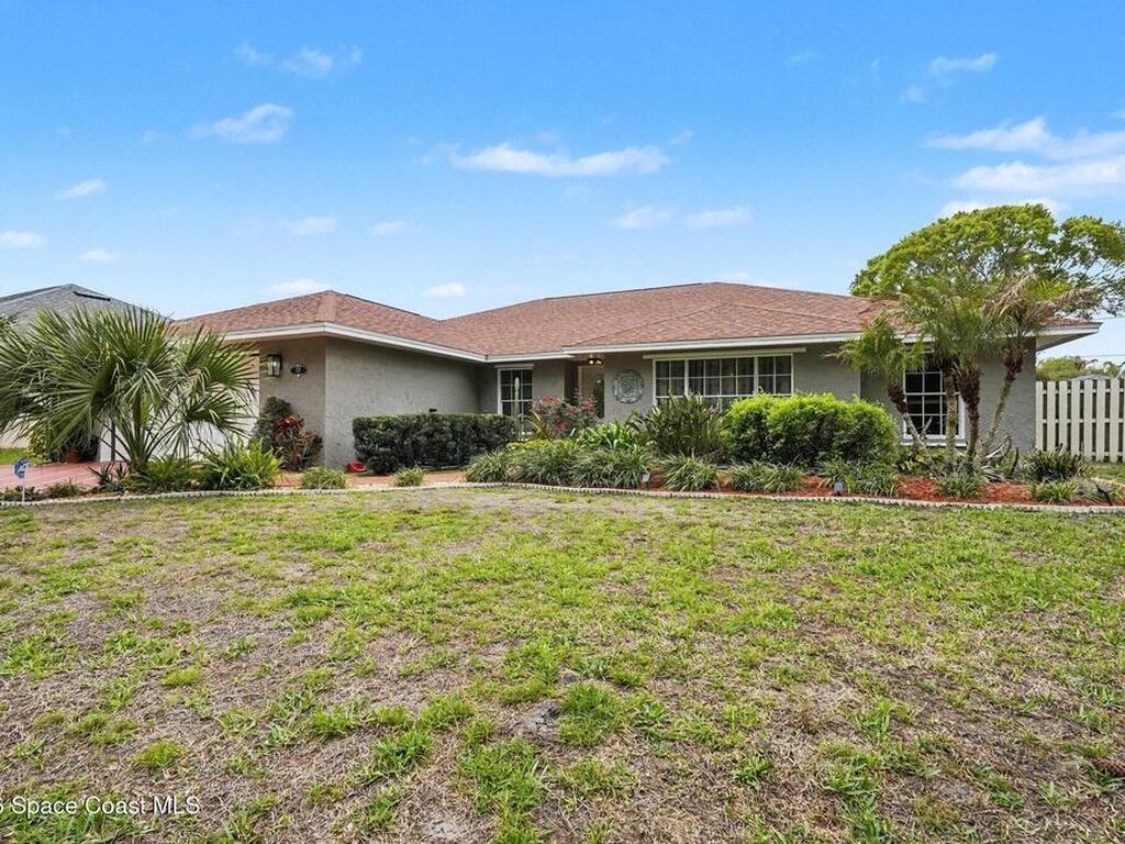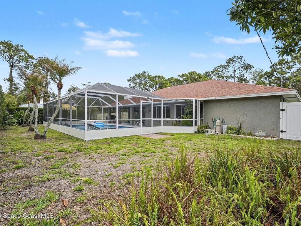 Welcome to this spacious and versatile pool home in the heart of Palm Bay, offering the perfect blend of indoor comfort and outdoor living. Situated on an oversized nearly half-acre lot, this property provides both privacy and room to spread out--an increasingly rare find. Step inside to discover over 2, 100 square feet of living space, featuring a flexible layout designed for both everyday living and entertaining. Multiple living areas--including a formal living room, dining space, and bonus/flex room--offer endless possibilities for a home office, media room, or additional gathering space. The kitchen serves as the heart of the home with ample cabinetry, a convenient breakfast bar, and an eat-in dining area that flows seamlessly into the main living spaces. Tile and laminate flooring throughout add durability and easy maintenance, while natural light enhances the home's warm and inviting feel.The split-bedroom floor plan provides privacy, with a generously sized primary suite
