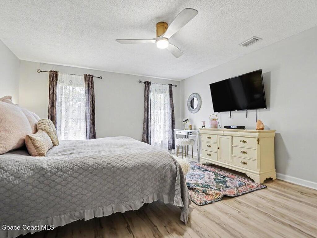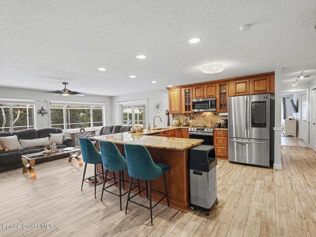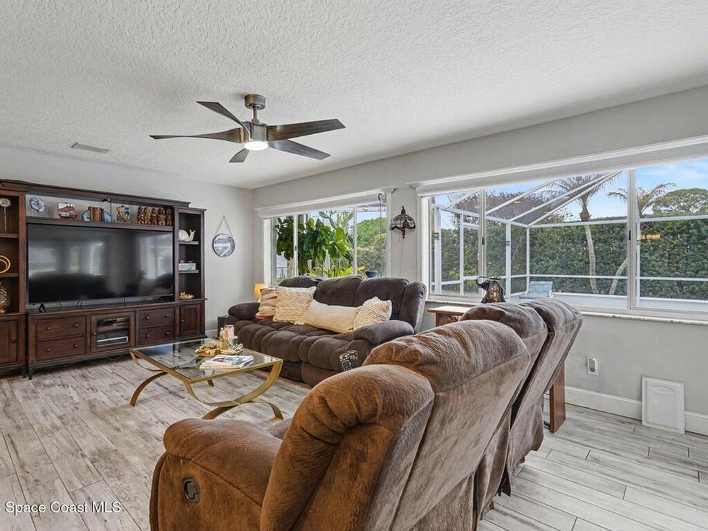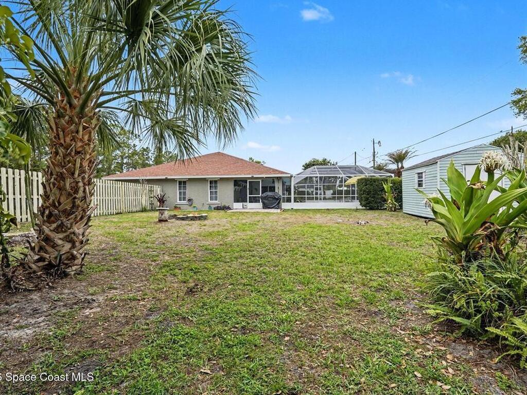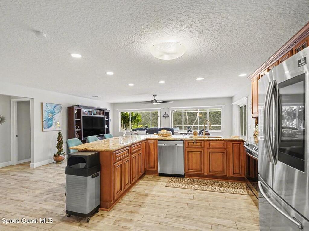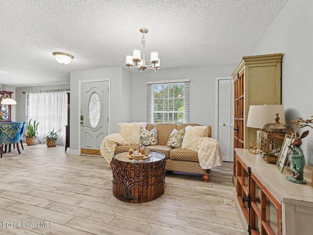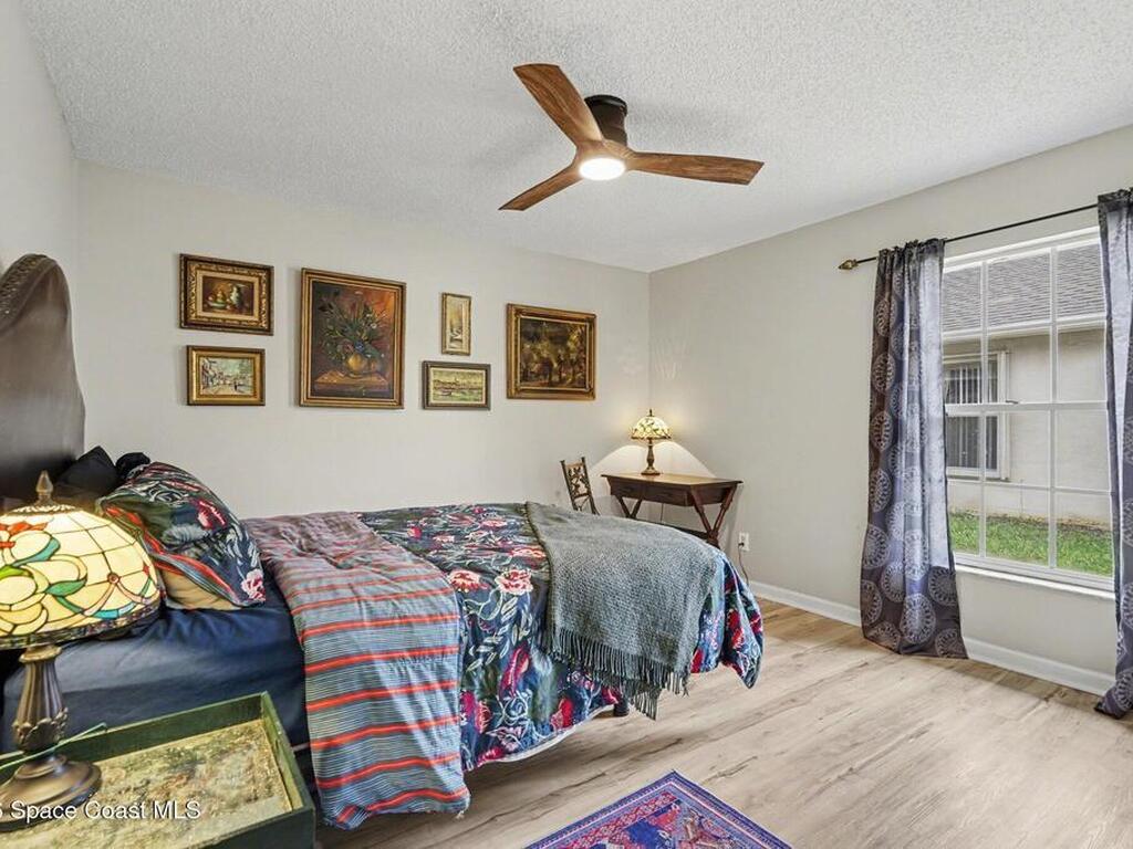 Welcome to this spacious and versatile pool home in the heart of Palm Bay, offering the perfect blend of indoor comfort and outdoor living. Situated on an oversized nearly half-acre lot, this property provides both privacy and room to spread out--an increasingly rare find. Step inside to discover over 2, 100 square feet of living space, featuring a flexible layout designed for both everyday living and entertaining. Multiple living areas--including a formal living room, dining space, and bonus/flex room--offer endless possibilities for a home office, media room, or additional gathering space. The kitchen serves as the heart of the home with ample cabinetry, a convenient breakfast bar, and an eat-in dining area that flows seamlessly into the main living spaces. Tile and laminate flooring throughout add durability and easy maintenance, while natural light enhances the home's warm and inviting feel.The split-bedroom floor plan provides privacy, with a generously sized primary suite