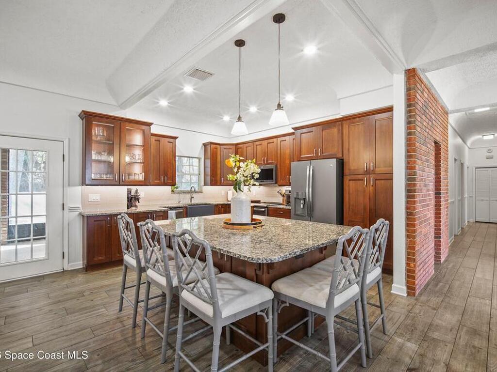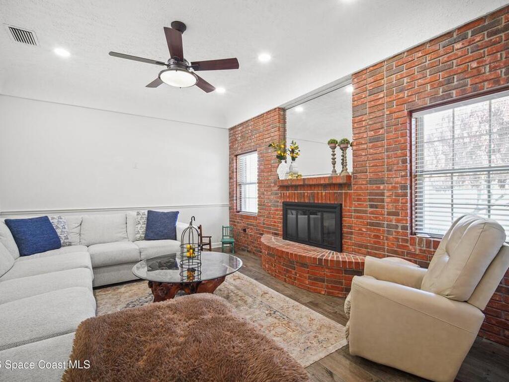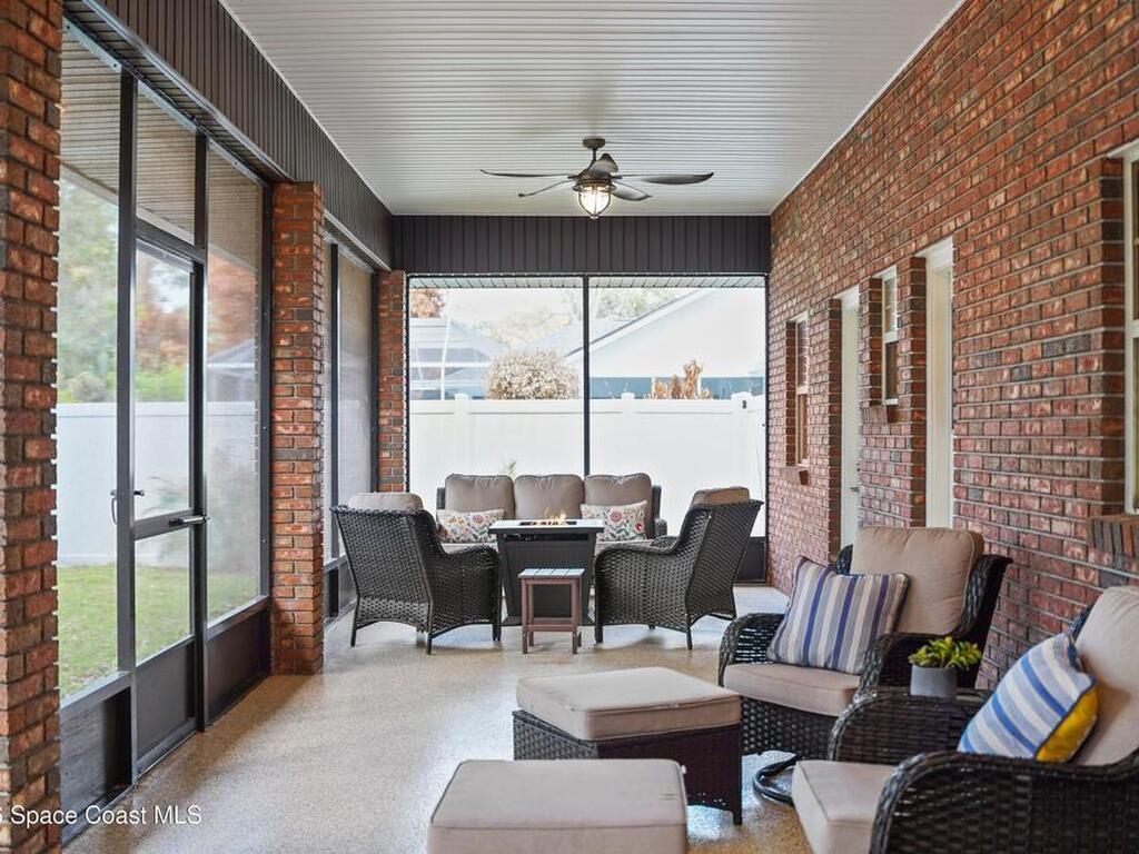 Some homes just have a warmth to them the moment you walk in, and this is one of them. Located in the gated Ashley Manor community in West Melbourne, this 4-bed, 2-bath home offers over 2, 400 sq ft with a layout designed for both everyday living and gathering with family and friends. Multiple living spaces create flexibility, while the split floor plan offers privacy for the primary suite. Warm brick accents, higher ceilings, and warm modern touches throughout give the home a unique character that feels comfortable and inviting. A massive screened patio stretching over 60 feet across the back creates an awesome environment for relaxing and entertaining while enjoying the added privacy of the grove property behind the home. The property also features a circular driveway and paved side yard ideal for RV, boat, or extra vehicle parking. Roof 2023. Reverse osmosis system. Storm-rated garage door. Ashley Manor offers tennis, pickleball, basketball, a gazebo, and a play area.