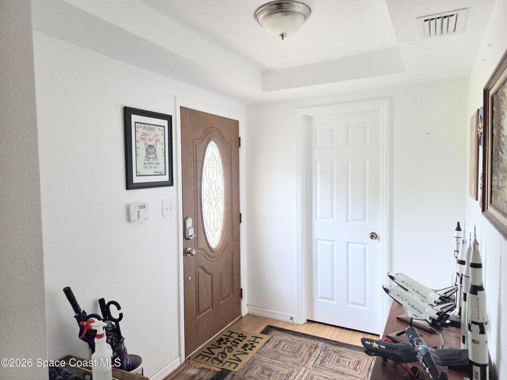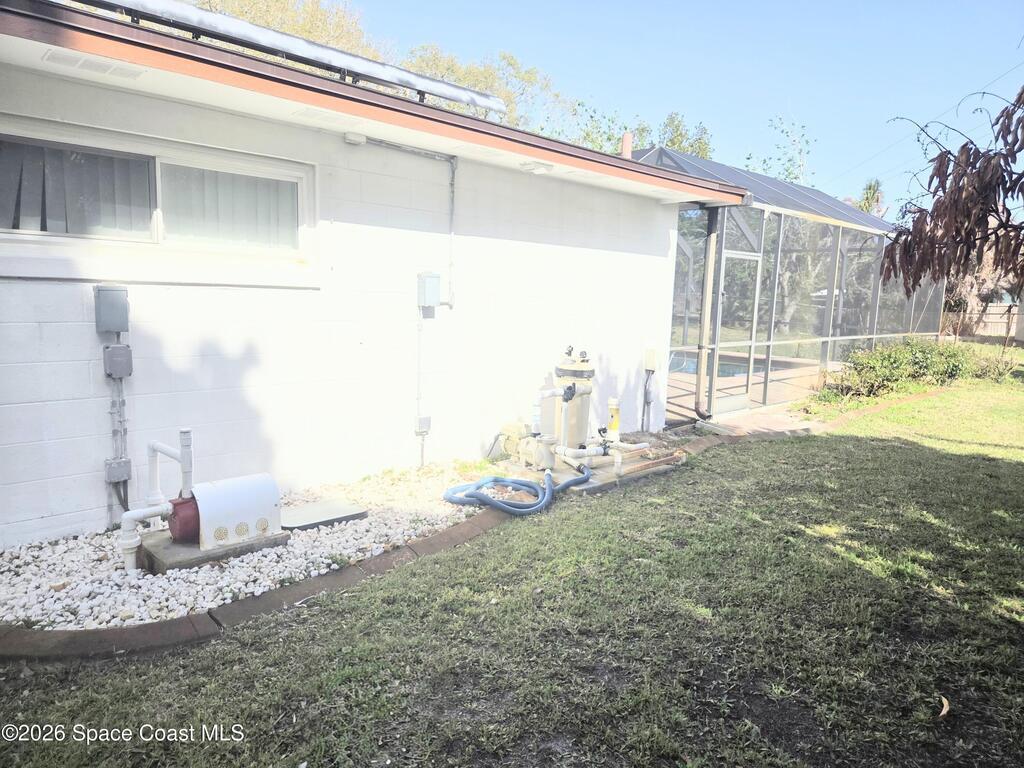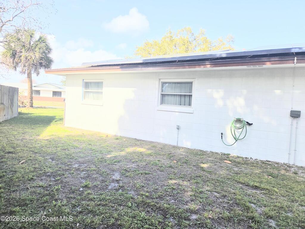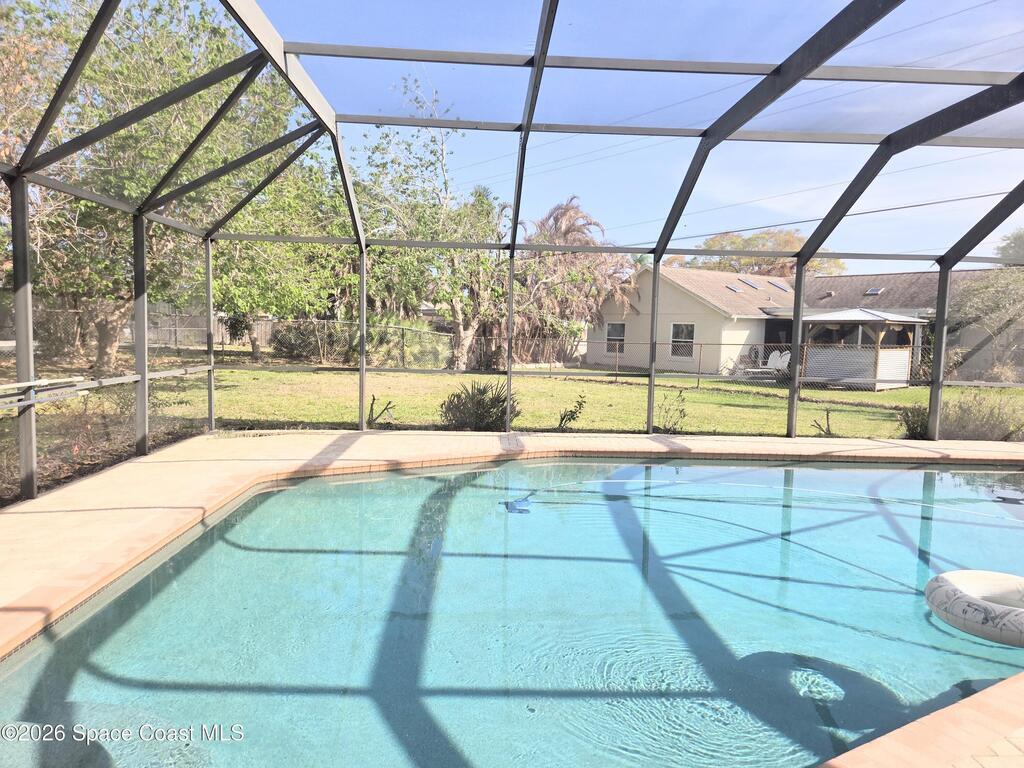 Endless amounts of storage in this energy efficient 3 bedroom 2 bath completely renovated pool home in Villa De Palmas subdivision.Featuring solar panels already paid over 35k to have less than $50 electric bill. Extra large laundry room with storage cabinets.His and Hers walk in closets with Cedar.Enormous brick paver driveway.. Wind resistant windows. New roof, recently replaced HVAC in 2022.Recently replaced pool enclosure screen. Water filter system, security system. New garage door in 2022.Handicap accessible bathrooms.Largest yard in neighborhood. Large shade trees, Very relaxed HOA only $100 yearly for entrance way and sidewalks. Conveniently located near shopping, the brand new hospital, KSC, Blue Origin, Spacex, Port Canaveral cruise terminal. SFB, Melbourne, the beaches, river.. 1 hour to Orlando International Airport and 30 minutes to Melbourne Airport. 1 hour Orlando attractions.
