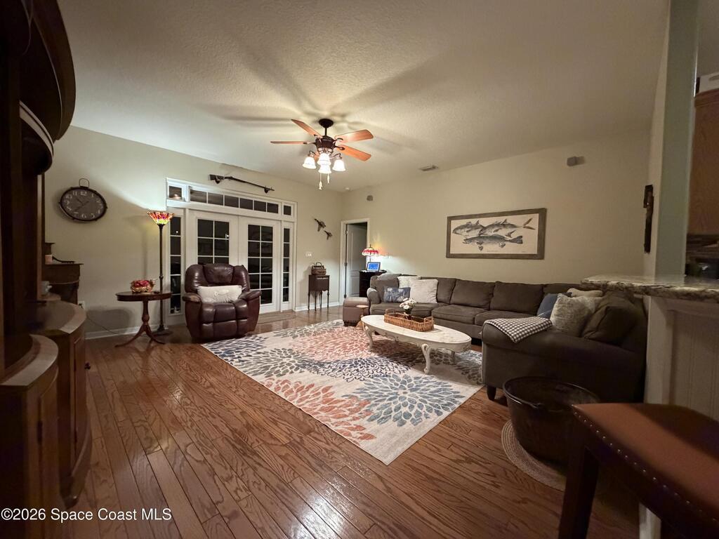 Solid CBC w STEEL STUDS! Gorgeous very well kept 4/2 in desirable Laurel Run. Split and open floor plan with French doors from the family room and primary suite to the sparkling pool and spa, resurfaced, with a fully screened enclosure with guest bath access. 9' ceilings. 14x15 paver patio out back for a fire pit or additional entertainment space. NEW pool heater and pump Fall of 2025. Real hardwood floors throughout main living area, carpet in bedrooms and tile in baths and interior laundry/utility room. Nicely appointed with updated kitchen and baths. Double pane windows throughout. Roof May 2021, HVAC Dec. 2022, Water heater 2020, New irrigation well 2019, Beautifully landscaped with low maintenance plants and river rocked beds. Fenced back yard with double reinforced gates on both sides with plenty of room for smaller RVs, boats, kayaks and toys. High and dry lot. 10x12 stud built and shingle roofed shed to match home. Additional features list available.