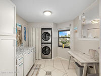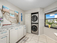Experience Florida living at its finest in this beautiful end-unit condo with breathtaking views of the Banana River in a coveted waterfront community of Rock Pointe. Watch the Cocoa Beach Christmas Boat Parade from your very own porch, which cantilevers out for completely unobstructed views. Inside, you'll find laminate flooring throughout the living areas, crisp neutral kitchen cabinets, and newer appliances for a modern touch in the kitchen. The owner's suite features a spacious walk-in closet, dual sinks, a standing shower, and a garden tub, perfect for relaxing while enjoying waterfront views. Wake up to serene river views and step out onto the porch via private sliding door access. The revamped laundry room adds extra convenience. Owners just added brand new Hurricane shutters for peace of mind. Don't miss this slice of paradise with unbeatable water views!