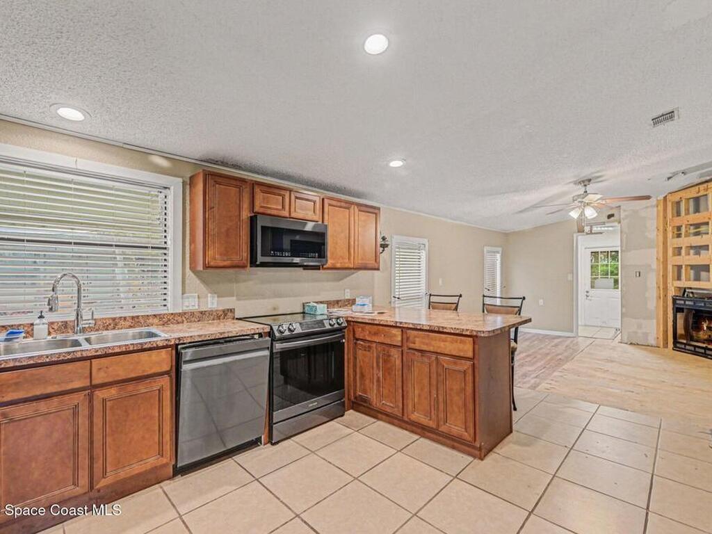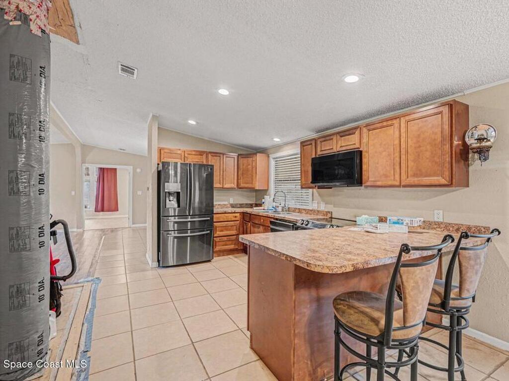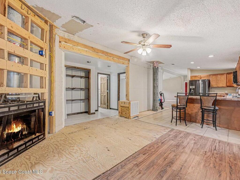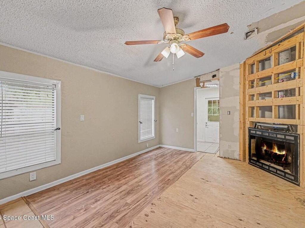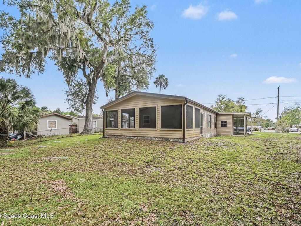 Spacious 3-bedroom, 3-bath double wide located in Mims offering great potential with key updates already in place. Home features a newer roof, wood plank tile flooring, and a cozy wood-burning fireplace. Recently updated kitchen and bathrooms add modern appeal. Functional layout includes a living room, family room, and dining area, plus inside laundry for added convenience. The primary suite offers a walk-in closet and a tub/shower combo. Enjoy outdoor living with two screened porches, along with a carport and additional storage room. With just a few finishing touches needed, this property is ready to be completed to your style--ideal for a primary residence, rental, or investment opportunity. Easy commuting to the interstate, space center, beaches, airport, and more.