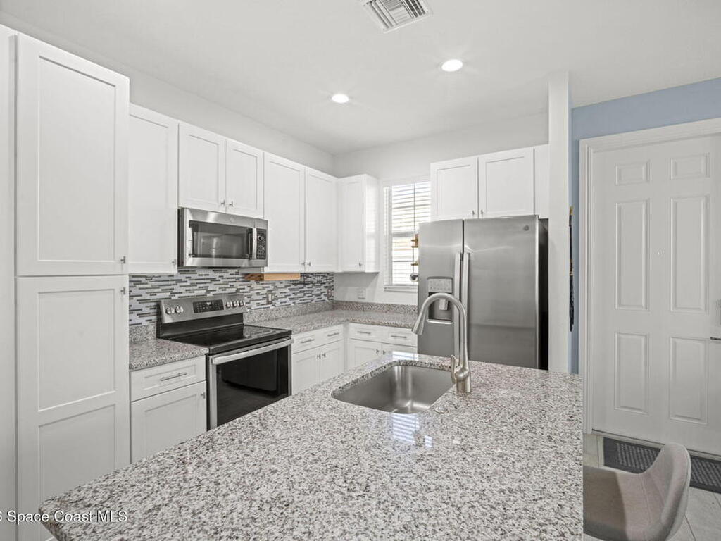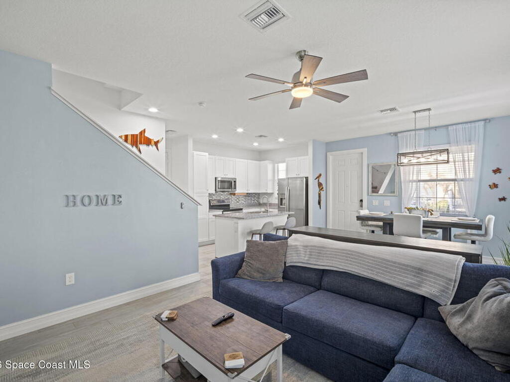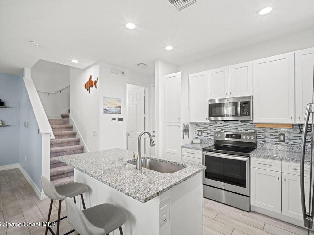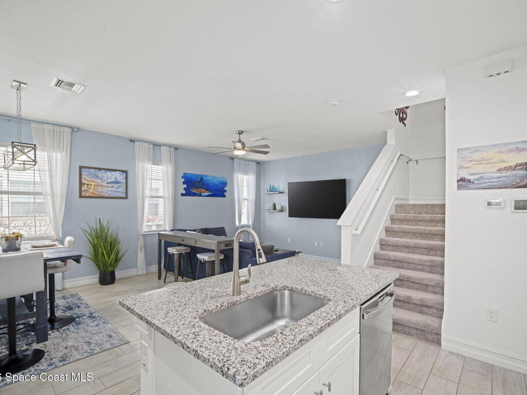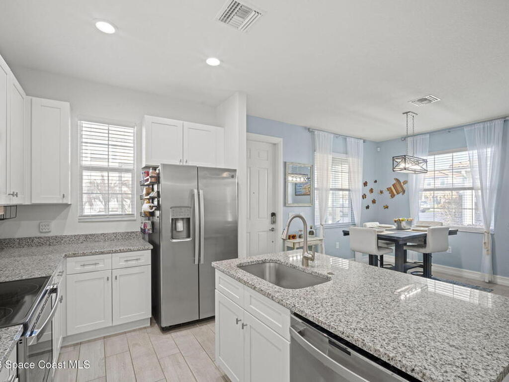 Step into easy coastal living in this nearly-new townhome tucked inside the gated community of Riverwalk of Melbourne, where every detail feels thoughtfully designed for comfort, style, and everyday enjoyment.Built in 2022, this 3-bedroom, 2.5-bath home welcomes you with a light-filled open layout and a calming palette inspired by the coast. Sunlight pours through generous windows, dancing across beautiful wood-look tile floors and creating a space that feels both fresh and inviting from the moment you walk in.The heart of the home, in the kitchen, is where mornings begin and evenings come together. Featuring crisp white cabinetry, gleaming granite countertops, and sleek GE Profile appliances, it's a space that's as functional as it is beautiful. Whether you're preparing a quiet breakfast or hosting friends, everything flows effortlessly into the main living area.