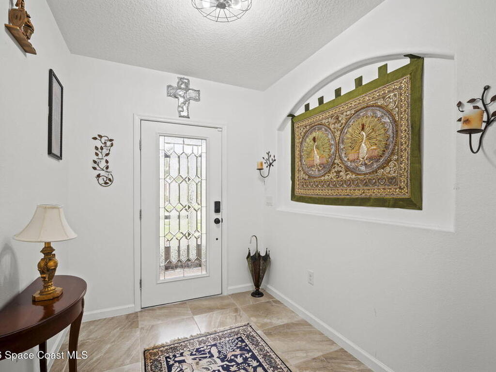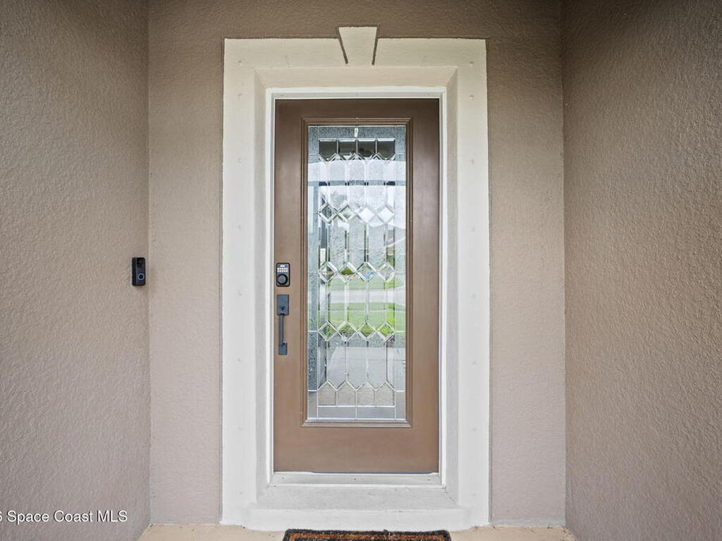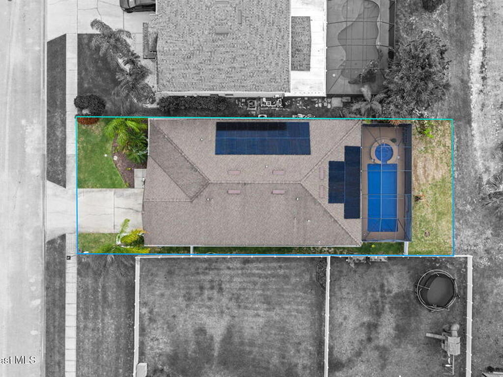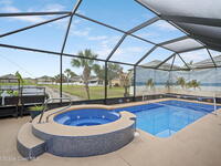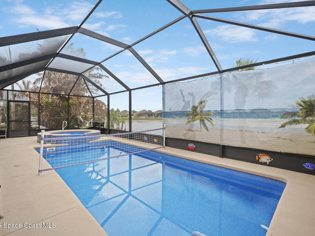 Enjoy beautiful water views and peace of mind paid-off solar panels, which significantly reduce your electric bills, newer AC and water heater, a pool and spa with screen enclosure, and a desirable open, split floor plan. The home also offers a bright eat-in kitchen that flows seamlessly into the main living areas, creating a comfortable and functional space for everyday living and entertaining.The split-bedroom layout provides privacy for the primary suite while keeping guest rooms well positioned throughout the home. Step outside to enjoy Florida living at its best with a screened pool and spa overlooking the peaceful water view, perfect for relaxing or hosting gatherings year-round. With major system updates and energy-saving solar already in place, this home combines efficiency, comfort, and lifestyle in a great Palm Bay location.*Sprinklers run on well water for extra savings!