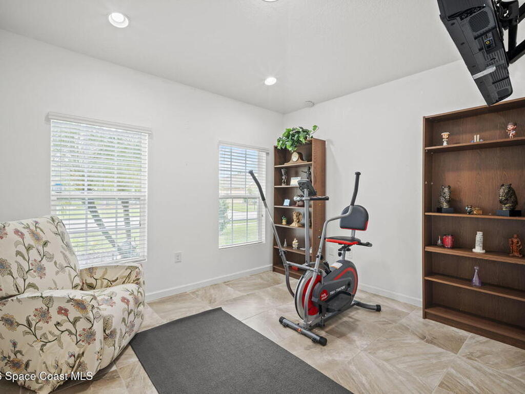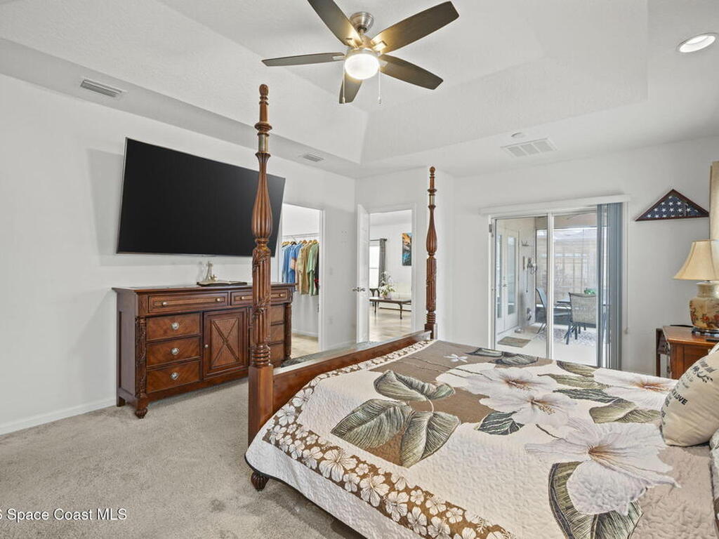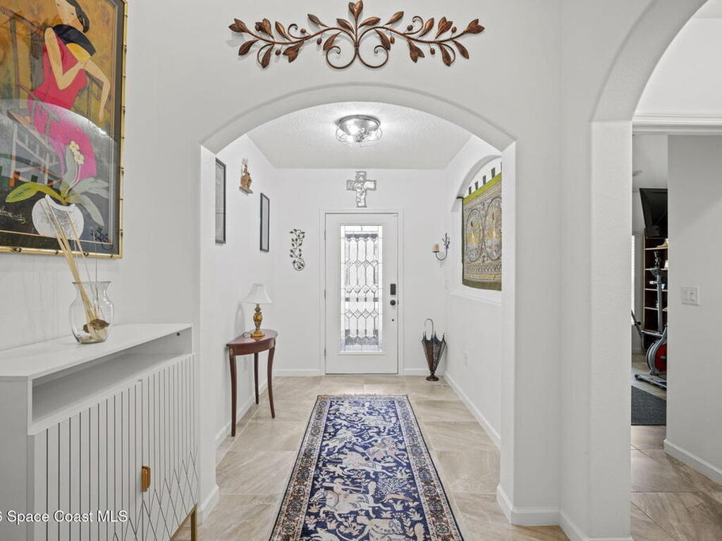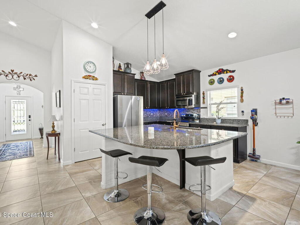 Enjoy beautiful water views and peace of mind paid-off solar panels, which significantly reduce your electric bills, newer AC and water heater, a pool and spa with screen enclosure, and a desirable open, split floor plan. The home also offers a bright eat-in kitchen that flows seamlessly into the main living areas, creating a comfortable and functional space for everyday living and entertaining.The split-bedroom layout provides privacy for the primary suite while keeping guest rooms well positioned throughout the home. Step outside to enjoy Florida living at its best with a screened pool and spa overlooking the peaceful water view, perfect for relaxing or hosting gatherings year-round. With major system updates and energy-saving solar already in place, this home combines efficiency, comfort, and lifestyle in a great Palm Bay location.*Sprinklers run on well water for extra savings!
