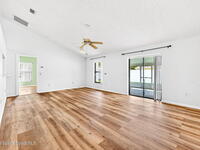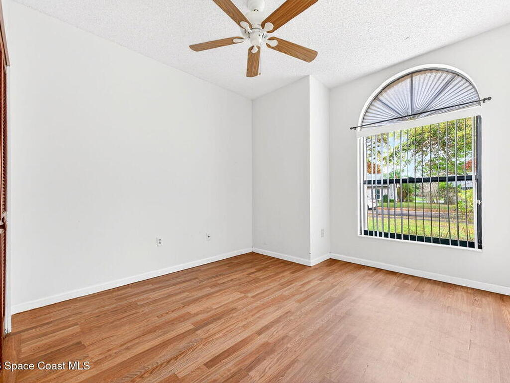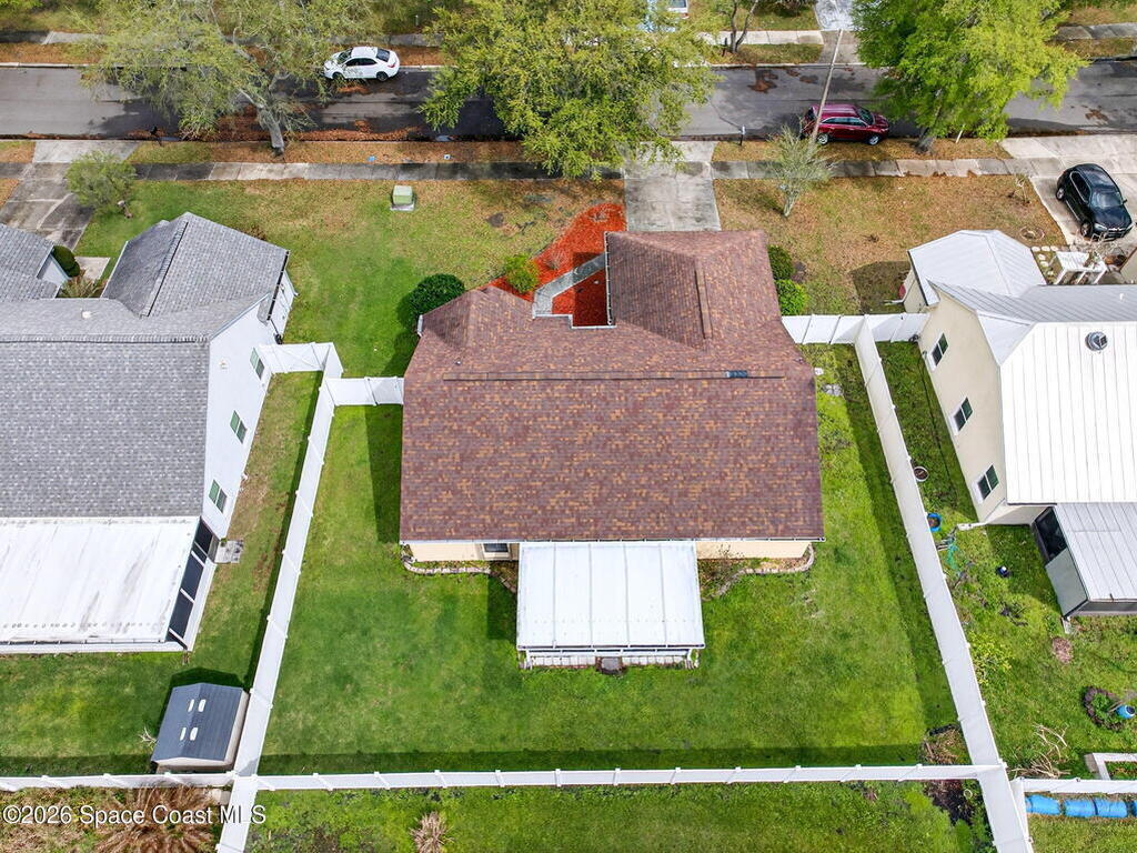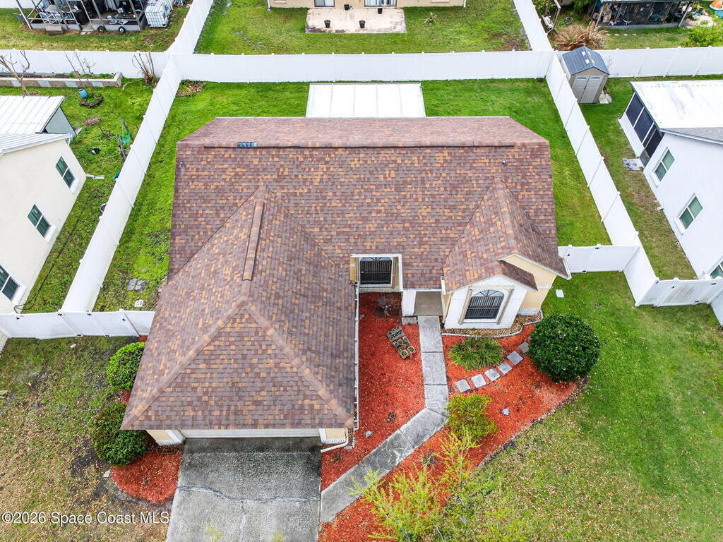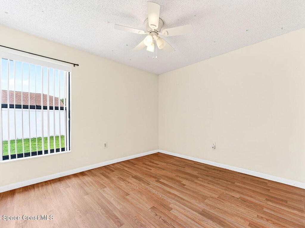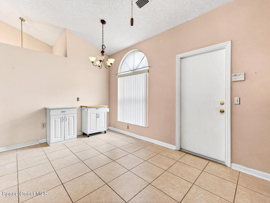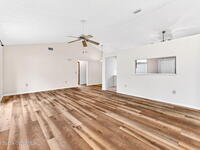 Perfect starter home-NO HOA located in the quiet Cocoa Pines community, this well-maintained 3 bedroom, 2 bath concrete block home offers a desirable split floor plan and a 2-car garage. Conveniently situated with easy access to I-95, Orlando International Airport, Kennedy Space Center, beaches, schools, shopping, and restaurants. Inside, the home features vinyl, tile, laminate flooring throughout along with ceiling fans for added comfort. The eat-in kitchen features newer appliances, updated countertops, and a matching island for added prep and gathering space. The combined living and dining area boasts vaulted ceilings, creating an open and inviting space perfect for entertaining. Sliders lead to a screened porch overlooking the private backyard framed by a white vinyl privacy fence. Additional highlights include a sprinkler system in the front and rear yard and accordion hurricane shutters for added protection and peace of mind. This home is ready for a new family.