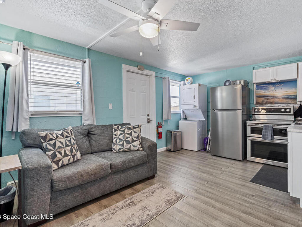 Location, location, location! Calling all CASH BUYERS. Make your beach dreams a reality with this fantastic 1 bedroom, 1 bath condo. The condo is just a short walk (1.5 blocks) to the beach. This turnkey condo unit makes a great Airbnb style investment, snowbird oceanfront oasis, or even your full-time residence. The complex offers investor-friendly policies that allow weekly rentals. The fully furnished unit boast an open floor plan, updated kitchen with stainless steel appliances, and an updated bath. Buyers here will enjoy peace of mind with 2 newer mini split A/C systems (2 years old), in unit stackable washer and dryer, good rental history, great reviews on Airbnb and VRBO, all furniture 1-2 years old, all licenses are up to date, the building was painted this year, and balcony project was completed last year. You'll love the fabulous Florida lifestyle this complex offers, step outside to enjoy the rocket launches and the beach. And a great location near The Cove, the Cocoa Beach