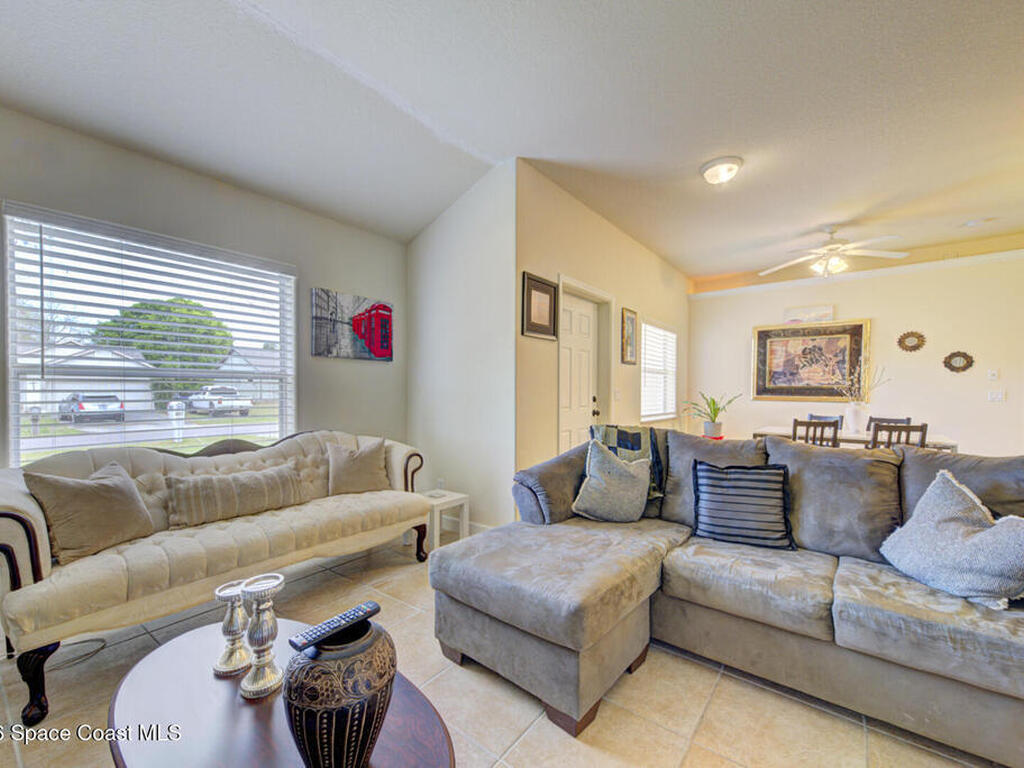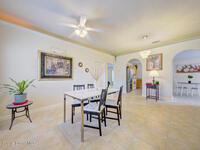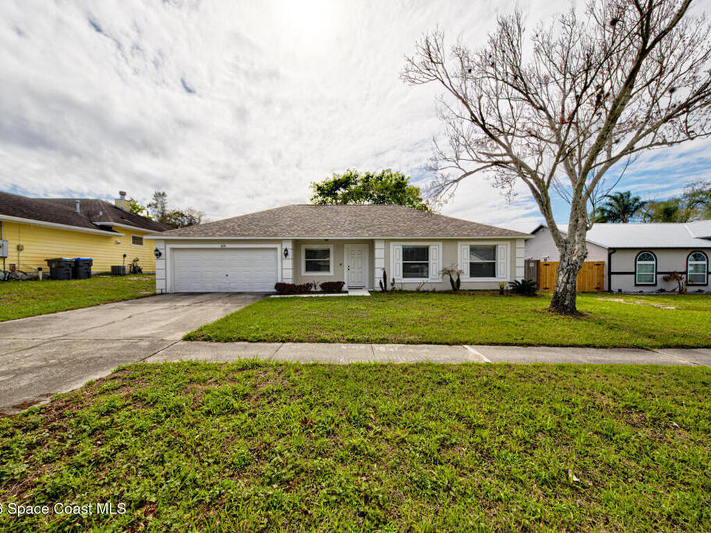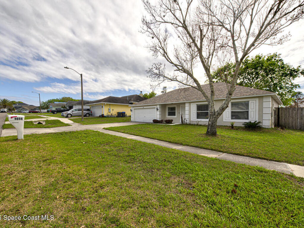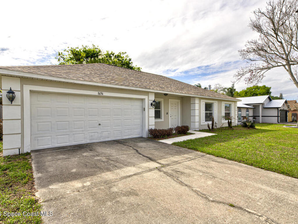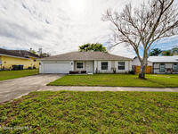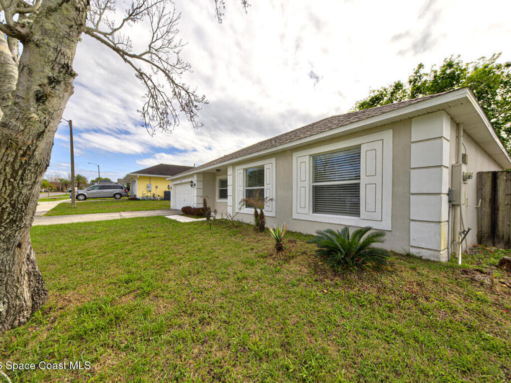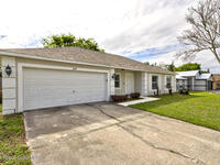 Well Maintained 3 Bedroom 2 Bath 2 Car Garage, Split Plan, Concrete Block Home, Built in 2003 on 0.26 Acres Located in Titusville. This home has much to offer with living room dining room combo, spacious kitchen with wooden cabinetry & corian countertops, breakfast nook, laundry inside, Master suite has walk-in closet and walk-in shower, guest bathroom has shower/tub combo, Tile flooring throughout main living areas except carpet in all bedrooms. Roof Replaced in 2023, Large fenced in (6' wooden privacy fence) backyard, covered lanai. NO HOA, plenty of room to park, trailer, boat or motorhome. This home is worth taking a look at...