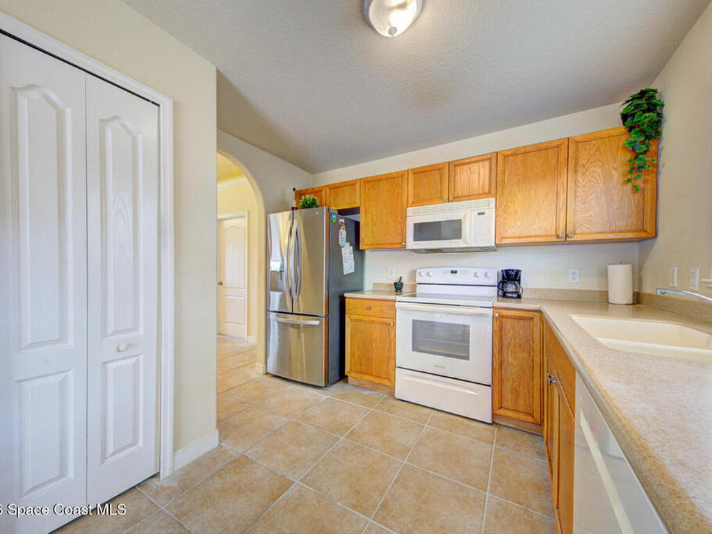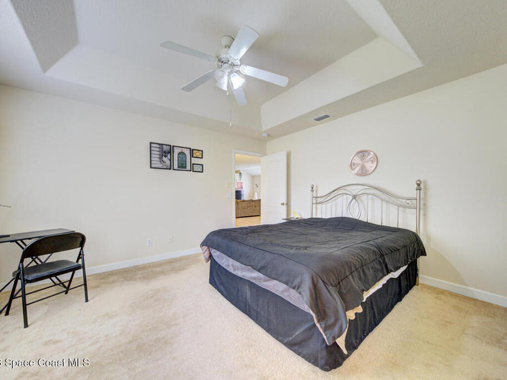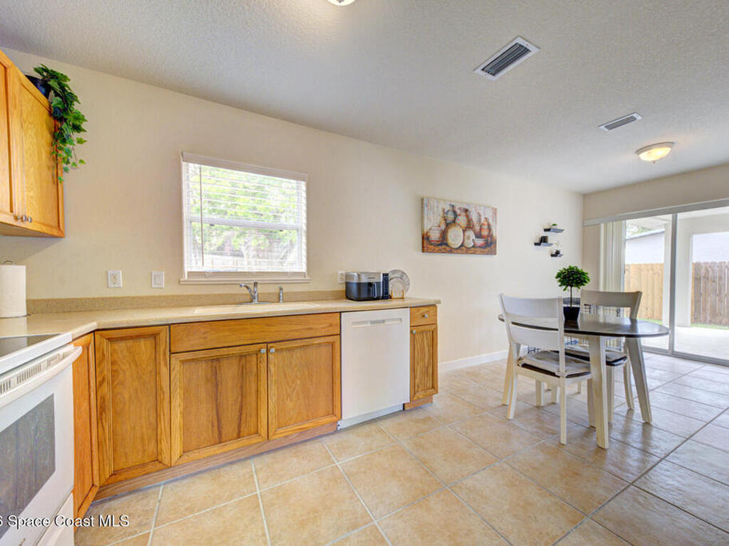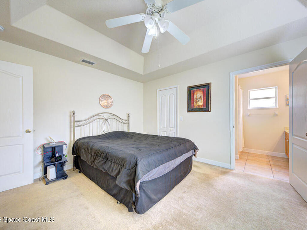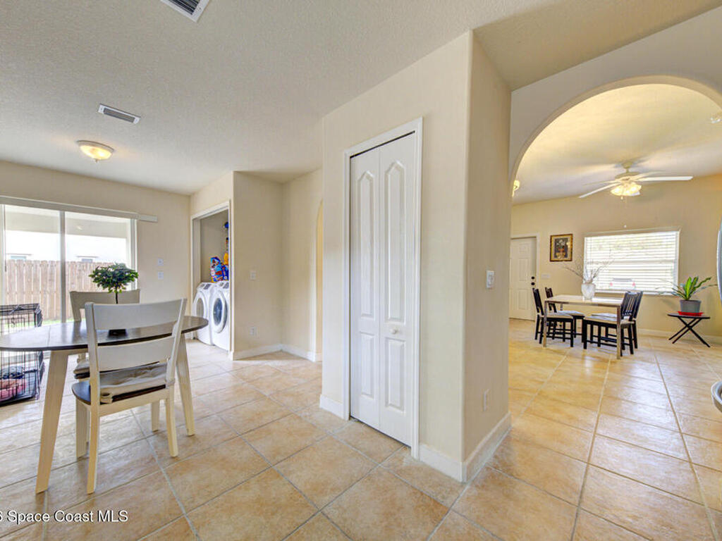 Well Maintained 3 Bedroom 2 Bath 2 Car Garage, Split Plan, Concrete Block Home, Built in 2003 on 0.26 Acres Located in Titusville. This home has much to offer with living room dining room combo, spacious kitchen with wooden cabinetry & corian countertops, breakfast nook, laundry inside, Master suite has walk-in closet and walk-in shower, guest bathroom has shower/tub combo, Tile flooring throughout main living areas except carpet in all bedrooms. Roof Replaced in 2023, Large fenced in (6' wooden privacy fence) backyard, covered lanai. NO HOA, plenty of room to park, trailer, boat or motorhome. This home is worth taking a look at...