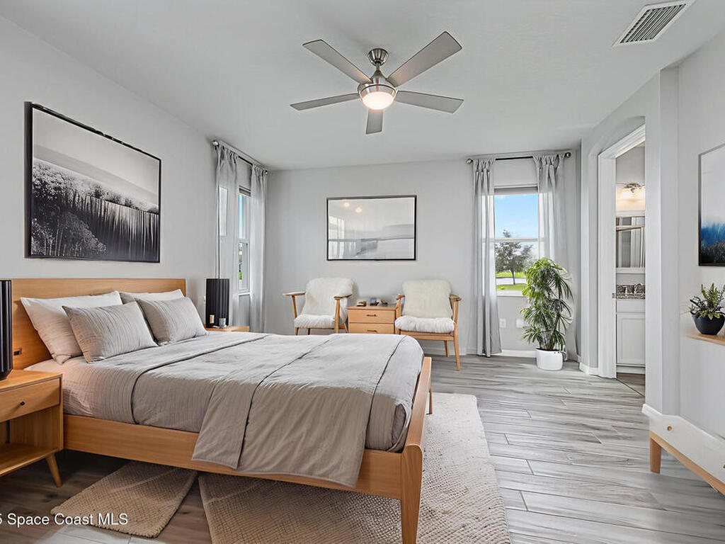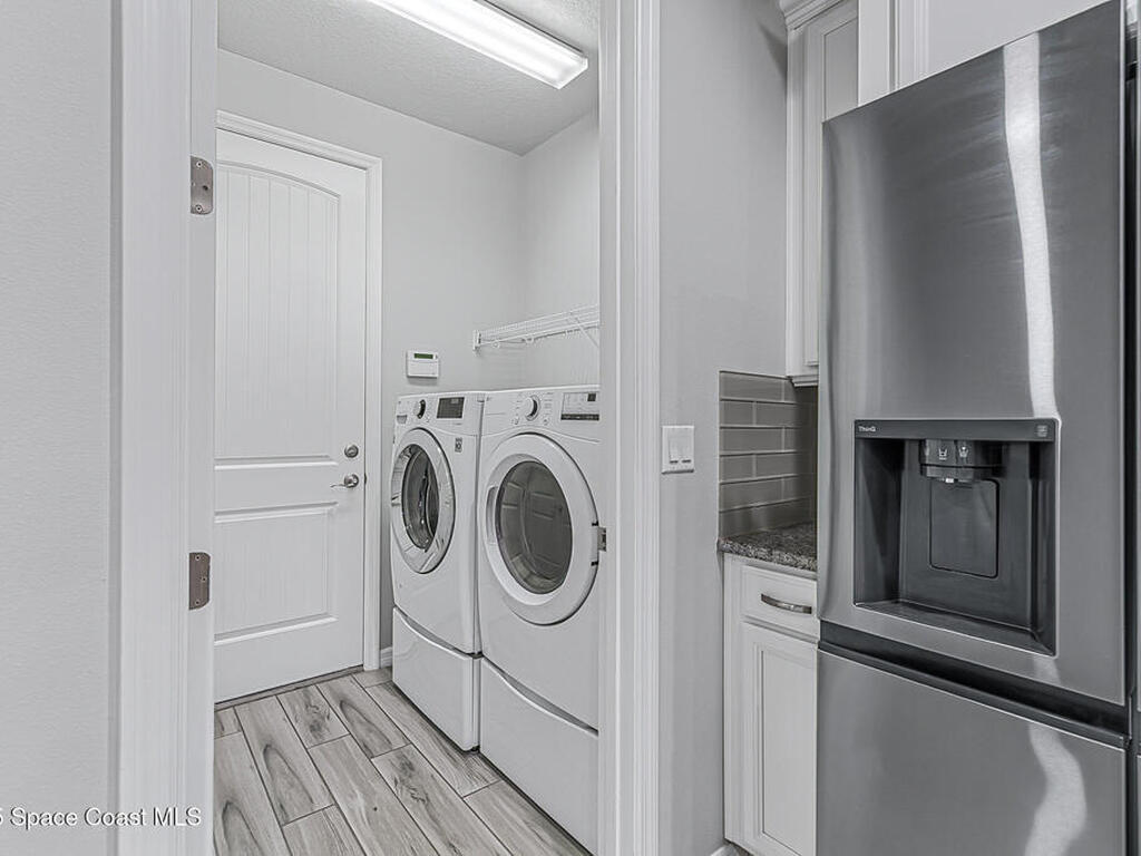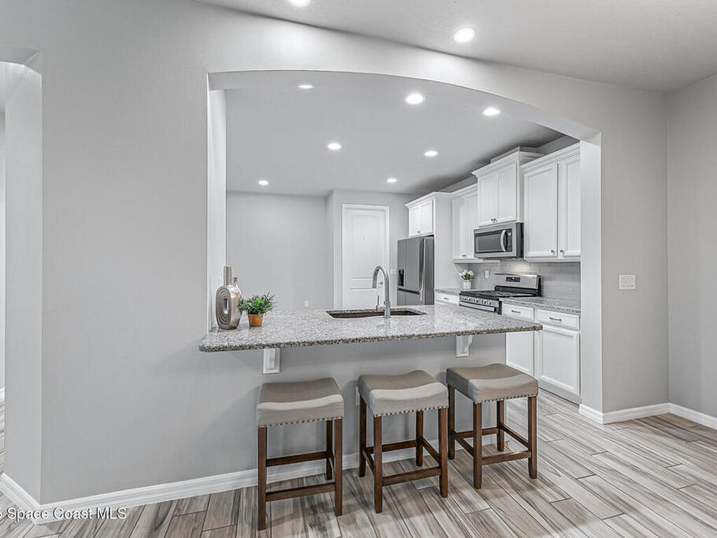 Beautifully updated end-unit home in Viera offering low-maintenance living with no carpet and brand-new tile flooring throughout--completely move-in ready. Tucked away on a private cul-de-sac with serene lake views, this home features 1, 641 sq. ft. of thoughtfully designed open living space. The bright, airy floor plan flows seamlessly into a modern kitchen equipped with sleek finishes, a new refrigerator, and a new washer for added convenience.A split-bedroom layout ensures privacy, while the spacious primary suite boasts a walk-in closet and a spa-inspired bathroom retreat.Step outside to your newly added screened-in patio, perfect for relaxing or entertaining year-round. A natural gas hookup is already in place, making it easy to install an outdoor grill or even a full summer kitchen. Additional upgrades include a freshly painted garage, garage door, and front entry door--enhancing both curb appeal and functionality.