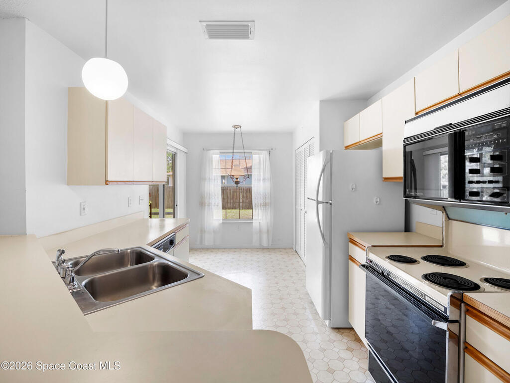 This home offers a warm, inviting feel with a layout that makes everyday living easy and comfortable. The main living and dining areas open naturally into an updated kitchen featuring newer cabinetry, stainless-steel appliances, and plenty of counter space, giving the home a smooth, practical flow. The split floor plan keeps the primary suite tucked away for privacy, complete with a walk-in closet and an updated bath. Step out to the screened porch overlooking a spacious fenced yard with room for pets, gardening, play areas, or future outdoor additions. Tile flooring throughout keeps maintenance simple, and the indoor laundry and two-car garage add convenience. The home has been well cared for, with thoughtful updates that make it move-in ready. Located in a quiet SE Palm Bay neighborhood close to schools, shopping, I-95, and the Bayside Lakes corridor, it offers a comfortable blend of space, convenience, and relaxed Florida living--ideal for anyone looking for a solid, well-kept home!
