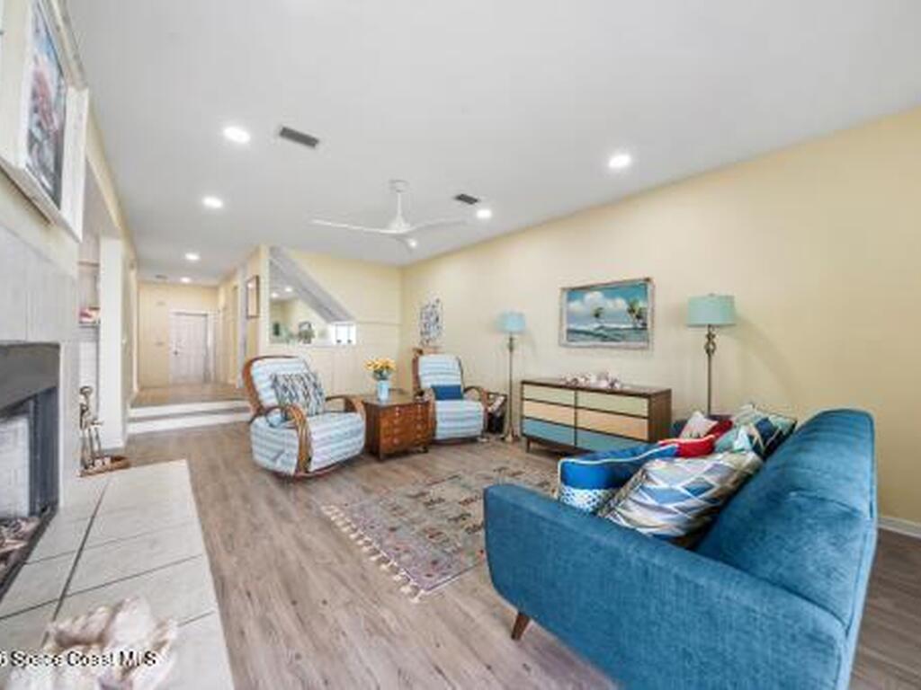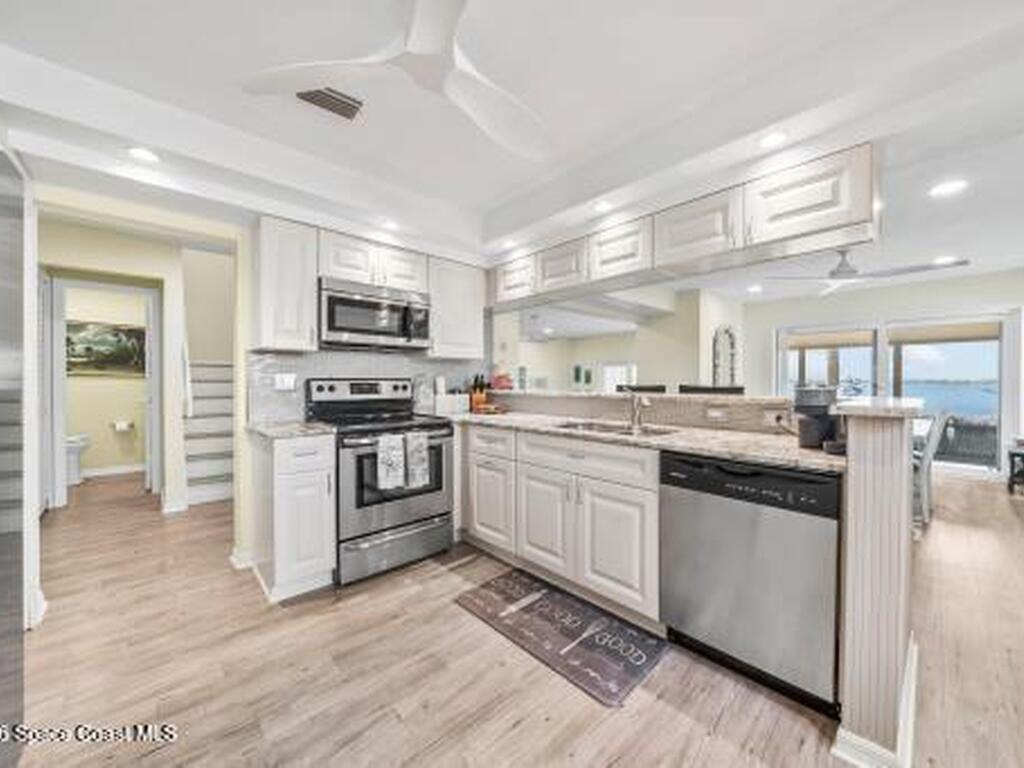 Remarkable Riverfront Home. This lovely townhome has been completely updated including a new tile roof in 2017. The formal entrance leads to a spacious fireplaced living room & dining roomjust steps from the beautiful Indian River. Dolphins & Manatees will entertain you with their playfulness. The Kitchen is achefs dream with state of the art appliances, stylish cabinets and lovely granite counters and guests can chat with you at the Breakfast Bar while you are preparing dinner. The upstairs master bedroom & ensuite bath are finished insoft tones with elegant use of gorgeous tile and glass. Enjoy a delicious coffee onthe deck or perhaps a romantic coctail while viewing the magnificent sunsets over the River. Every detail has been given to the wonderful flow of this charming home. From thewinding flowered entrance to the spectacular views of the River & the quiet ambiance of a fireside respit witha wonderful book. We invite you to explore