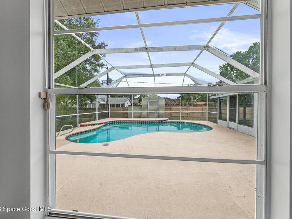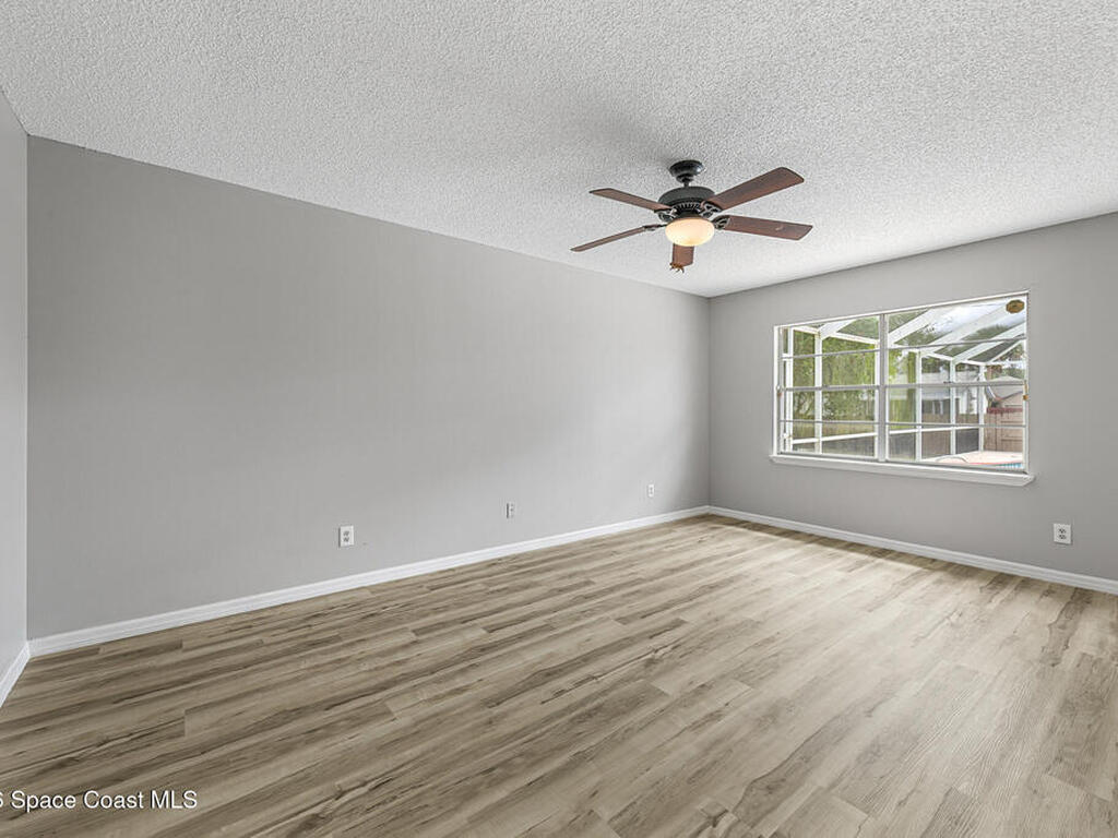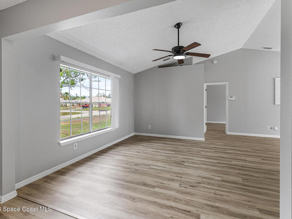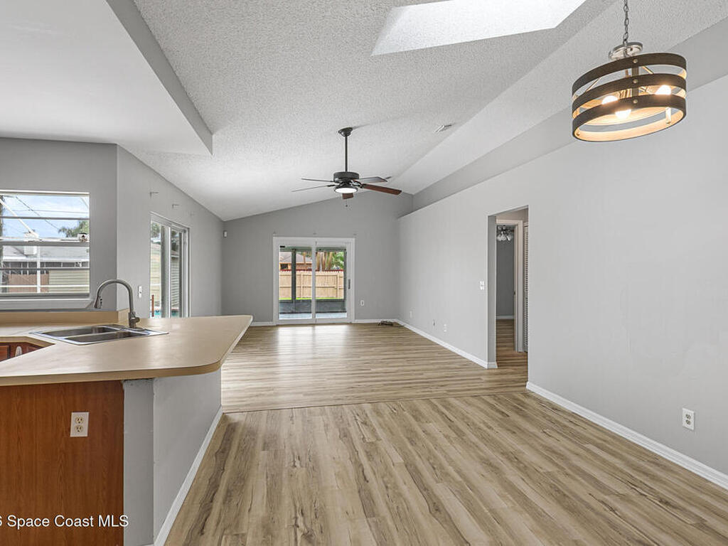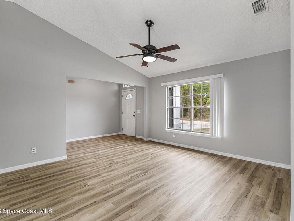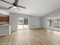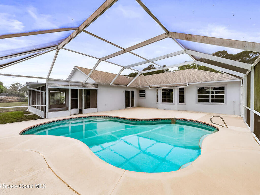 New to the market -- this freshly updated Palm Bay pool home is one of the best values currently available! The seller is offering a $5, 000 closing cost credit to the buyer with an accepted contract closing within 30 days.This spacious 3-bedroom, 2-bath home with a versatile bonus room offers incredible flexibility along with two separate living areas, giving you plenty of room for entertaining, relaxing, working from home, or creating a playroom or guest space.Step inside to a bright and airy open layout featuring vaulted ceilings and luxury vinyl plank flooring throughout. The main living space flows seamlessly into the dining area, where beautiful bay windows overlook the sparkling blue pool, bringing in natural light and creating the perfect backdrop for everyday living.The kitchen sits at the heart of the home, complete with a breakfast bar and plenty of room to gather with family and friends. Several rooms throughout the home enjoy peaceful views of the pool, adding to the