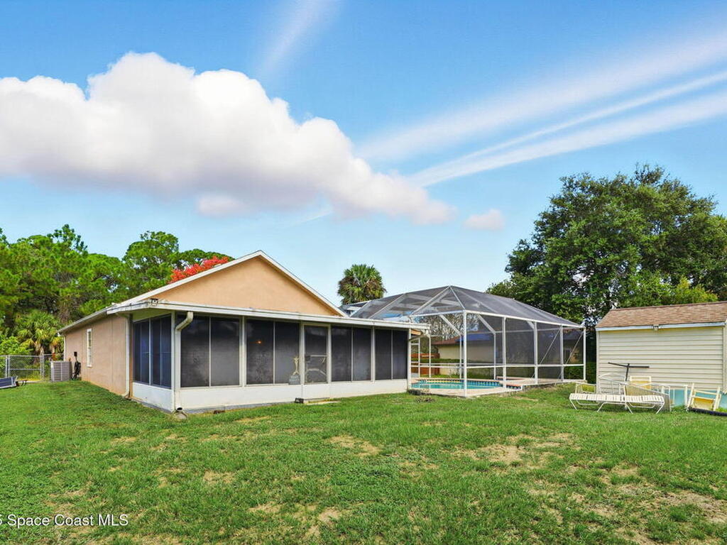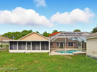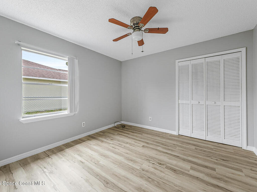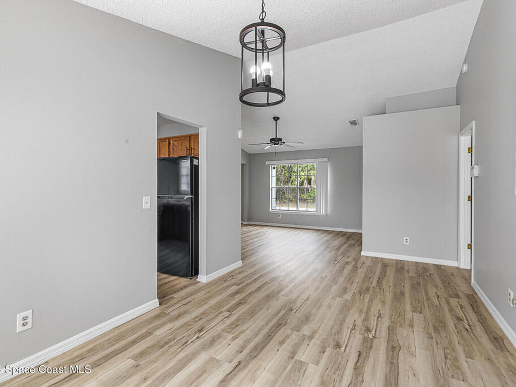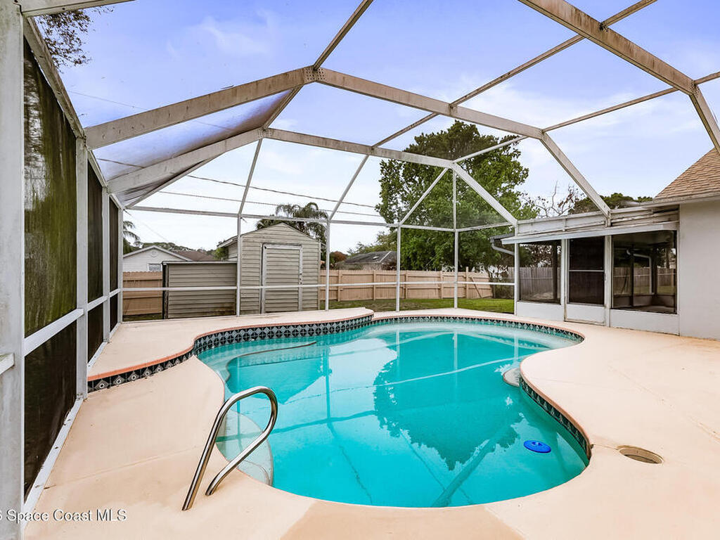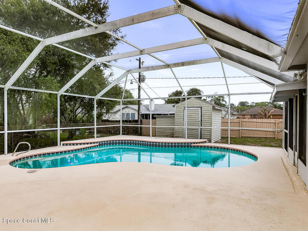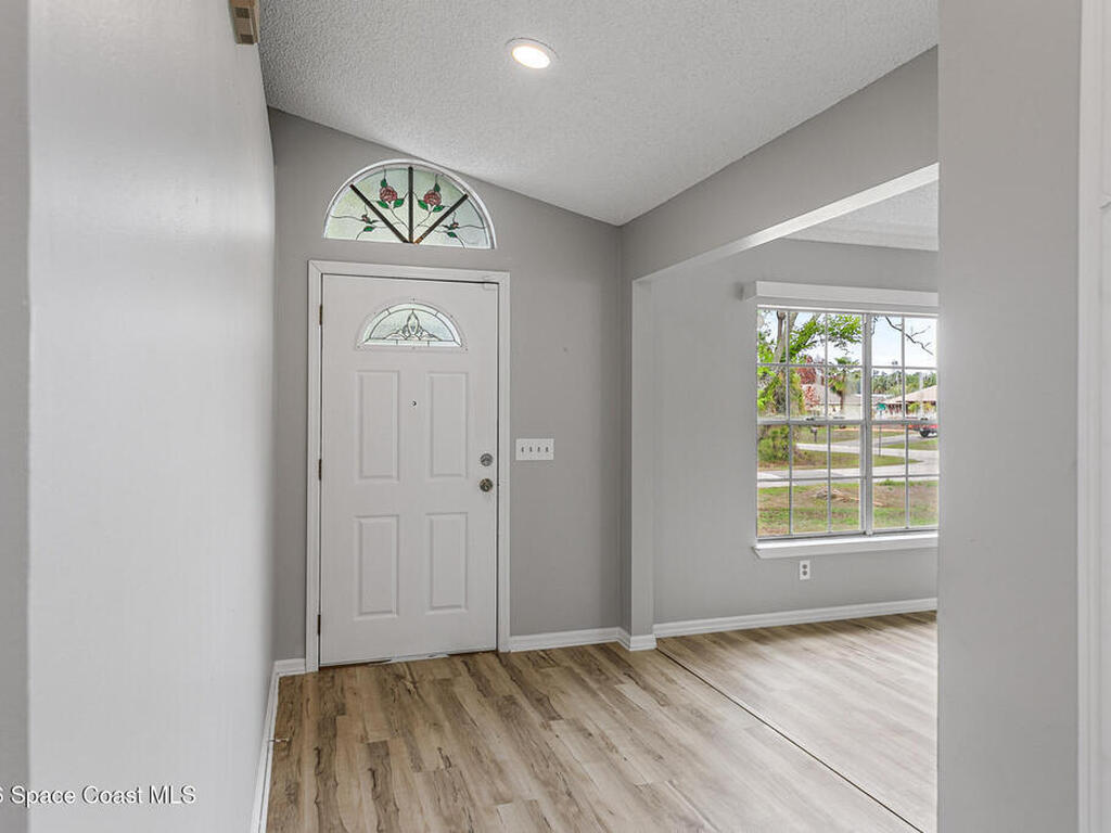 New to the market -- this freshly updated Palm Bay pool home is one of the best values currently available! The seller is offering a $5, 000 closing cost credit to the buyer with an accepted contract closing within 30 days.This spacious 3-bedroom, 2-bath home with a versatile bonus room offers incredible flexibility along with two separate living areas, giving you plenty of room for entertaining, relaxing, working from home, or creating a playroom or guest space.Step inside to a bright and airy open layout featuring vaulted ceilings and luxury vinyl plank flooring throughout. The main living space flows seamlessly into the dining area, where beautiful bay windows overlook the sparkling blue pool, bringing in natural light and creating the perfect backdrop for everyday living.The kitchen sits at the heart of the home, complete with a breakfast bar and plenty of room to gather with family and friends. Several rooms throughout the home enjoy peaceful views of the pool, adding to the