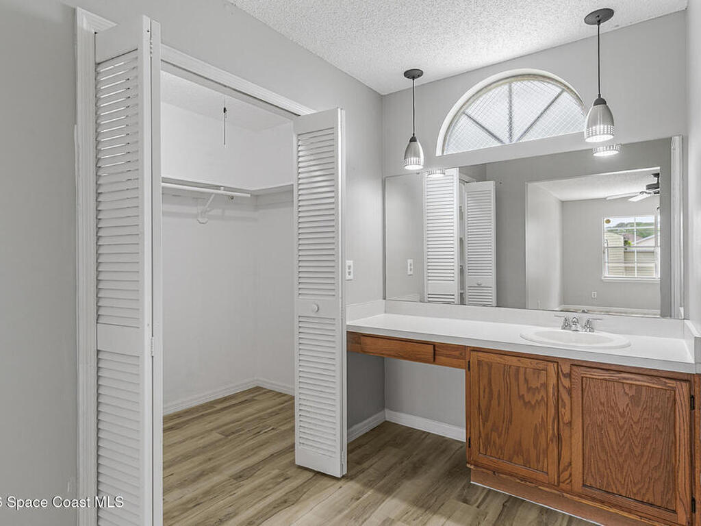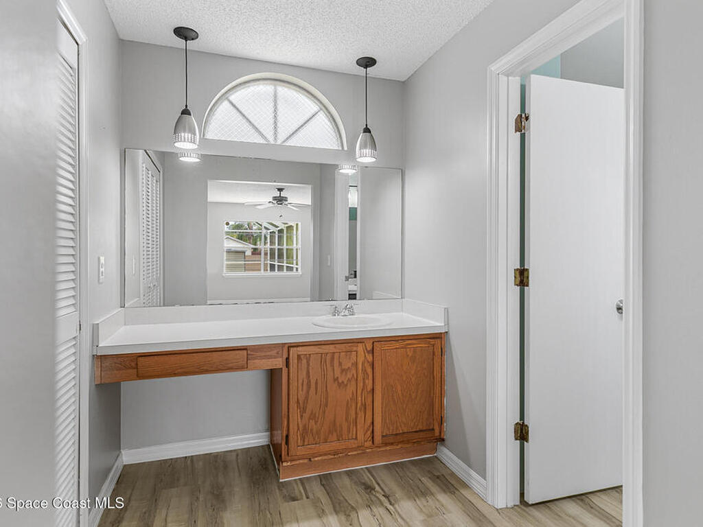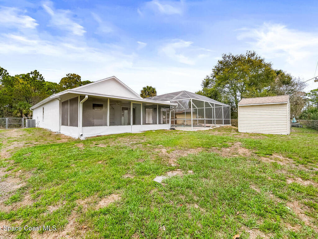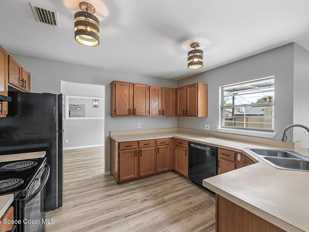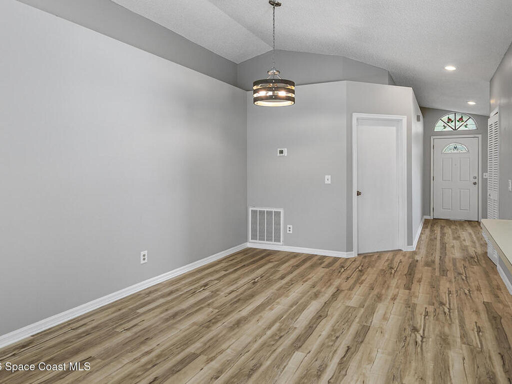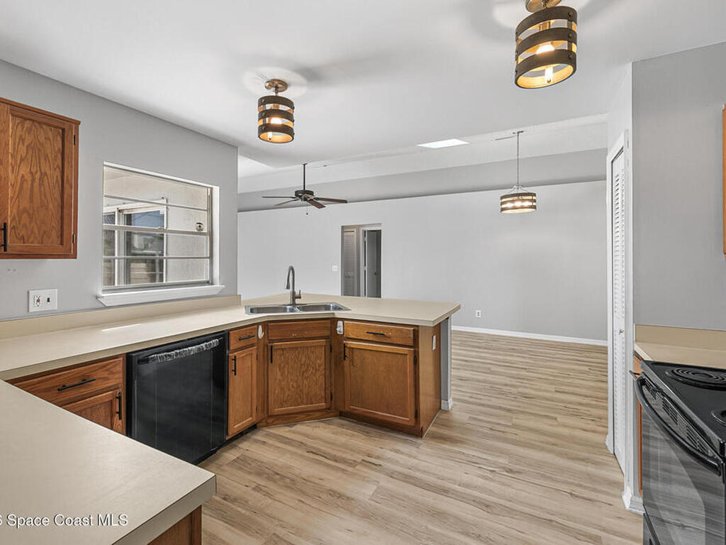 New to the market -- this freshly updated Palm Bay pool home is one of the best values currently available! The seller is offering a $5, 000 closing cost credit to the buyer with an accepted contract closing within 30 days.This spacious 3-bedroom, 2-bath home with a versatile bonus room offers incredible flexibility along with two separate living areas, giving you plenty of room for entertaining, relaxing, working from home, or creating a playroom or guest space.Step inside to a bright and airy open layout featuring vaulted ceilings and luxury vinyl plank flooring throughout. The main living space flows seamlessly into the dining area, where beautiful bay windows overlook the sparkling blue pool, bringing in natural light and creating the perfect backdrop for everyday living.The kitchen sits at the heart of the home, complete with a breakfast bar and plenty of room to gather with family and friends. Several rooms throughout the home enjoy peaceful views of the pool, adding to the