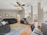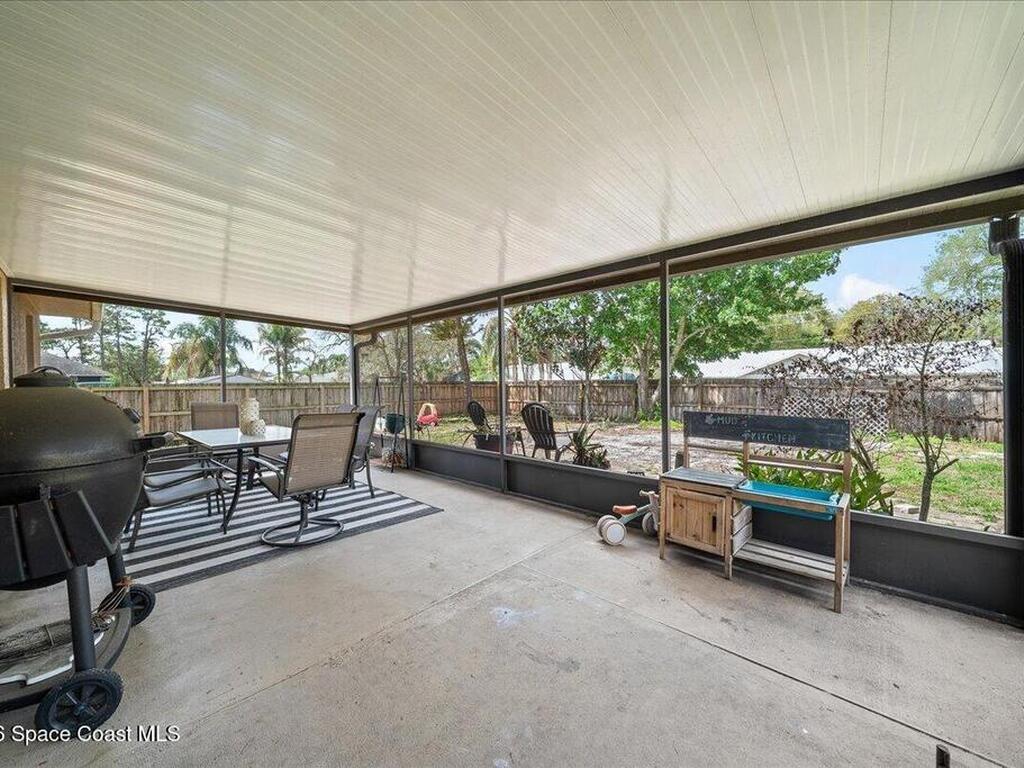 Welcome to this well-maintained 3 bedroom, 2 bath home in Port St. John featuring a desirable split floor plan and spacious layout. The kitchen overlooks the family room, creating an open and connected living space perfect for everyday living and entertaining. A large bonus room offers flexibility for a home office, playroom, or additional living area. Enjoy Florida living year-round from the screened back porch overlooking a fully fenced backyard with plenty of room to relax or play. Major updates include a 2019 roof, 2018 HVAC, and a 2026 water heater for peace of mind. Conveniently located just a short drive to the beaches, Kennedy Space Center, and Orlando, this home offers both comfort and accessibility.