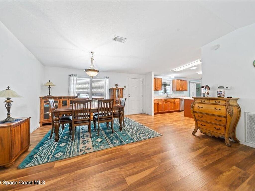 Florida living with a community vibe! Whether you are looking for a vacation home or year-round, this beautifully maintained 3-bed, 2-full bath home in Snug Harbor Lakes is ready to welcome you. Split 1, 620 sq ft plan offers newer metal roof, new HWH, updated flooring, vaulted ceilings, modern kitchen cabinetry, kitchen island with spacious dining area and separate laundry room with washer (new) and dryer included. Primary suite features walk-in closet, spacious primary bath with walk-in shower, private water closet, and separate dual vanities. Additional features include new strappings on carport, freshly painted double wide driveway, storage shed with electricity and Florida room with air and heat. Your Florida lifestyle is calling. Don't miss this opportunity! Come see what makes this home special and imagine the next chapter beginning here.