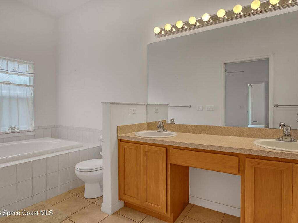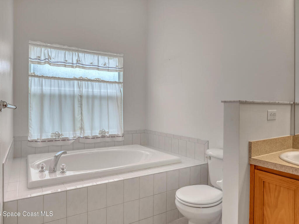 Very nice home in beautiful Deer Lakes community in North Melbourne. One of the best locations in the county close to Viera and the beach! Modern floor plan with almost 2000 sq ft and split bedrooms. Raised ceilings throughout. Large open kitchen w/42in cabinets, tiled backsplash & granite countertops. Primary suite has double walk in closets, garden bath tub with separate shower & double vanities. Large tiled screened porch w/peaceful views backing to preserve. Nobody will be behind you ever. Accordion hurricane shutters. New roof in 2020. New AC in 2023. New water heater in 2022. Energy efficient solar system. Indoor laundry room. Lots of house for the money in an amazing area, and at a great price! Won't last.