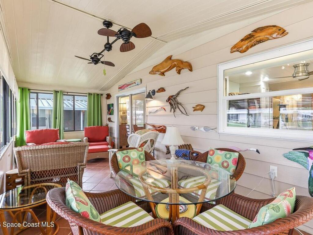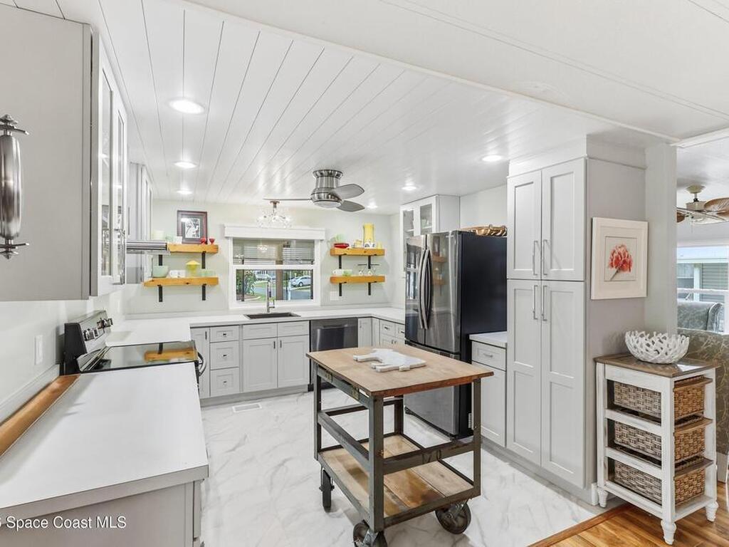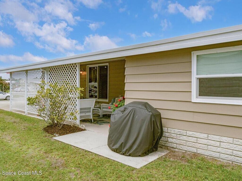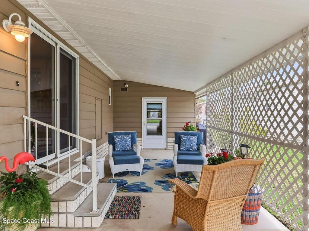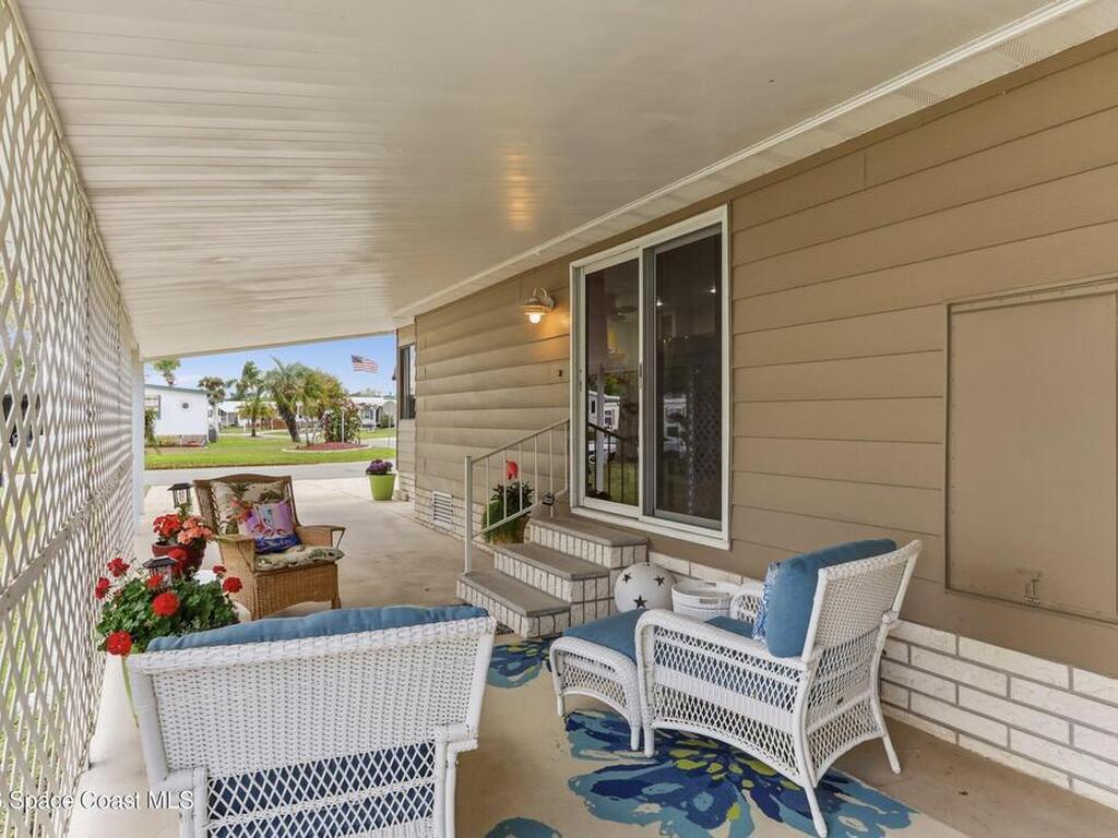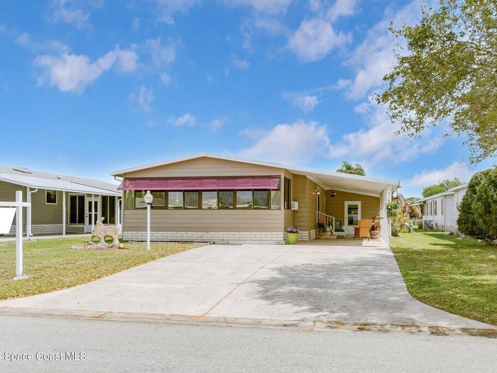 Come see this magnificently updated 2BR/2BA home in the heart of amenity-rich Barefoot Bay, near the golf course and just a short walk to one of three pools! The double driveway and carport lead to a private patio area. Step inside to a fully remodeled interior, featuring an 11x12 kitchen with all matching Samsung stainless steel appliances, deep sink, and ample counter space for all those culinary wizards. An open dining area flows into a spacious living room and enclosed sunroom, complete with AC and sliding windows--perfect for relaxing or entertaining. Both bathrooms are beautifully renovated and boast glass-tiled walk-in showers. Additional upgrades and improvements include an impact sliding door, double-pane windows, Hardie-board siding at the enclosed sunroom, plywood subfloors, insulated and drywalled interior walls, PEX water supply lines, vapor barrier, Roof 2018, AC 2019, and the list goes on...With the included storage room or workspace, this is truly a move-in ready home!