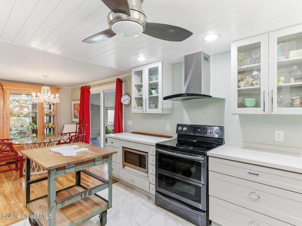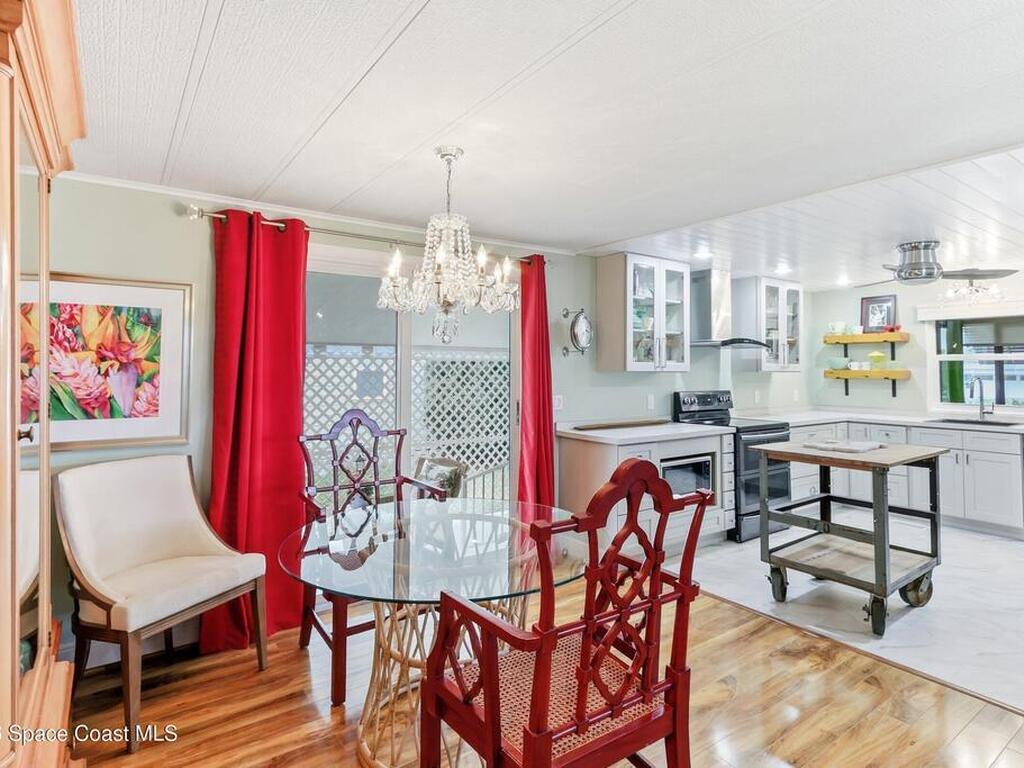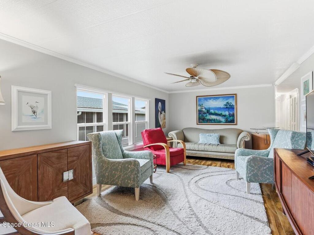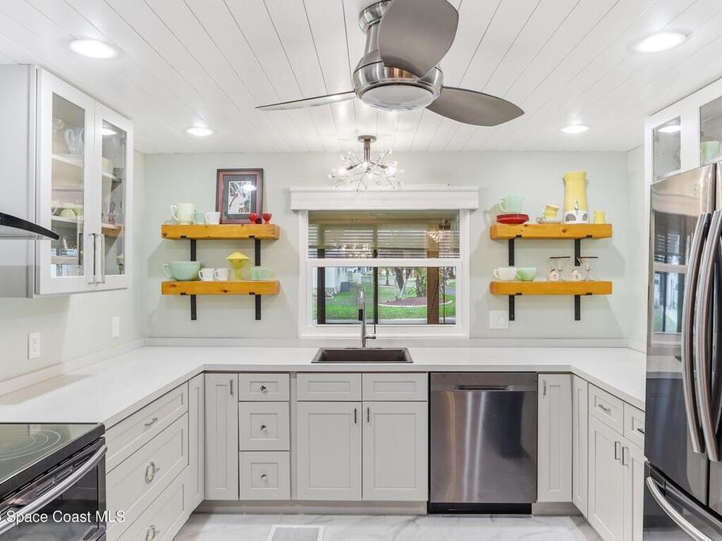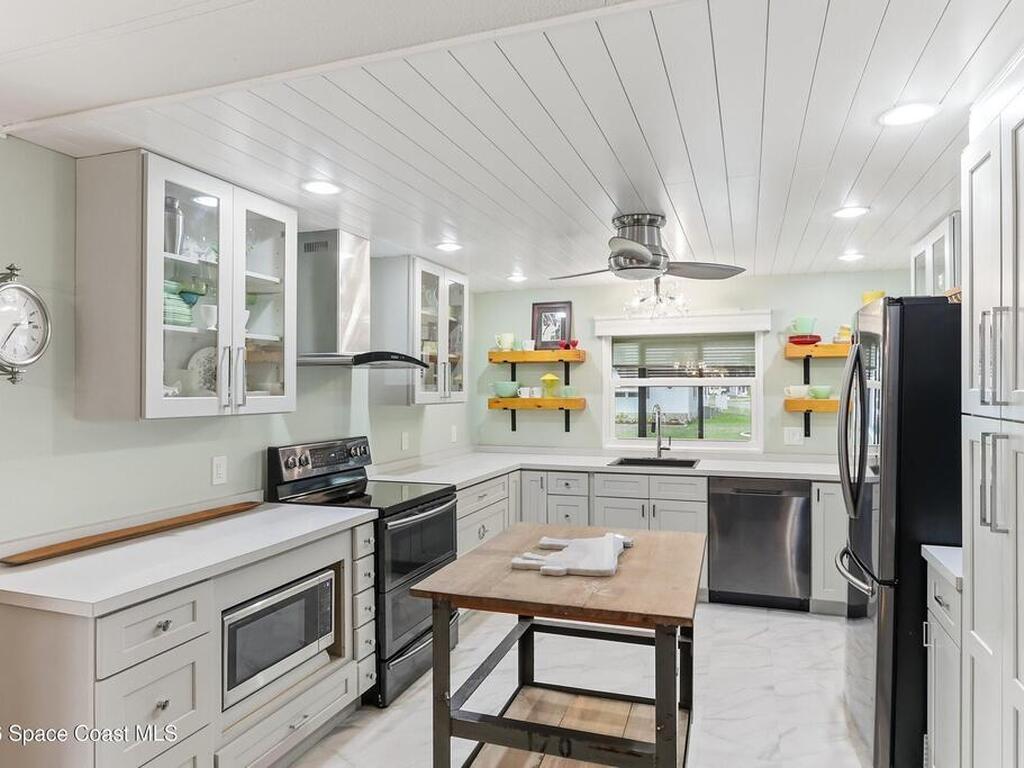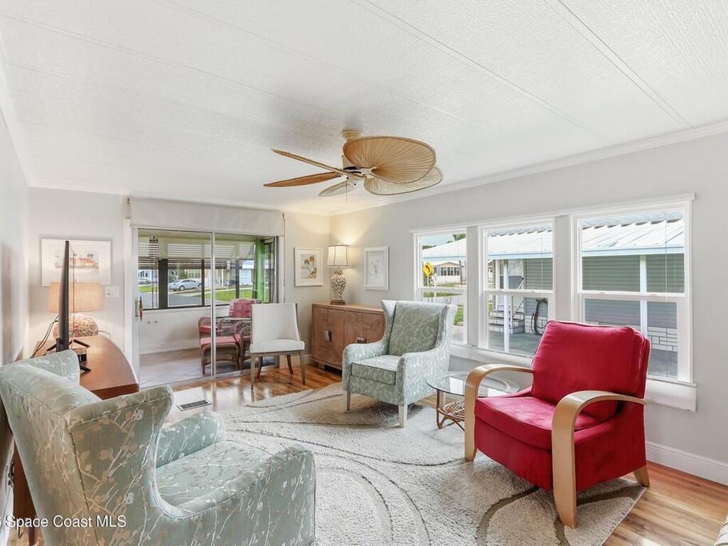 Come see this magnificently updated 2BR/2BA home in the heart of amenity-rich Barefoot Bay, near the golf course and just a short walk to one of three pools! The double driveway and carport lead to a private patio area. Step inside to a fully remodeled interior, featuring an 11x12 kitchen with all matching Samsung stainless steel appliances, deep sink, and ample counter space for all those culinary wizards. An open dining area flows into a spacious living room and enclosed sunroom, complete with AC and sliding windows--perfect for relaxing or entertaining. Both bathrooms are beautifully renovated and boast glass-tiled walk-in showers. Additional upgrades and improvements include an impact sliding door, double-pane windows, Hardie-board siding at the enclosed sunroom, plywood subfloors, insulated and drywalled interior walls, PEX water supply lines, vapor barrier, Roof 2018, AC 2019, and the list goes on...With the included storage room or workspace, this is truly a move-in ready home!