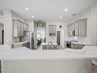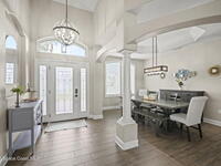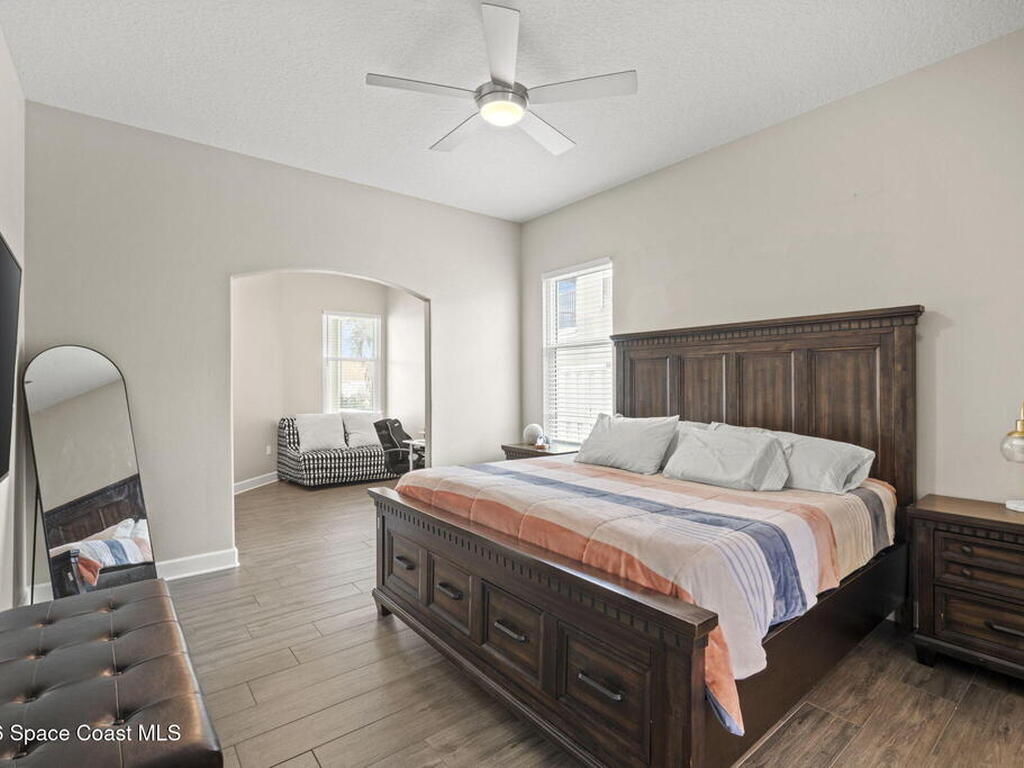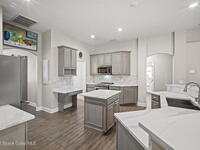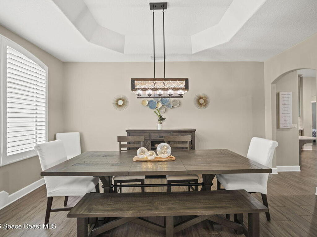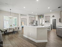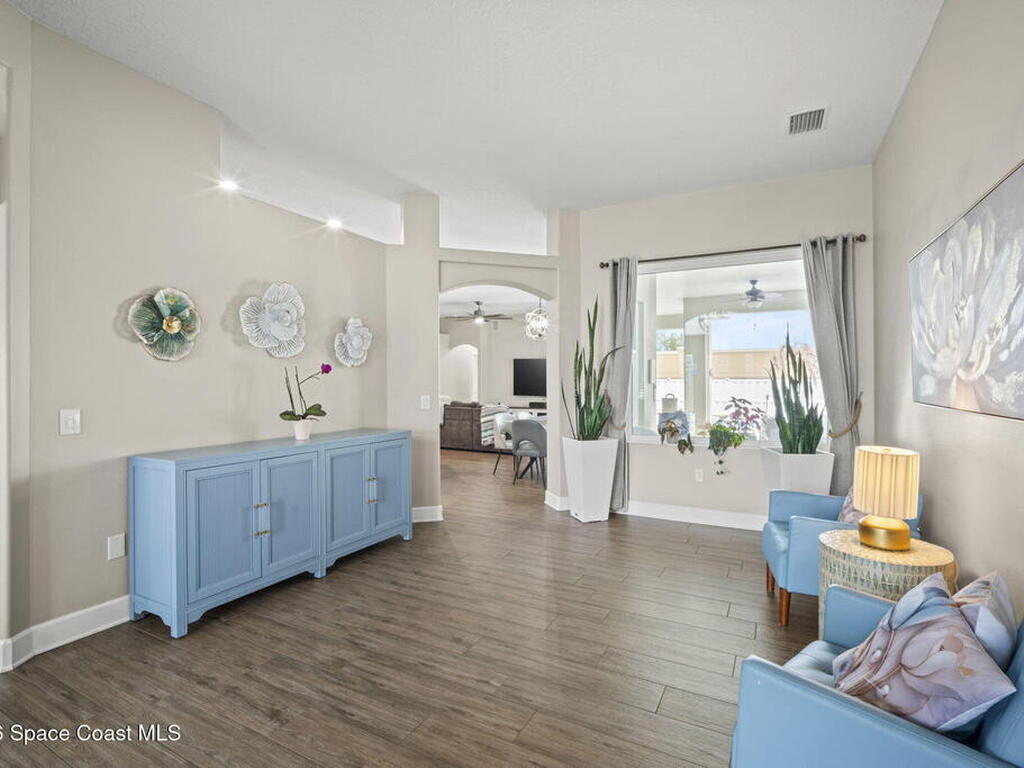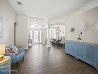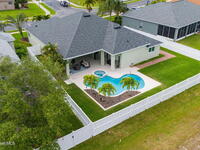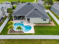 Welcome to this exceptional residence in the highly sought after gated Sonoma Subdivision in Viera, featuring a fully fenced backyard with green space and a resort style pool and spa, perfect for relaxing or entertaining. This meticulously maintained 4 bedroom, 3 bath pool home offers timeless design with modern upgrades throughout.Expansive living areas showcase large format porcelain plank tile flooring and abundant natural light from energy efficient windows. Plantation shutters and designer lighting, including statement chandeliers, add a sophisticated touch.The gourmet kitchen is beautifully appointed with white and gray marble inspired quartz countertops, premium KitchenAid stainless steel appliances, and 42 inch custom cabinetry. A kitchen sink water filtration system adds everyday convenience. The breakfast bar and eat in nook overlook the pool, creating a seamless indoor outdoor living experience.Modern enhancements include a smart thermostat with Alexa compatibility, an