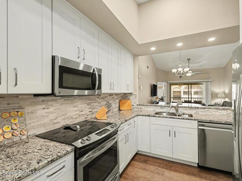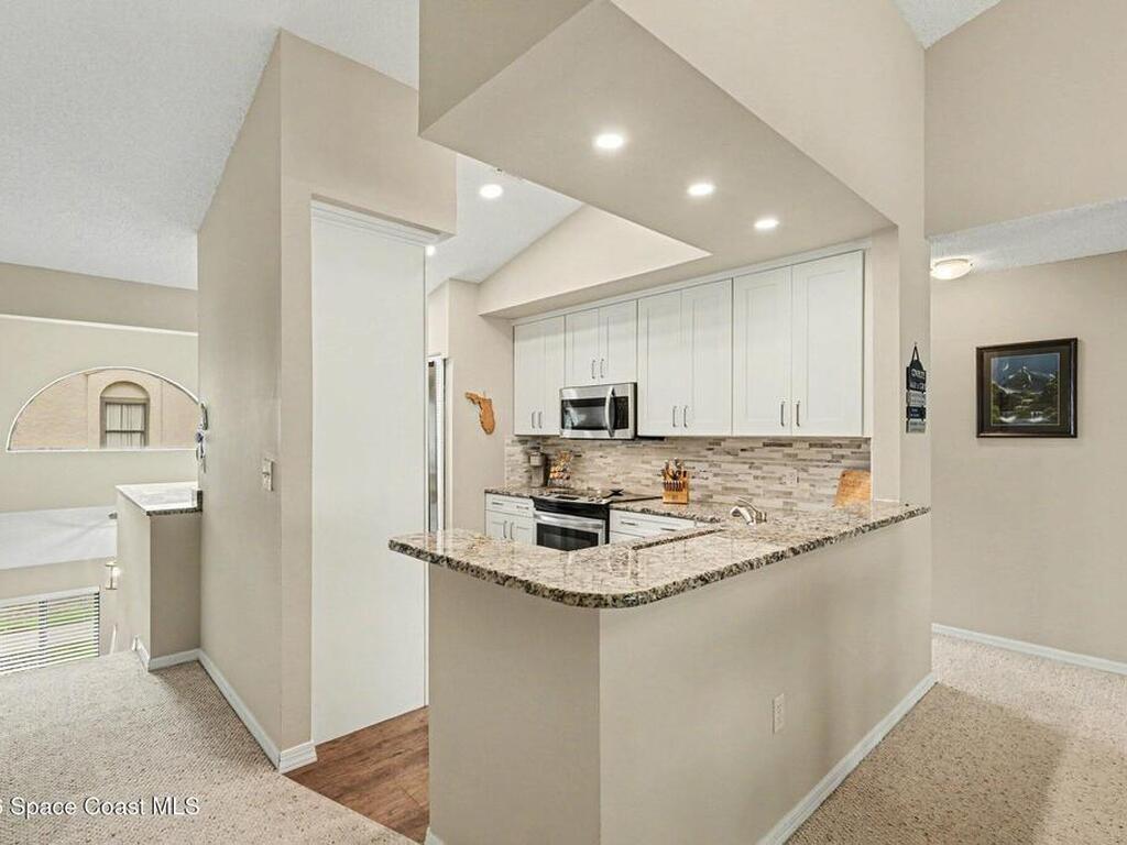 This is the condo you've waited for! LARGEST UNIT AVAILABLE in peaceful Club Haciendas with exceptional updates! Situated among the mature oaks of the La Cita Golf and Country Club, enjoy maintenance-free living for an affordable price. Gorgeous, renovated kitchen boasts granite countertops, newer stainless-steel appliances, contemporary, white soft-close cabinetry with pull-out drawers, recessed lighting and luxury vinyl flooring. Spacious open living room basks in natural light, enhanced by vaulted ceilings and warm, neutral interior paint. Ideal, split floorplan allows you to retreat to your primary bedroom, with sliding glass door views of the golf course. Primary bath showcases pebble-tile shower floor, clean white subway tile, double sinks and LVP floor. Secondary bedroom features new carpet and ensuite, full bathroom. Contemporary ceiling fans, light fixtures and window treatments throughout. In-unit washer/dryer & additional storage closet with plenty of room for essentials.