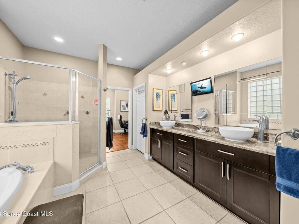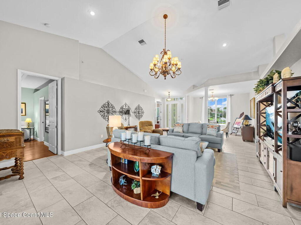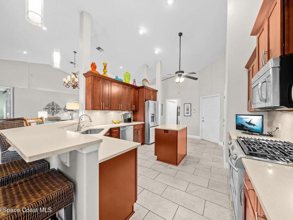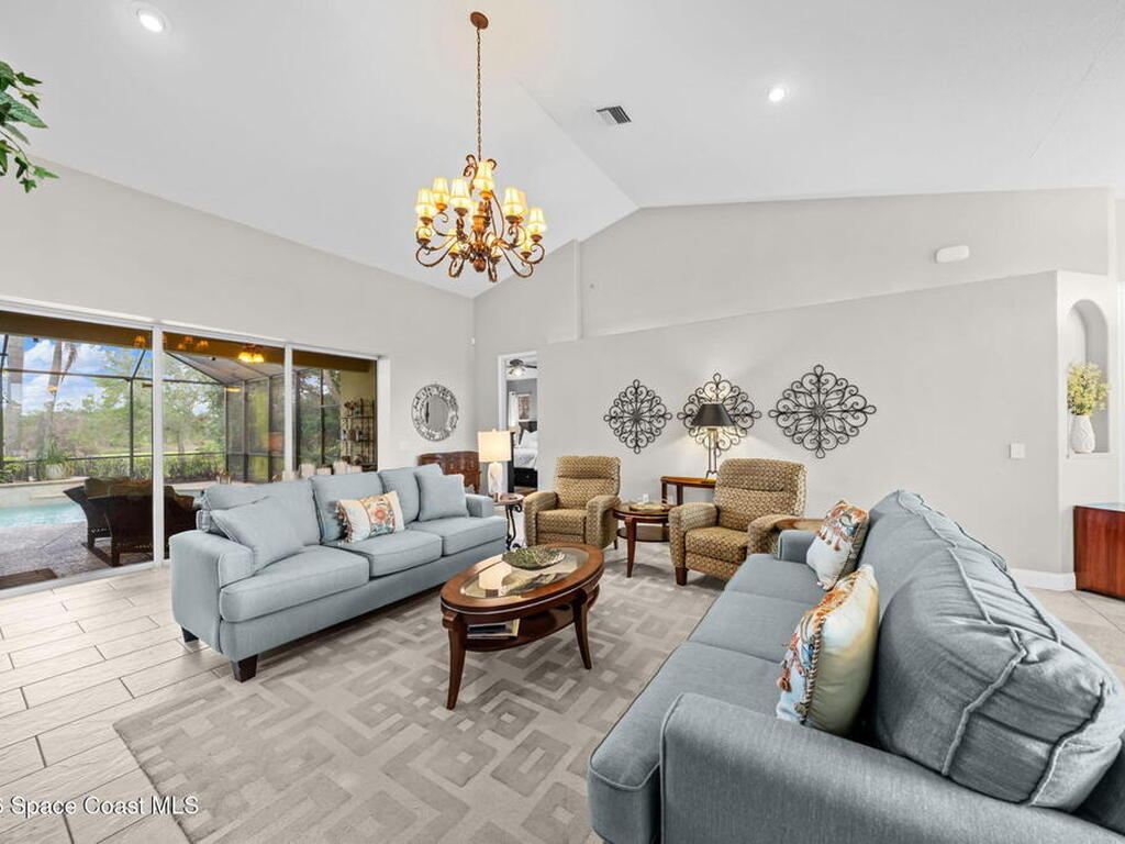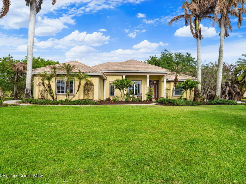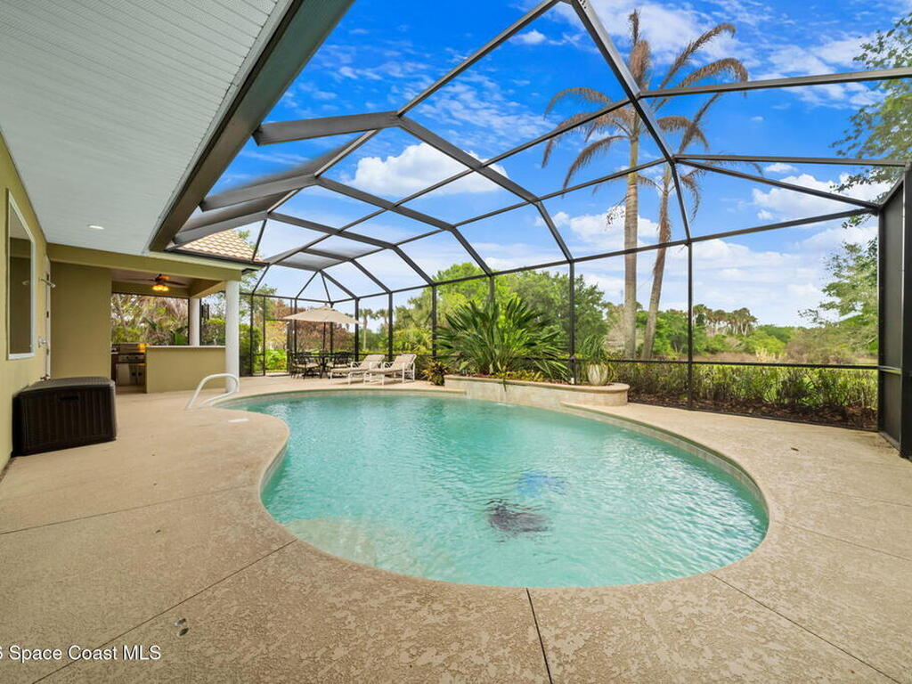 Beautifully custom-built home in Merritt Island featuring 4 spacious bedrooms, 2.5 bathrooms, and a 3-car garage. Situated on a full acre in the highly sought-after Chase Hammock Lakes community, this property offers privacy, scenic lake views, and lush tropical landscaping backing up to a natural preserve.The gourmet kitchen features stunning quartz countertops, a professional-grade gas range, stainless steel appliances, a farmhouse sink, and plenty of space for cooking, gathering, and entertaining.The outdoor living space is truly exceptional, with a large screened-in pool and patio, expansive lanai, and a fully equipped summer kitchen--perfect for entertaining or relaxing year-round.With an open floor plan, split bedrooms, high ceilings, designer finishes, and abundant storage throughout, this home offers both elegance and functionality. A must-see property that perfectly blends comfort, style, and Florida living at its finest.