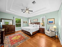 Breakfast Bar, Ceiling Fan(s), Eat-in Kitchen, Entrance Foyer, Guest Suite, His and Hers Closets, Jack and Jill Bath, Kitchen Island, Open Floorplan, Primary Bathroom -Tub with Separate Shower, Primary Downstairs, Vaulted Ceiling(s), Walk-In Closet(s)