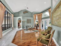 Don't miss this stunning custom-built home on an oversized lot, almost 1/2 acre, located on a cul-de-sac. This saltwater pool home, 3 bedroom 2 1/2 bath single family home has a great floor plan with the kitchen open to the family room & Breakfast nook...or step out to your amazing deck with skylights & screened in saltwater pool overlooking the pond & enjoy the waterfowl from almost every room in the house. The kitchen has granite counters, a separate island with prep sink & great counter space. The offset formal dining & great flex space/living room give this home a special nuance. You will enjoy this generously sized primary en suite offering multiple windows for natural light, two built out walk-in closets, double expansive vanity, cultured marble soaking tub, double headed cultured marble shower & separate potty room. Large guest rooms with substantial closet space plus lots of extra storage thru-out make this a must see. Extra-large garage offering workspace & work sink.