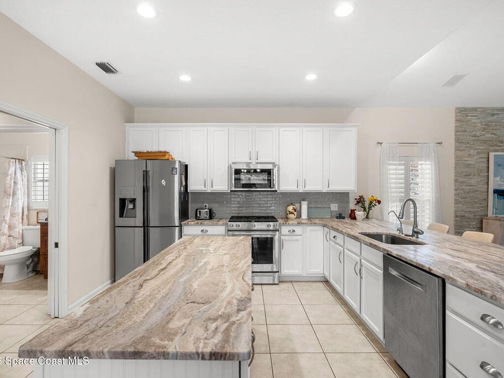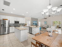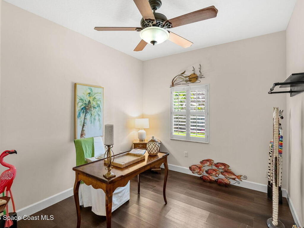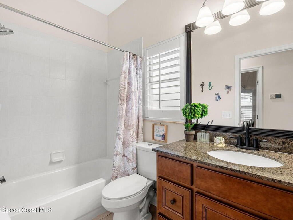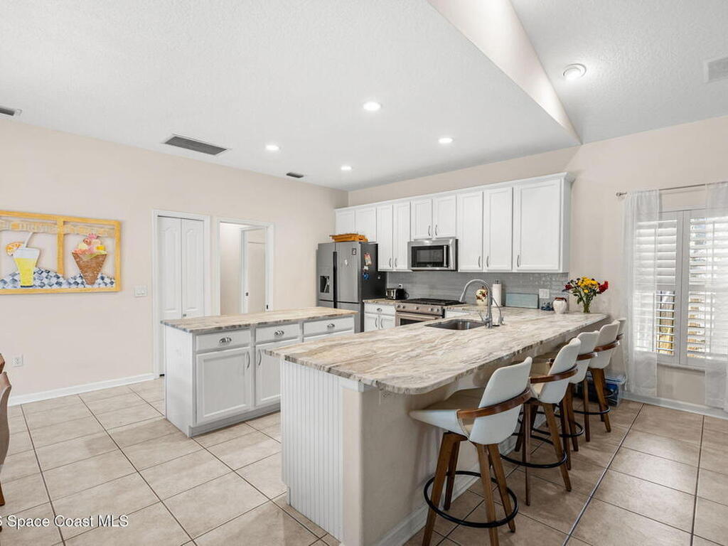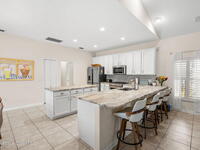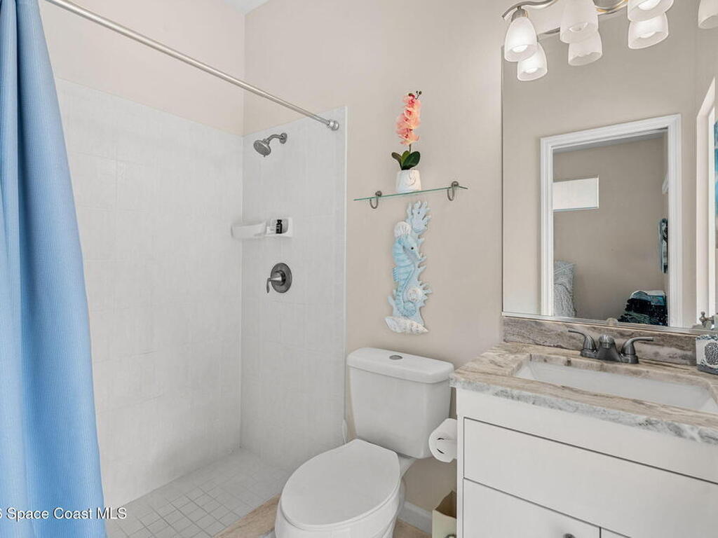 Private coastal oasis--this stunning courtyard pool home offers the ideal blend of comfort, style, and versatility. The main residence features 3 bedrooms and 2 baths with a bright, open floor plan, soaring vaulted ceilings, and seamless indoor-outdoor living. A separate guest suite with private entrance-- with its own bedroom/office and full bath--makes this home perfect for visitors, multi-generational living, or a private workspace. The spacious primary suite boasts a beautifully updated en-suite bath, creating a relaxing retreat. At the heart of the home, the renovated kitchen shines with a gas stove, custom cabinetry, quartz countertops, and a large island that flows into the dining area. Step outside to your enclosed saltwater pool paradise. The expansive covered lanai extends your living space year-round, perfect for entertaining or unwinding in the coastal breeze. Recent upgrades provide peace of mind, including a 2017 roof, 2018 HVAC, Generator, shutters, pool resurfacing.