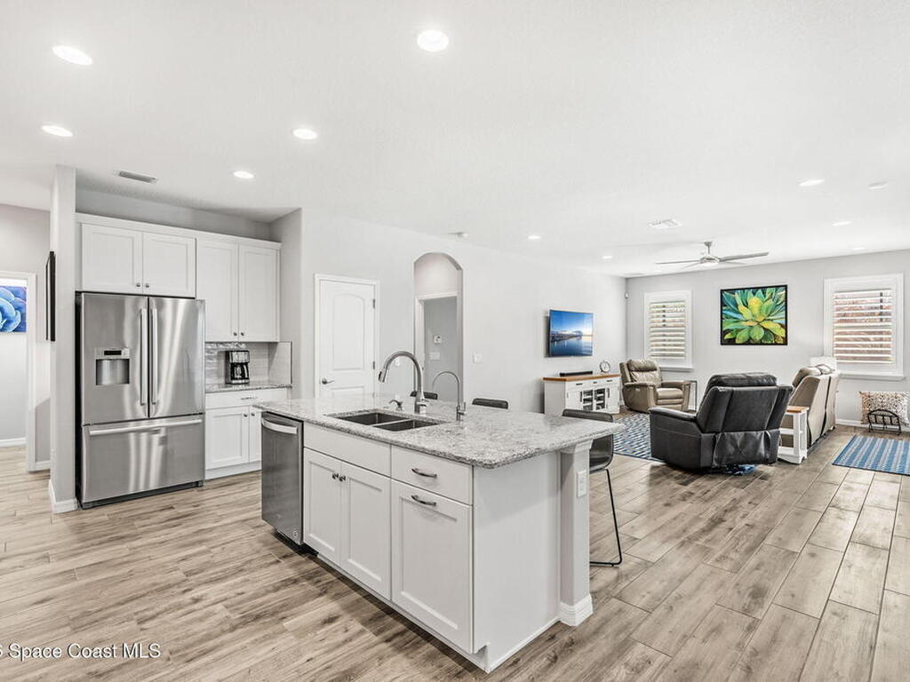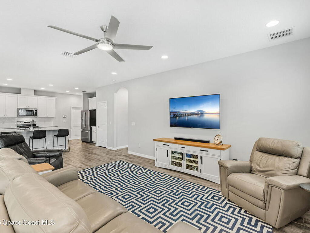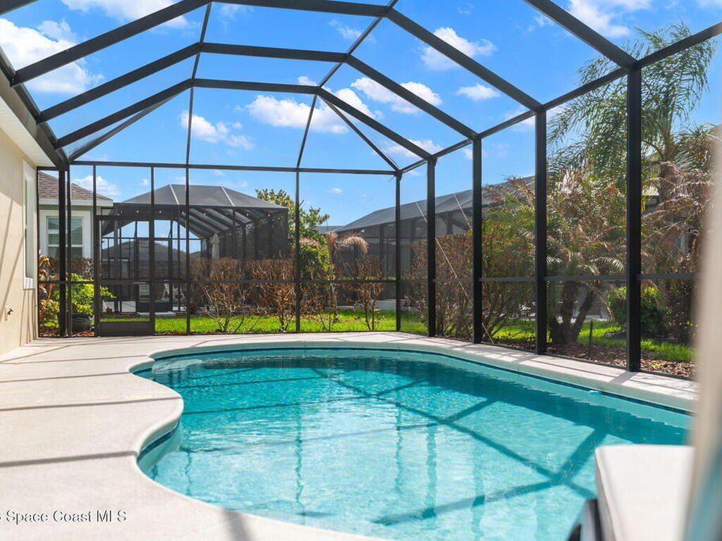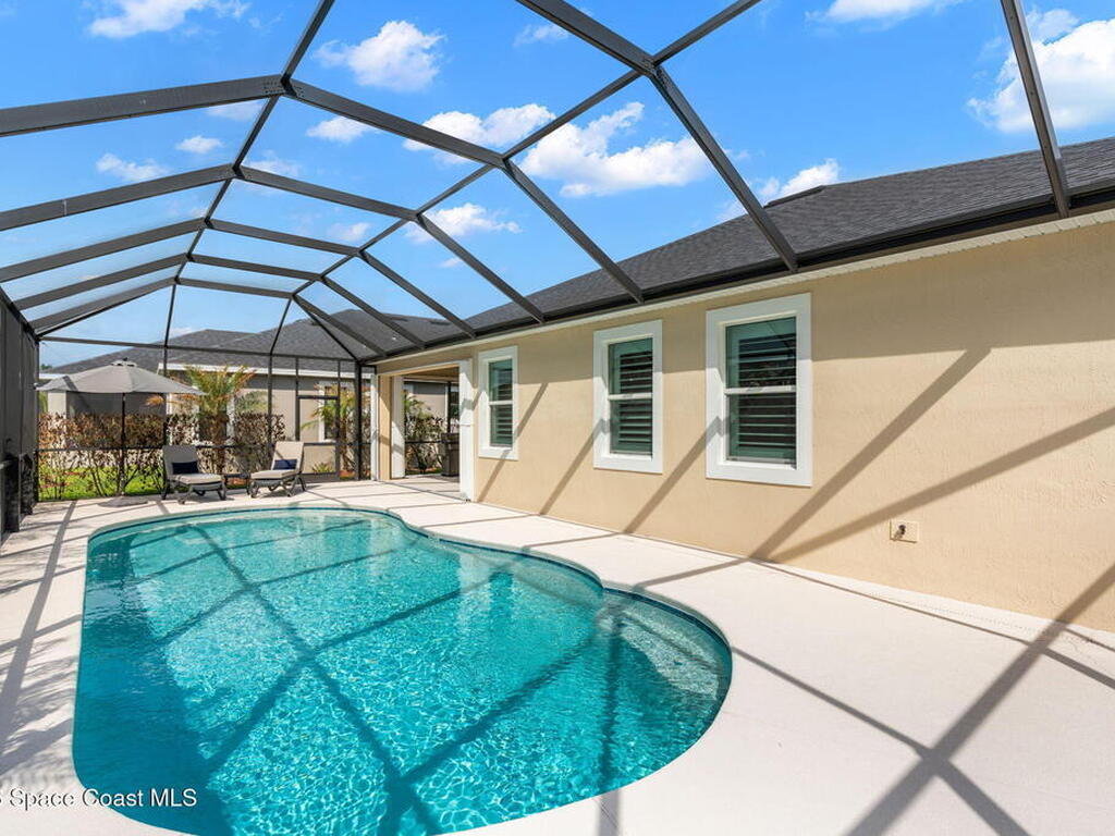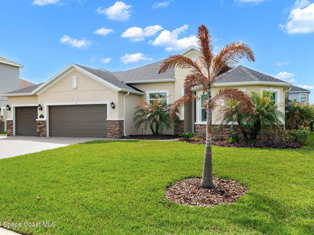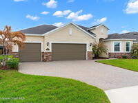 Welcome to Trasona in West Viera, where everyday living feels a little more like a getaway. This popular Siesta floor plan offers 4 bedrooms, 2 bathrooms, and a rare 3-car garage across 2, 154 square feet of thoughtfully designed space that just flows.From the moment you walk in, it feels easy. Natural light pours through plantation shutters, the layout is open without feeling overwhelming, and every space has a purpose. The kitchen is truly the heart of the home, with quartz countertops, plenty of cabinet space, and extra storage in the laundry room. Whether you're hosting friends, helping with homework at the counter, or just enjoying a quiet night in, this space works for real life. The primary suite offers a calm, private retreat, complete with custom closet upgrades that make staying organized simple. Throughout the home, you'll find practical upgrades like impact windows and accordion shutters for patio and a tankless gas water heater that add both comfort and peace of mind.