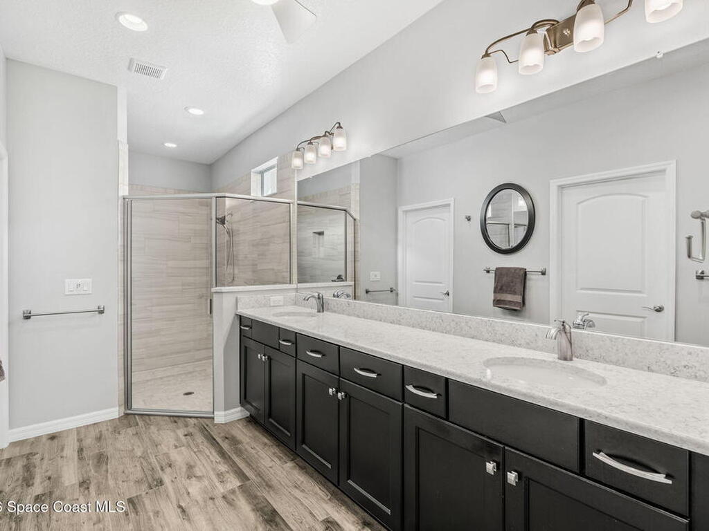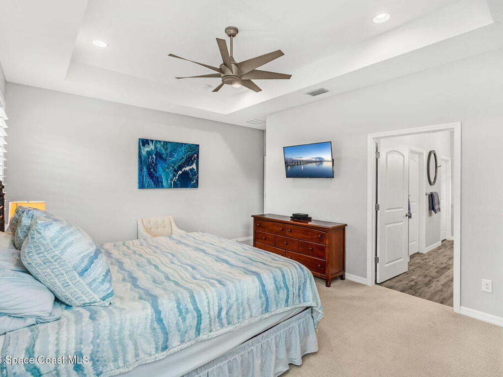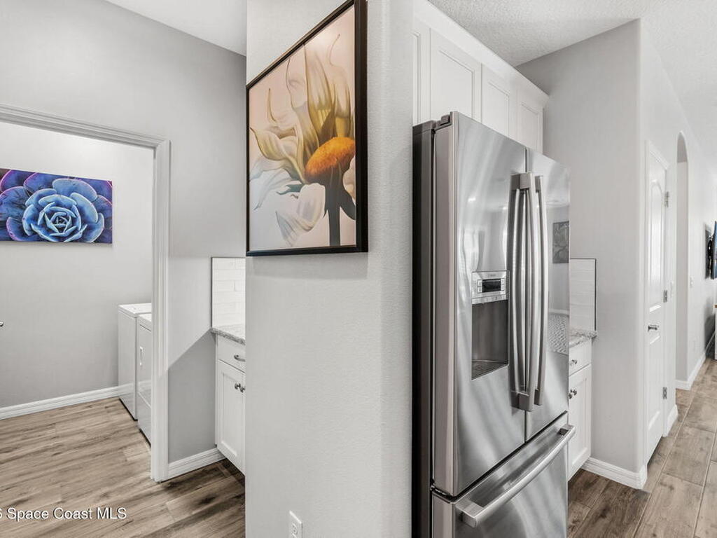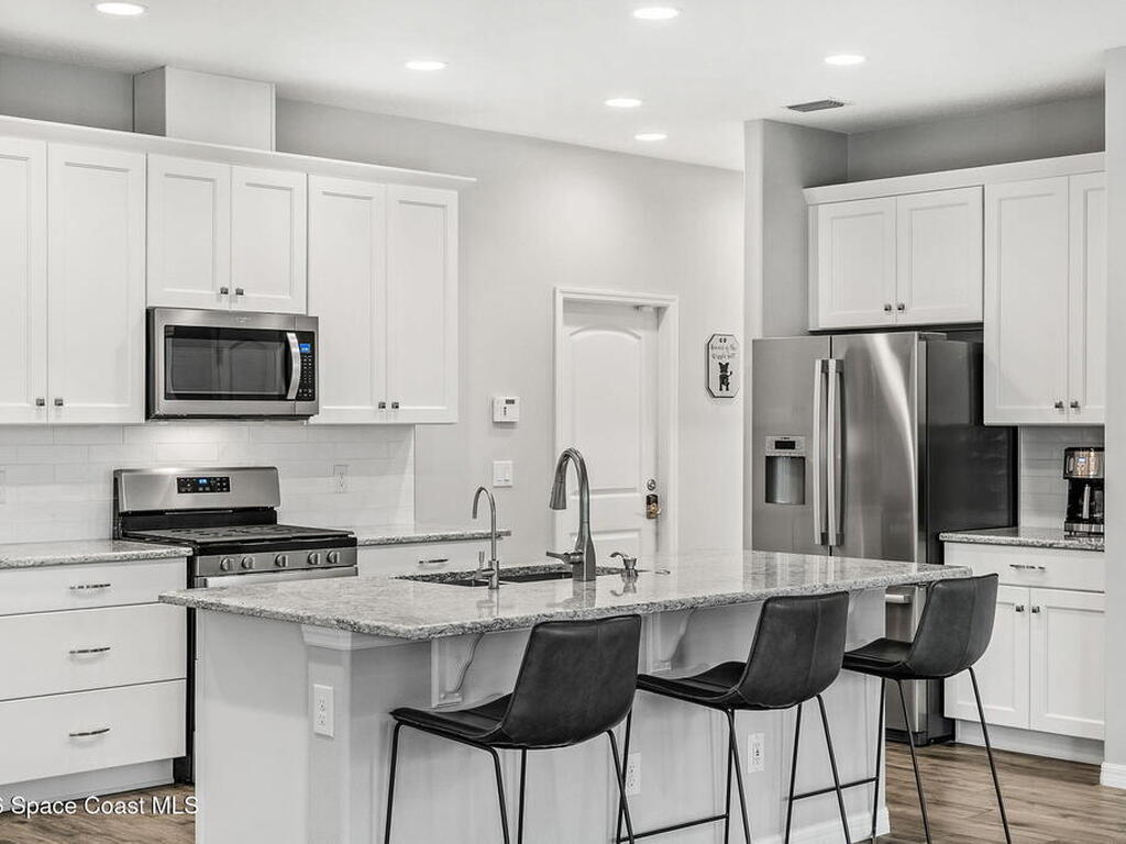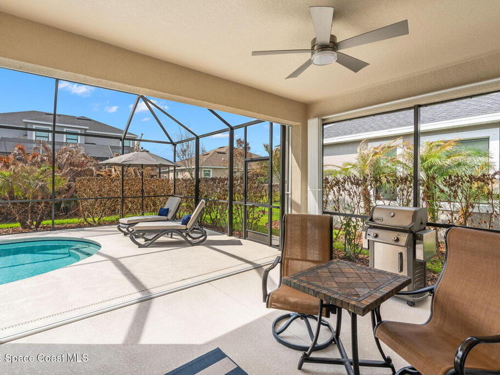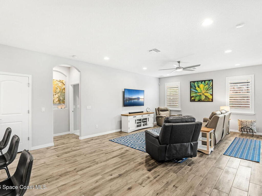 Welcome to Trasona in West Viera, where everyday living feels a little more like a getaway. This popular Siesta floor plan offers 4 bedrooms, 2 bathrooms, and a rare 3-car garage across 2, 154 square feet of thoughtfully designed space that just flows.From the moment you walk in, it feels easy. Natural light pours through plantation shutters, the layout is open without feeling overwhelming, and every space has a purpose. The kitchen is truly the heart of the home, with quartz countertops, plenty of cabinet space, and extra storage in the laundry room. Whether you're hosting friends, helping with homework at the counter, or just enjoying a quiet night in, this space works for real life. The primary suite offers a calm, private retreat, complete with custom closet upgrades that make staying organized simple. Throughout the home, you'll find practical upgrades like impact windows and accordion shutters for patio and a tankless gas water heater that add both comfort and peace of mind.