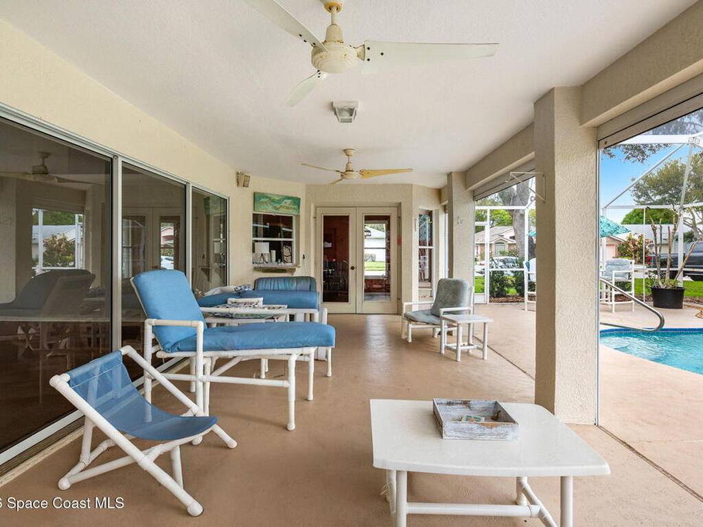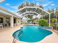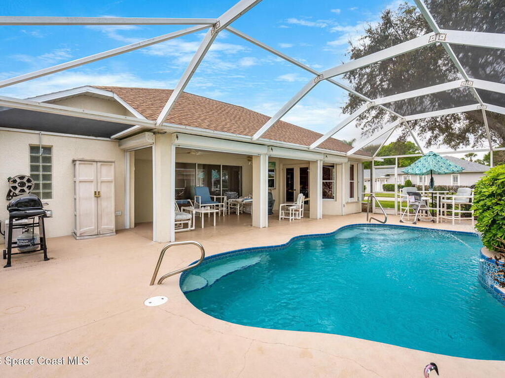 Tucked within the exclusive gated community of Sheridan Woods--home to just 92 residences in one of West Melbourne's most desirable locations-this custom-built, one-owner pool home offers a rare blend of quality, privacy, and Florida lifestyle living. Situated on a corner lot with tranquil pond views and lush, manicured landscaping, the home immediately sets the tone with timeless curb appeal and a side-entry garage. Inside, fresh interior paint creates a light, move-in-ready feel, while the thoughtfully designed layout lives effortlessly for both everyday comfort and entertaining.The heart of the home opens seamlessly to the outdoors, where disappearing sliders in the great room extend your living space onto a spacious covered lanai. Electric roll-down hurricane screens allow you to enjoy the porch year-round, creating the perfect indoor-outdoor retreat. The resurfaced pool and expansive deck provide an ideal setting for gatherings, quiet mornings, or evenings under the Florida sky.
