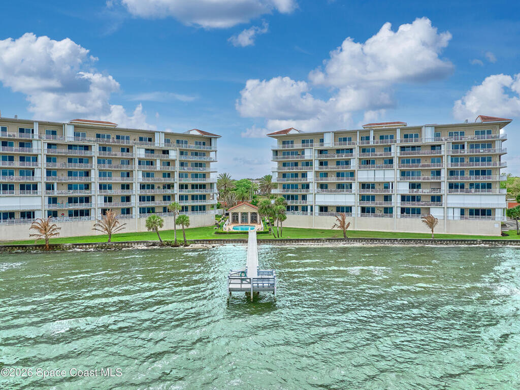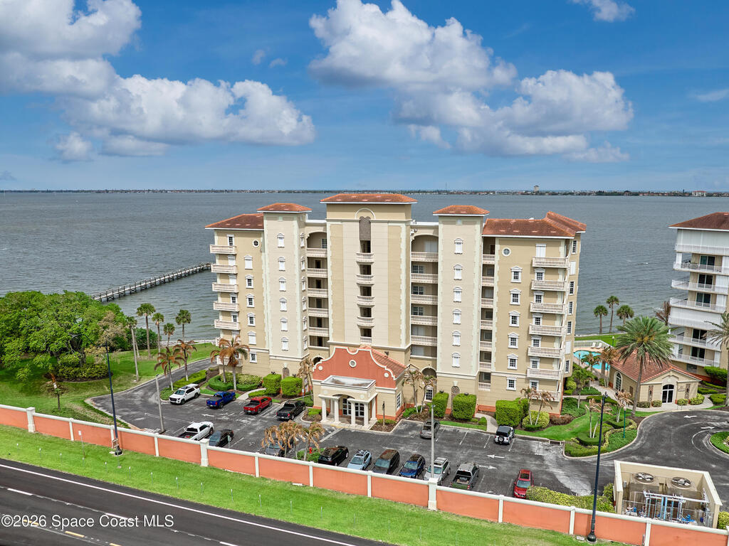Imagine exquisite river views while sipping morning coffee watching postcard sunrises from your large wrap-around private balcony. Spacious great room with incredible views allow for family and guests to enjoy Florida living! Each of the 3 bedrooms have their own bathrooms. Suites for everyone! Primary bedroom is designed for royalty with wrap around balcony access. The kitchen features a large island, granite countertops, and tons of storage. Community includes heated riverfront pool, clubhouse, dock/pier, kayak storage, and two elevators. Includes one garage parking space with storage plus additional guest parking. I challenge you to find a better condo designed for family, guests, privacy, and living space for everyone. Just minutes to Atlantic beaches, and downtown Melbourne. Short drive to Eau Gallie Art District. Come view this masterpiece and see if you can spot the dolphins and manatees.